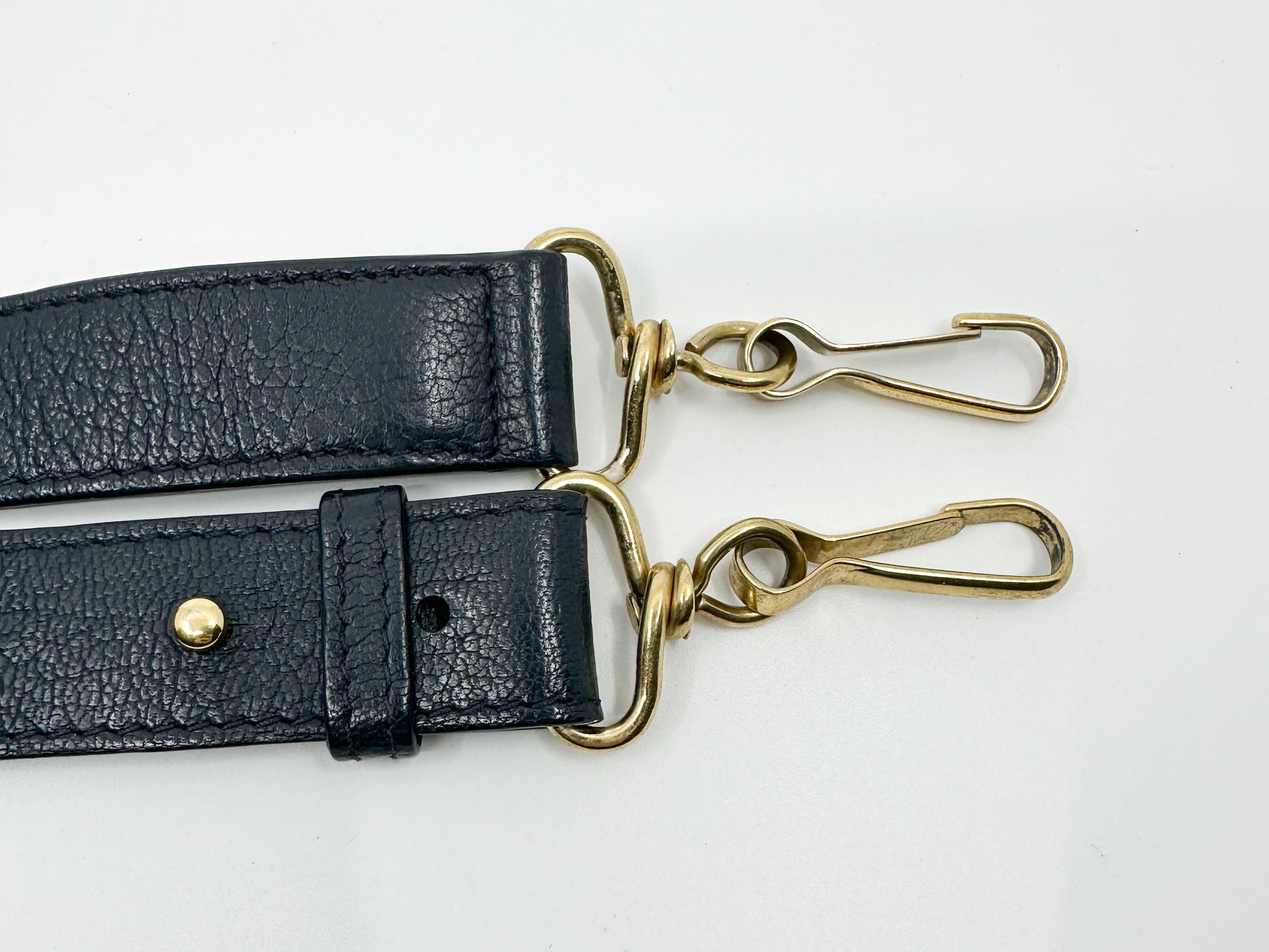 Condition: Excellent. Light marks on the gold hardware. Leather strings at small pocket is out of shape (not straight due to storage)
