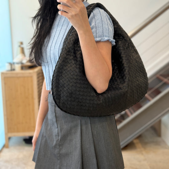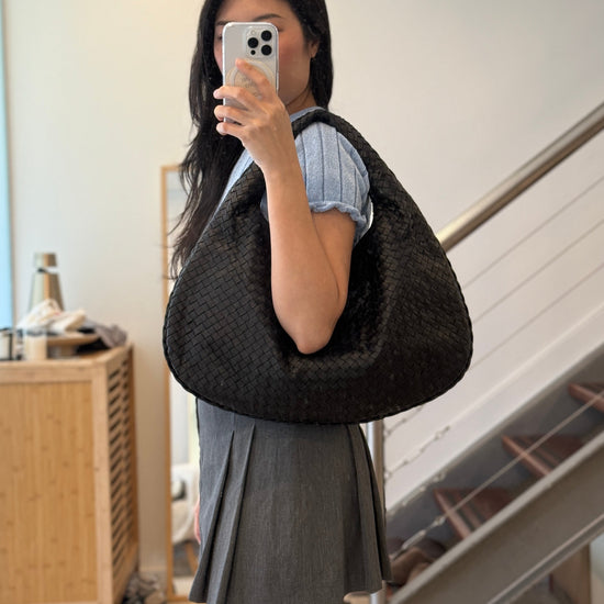 Effortlessly refined and unmistakably Bottega Veneta, this Medium Hobo is crafted from the house’s signature Intrecciato woven leather in timeless black. Featuring a soft, slouchy silhouette with a comfortable shoulder fit, it blends understated luxury with everyday practicality.