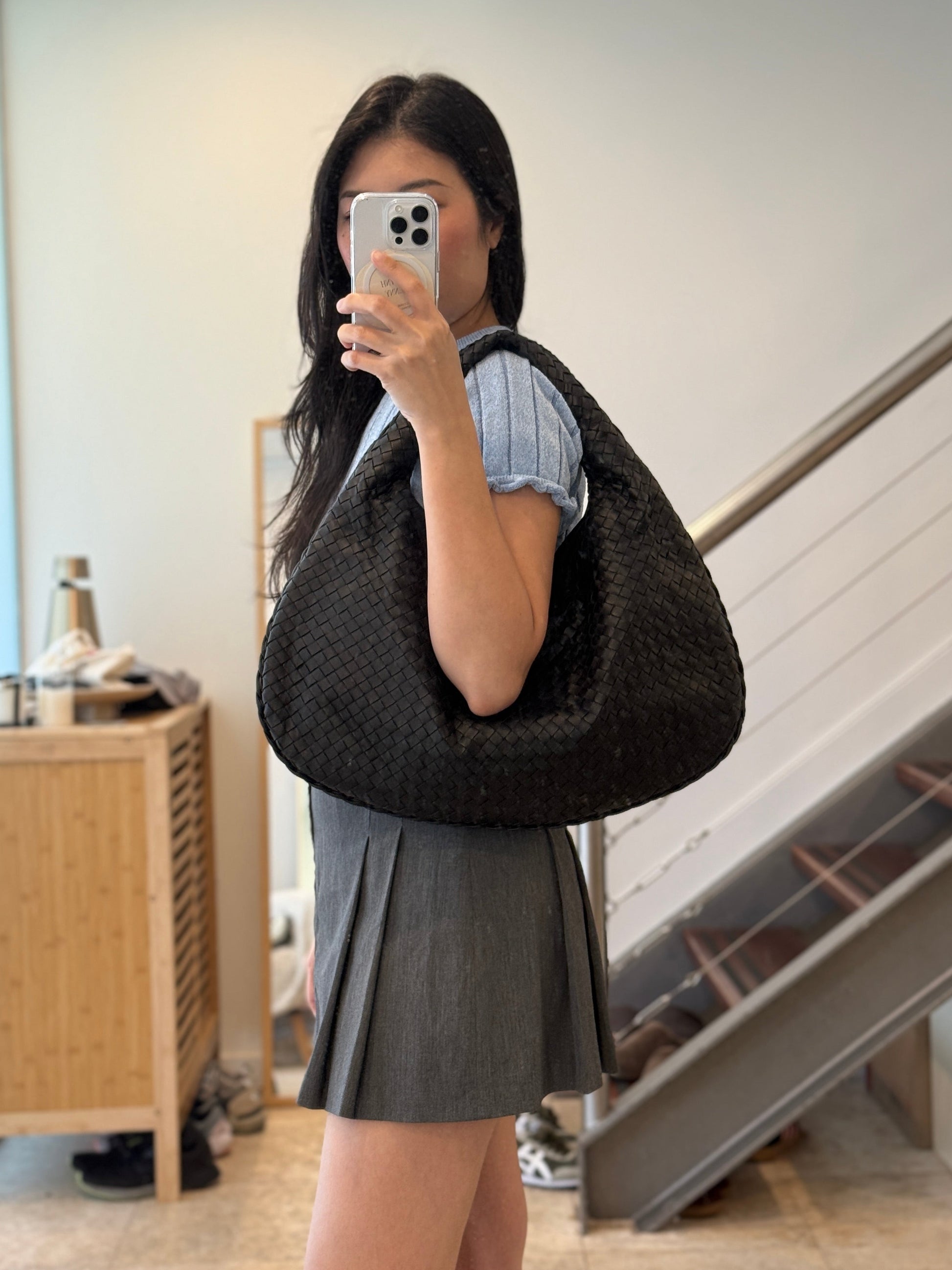 Spacious enough for daily essentials while maintaining an elegant minimalist profile, this piece embodies Bottega Veneta’s quiet luxury aesthetic. A versatile wardrobe staple that transitions seamlessly from day to evening.