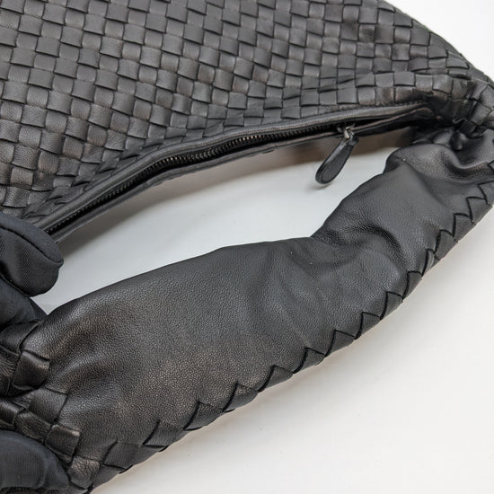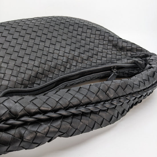 Brand New Bottega Veneta Intrecciato Medium Hobo in Black Leather