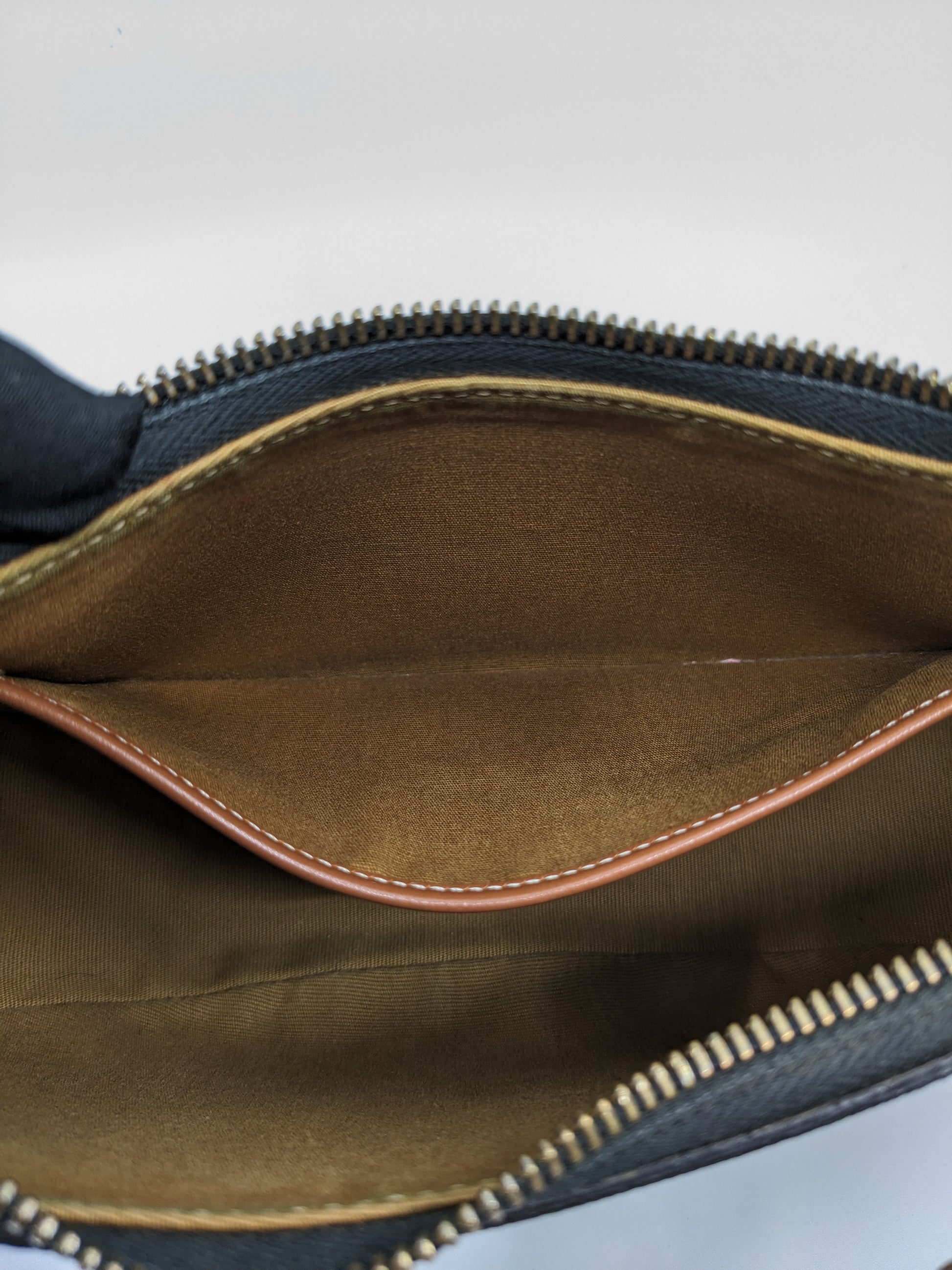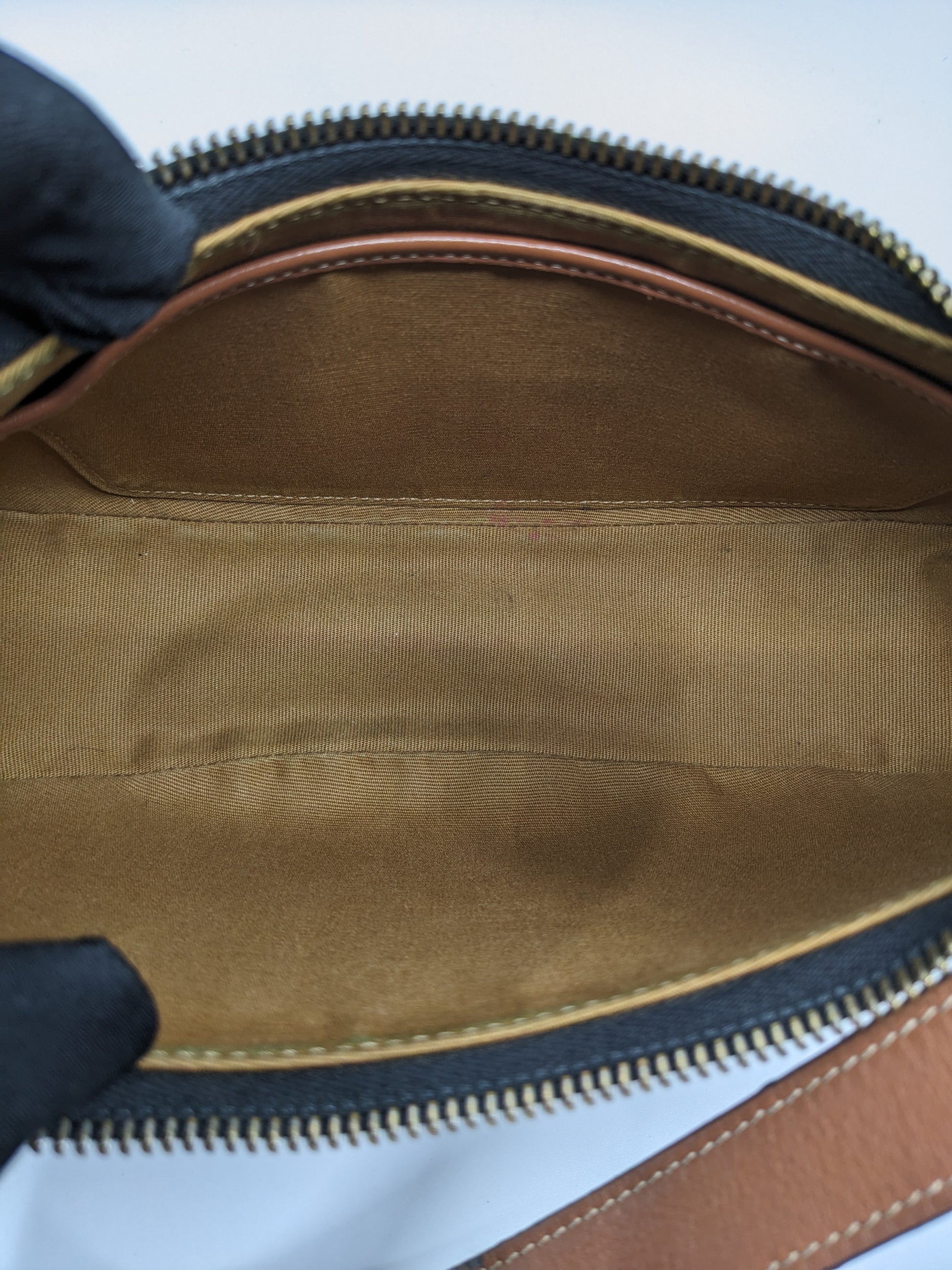 - Condition: Very Good. The Vachetta strap has transformed to a golden patina color. Zipper gold hardware has faded a bit.