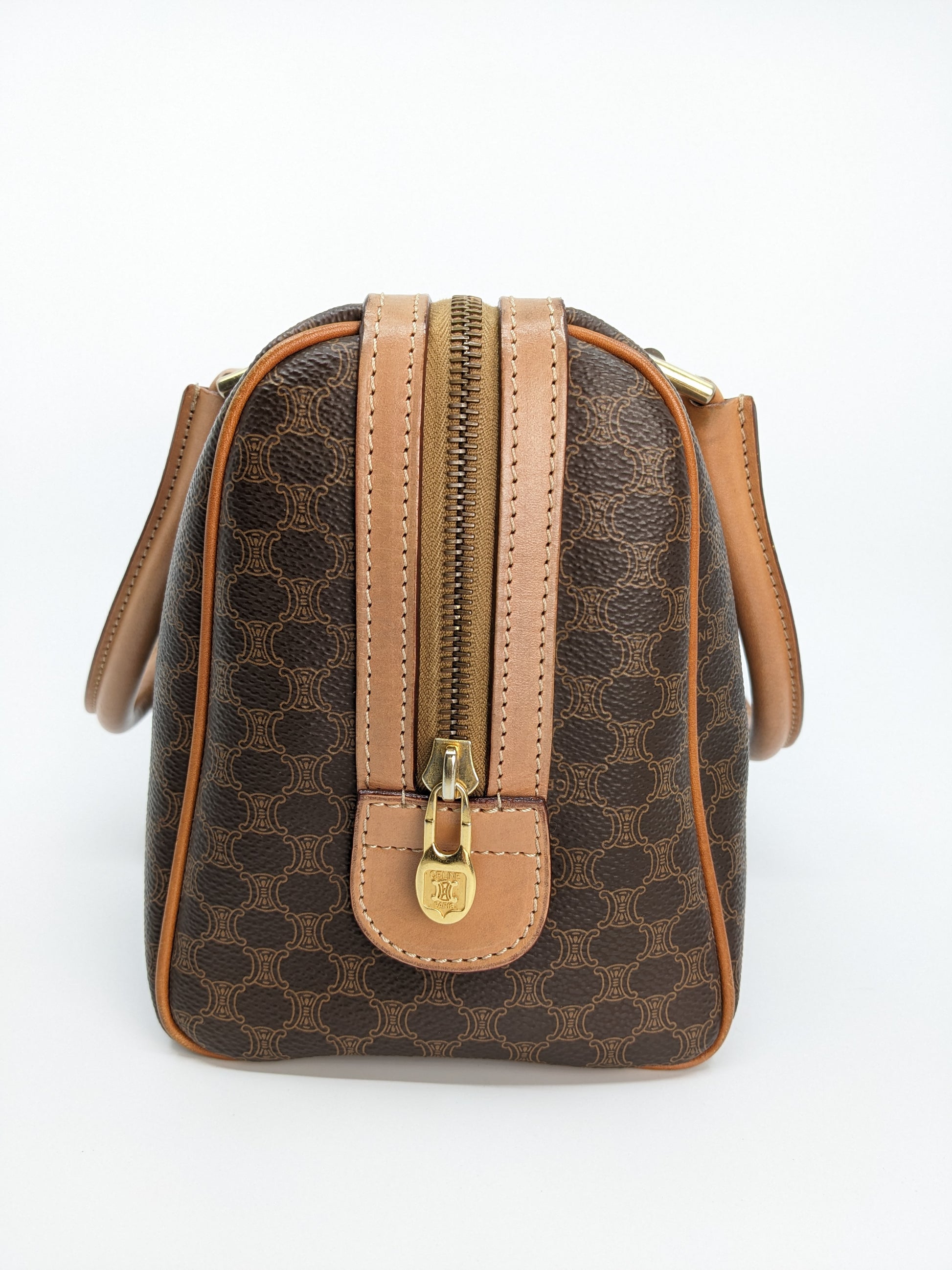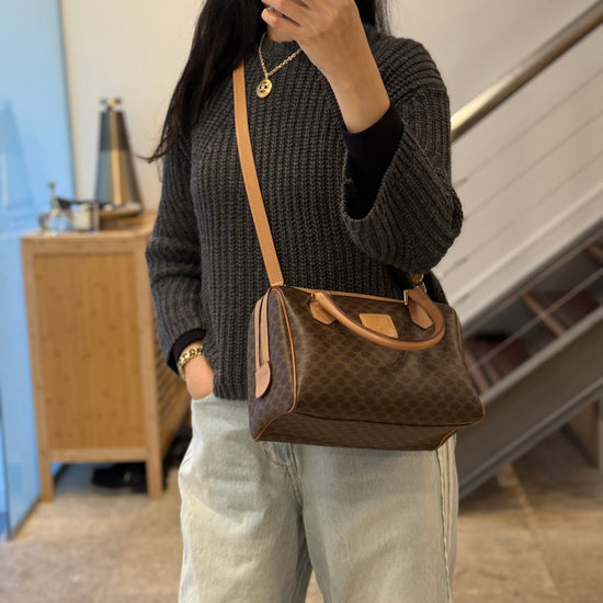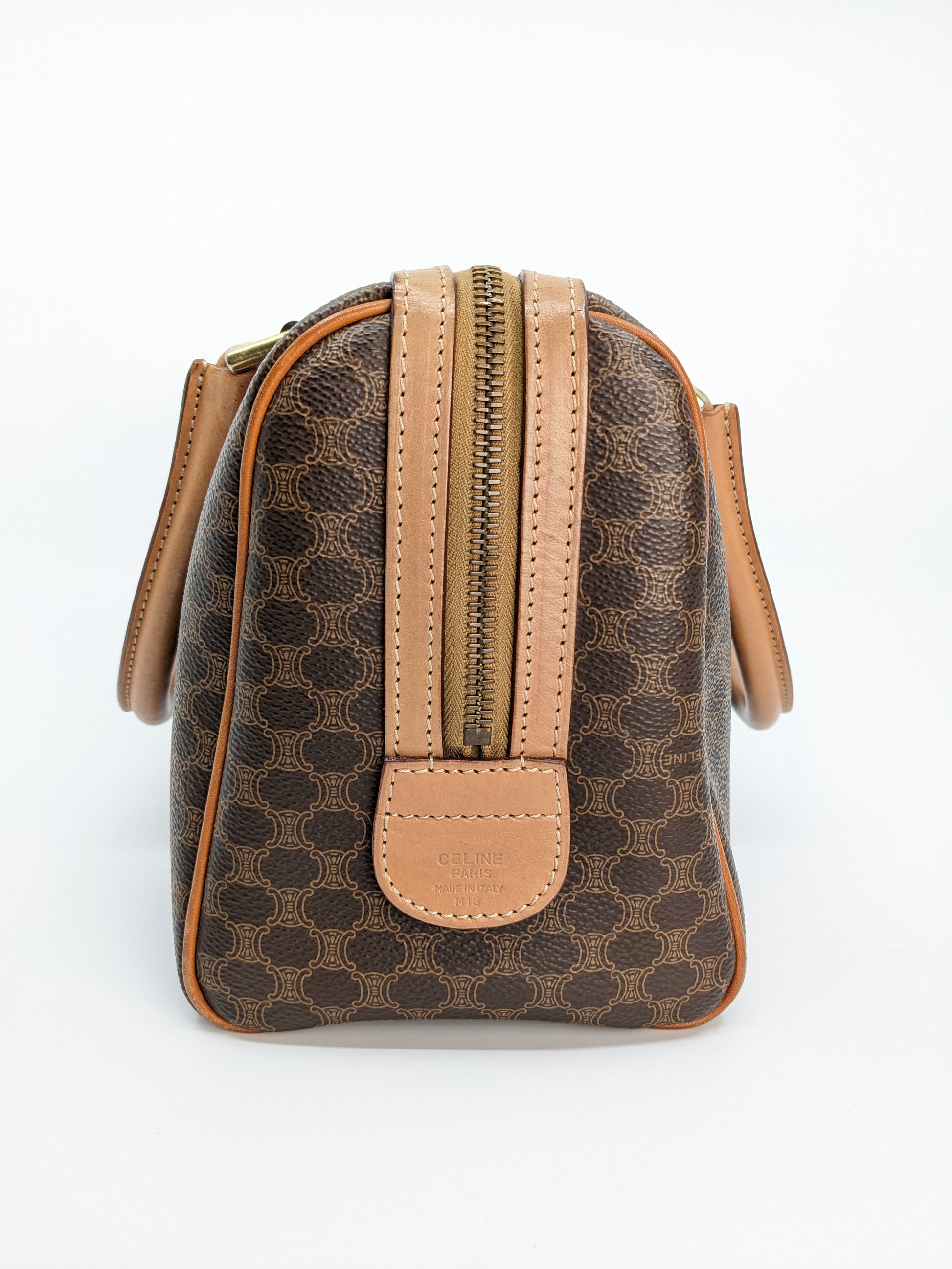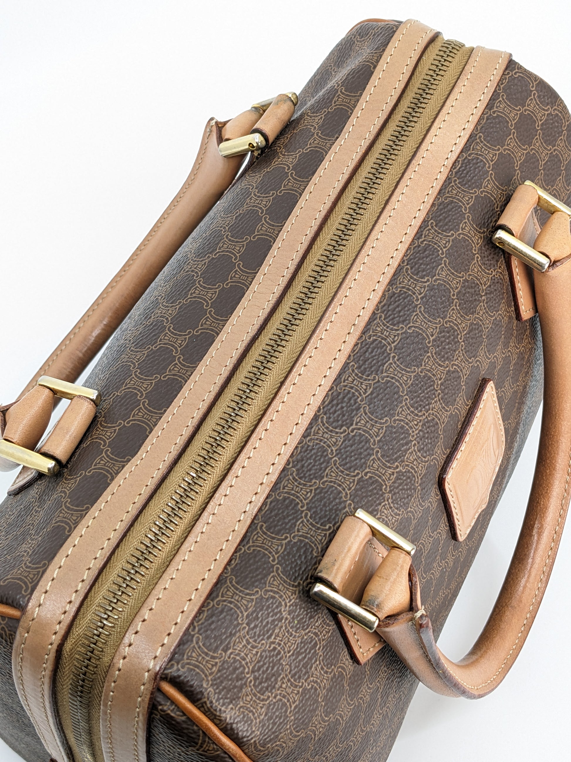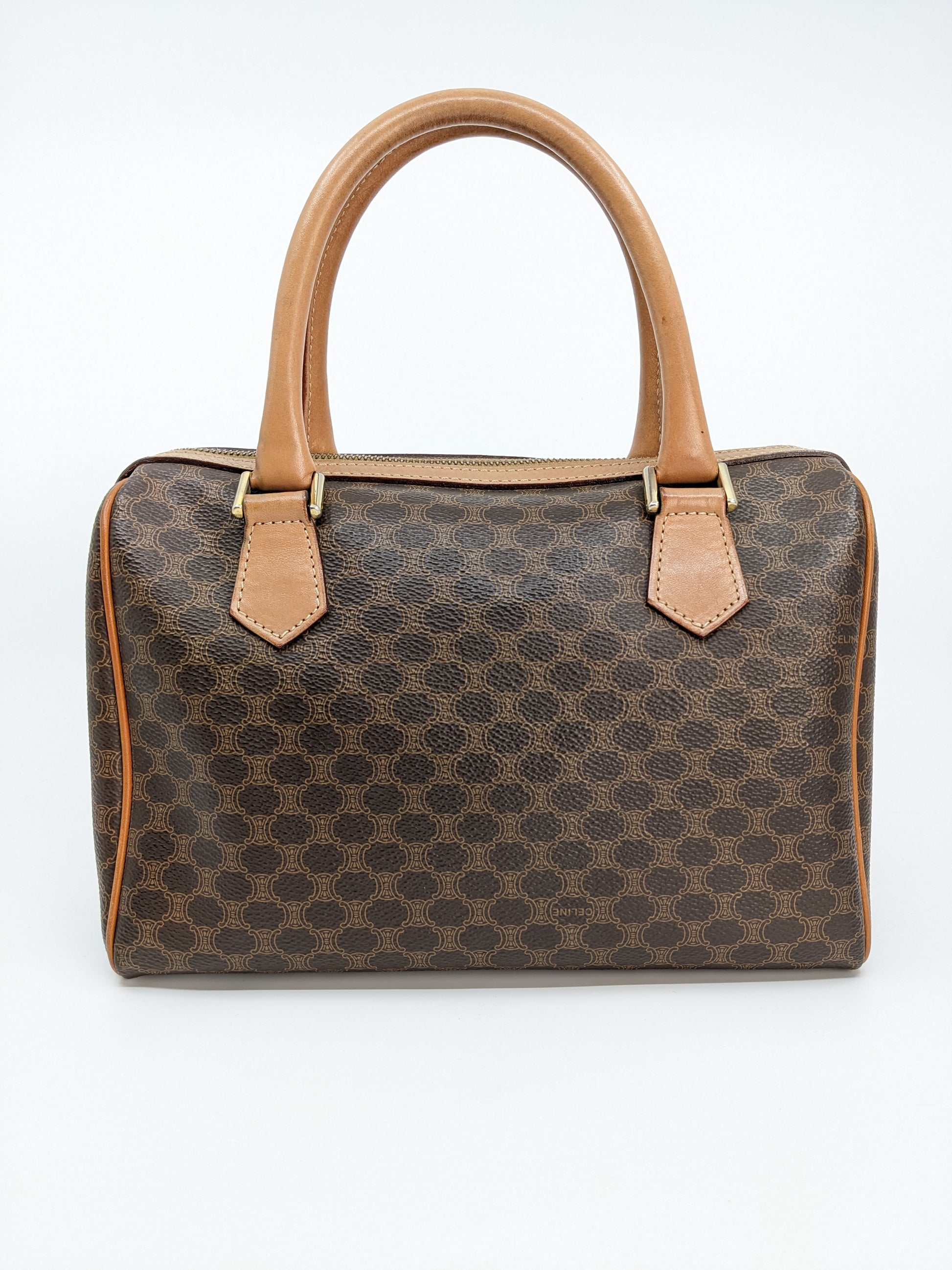 The vintage Celine Boston Bag 25cm is a compact yet timeless piece, often crafted in the brand’s iconic Macadam canvas with leather trim and gold-tone hardware. Its structured silhouette features a zip-around closure and a roomy interior, perfect for daily essentials.