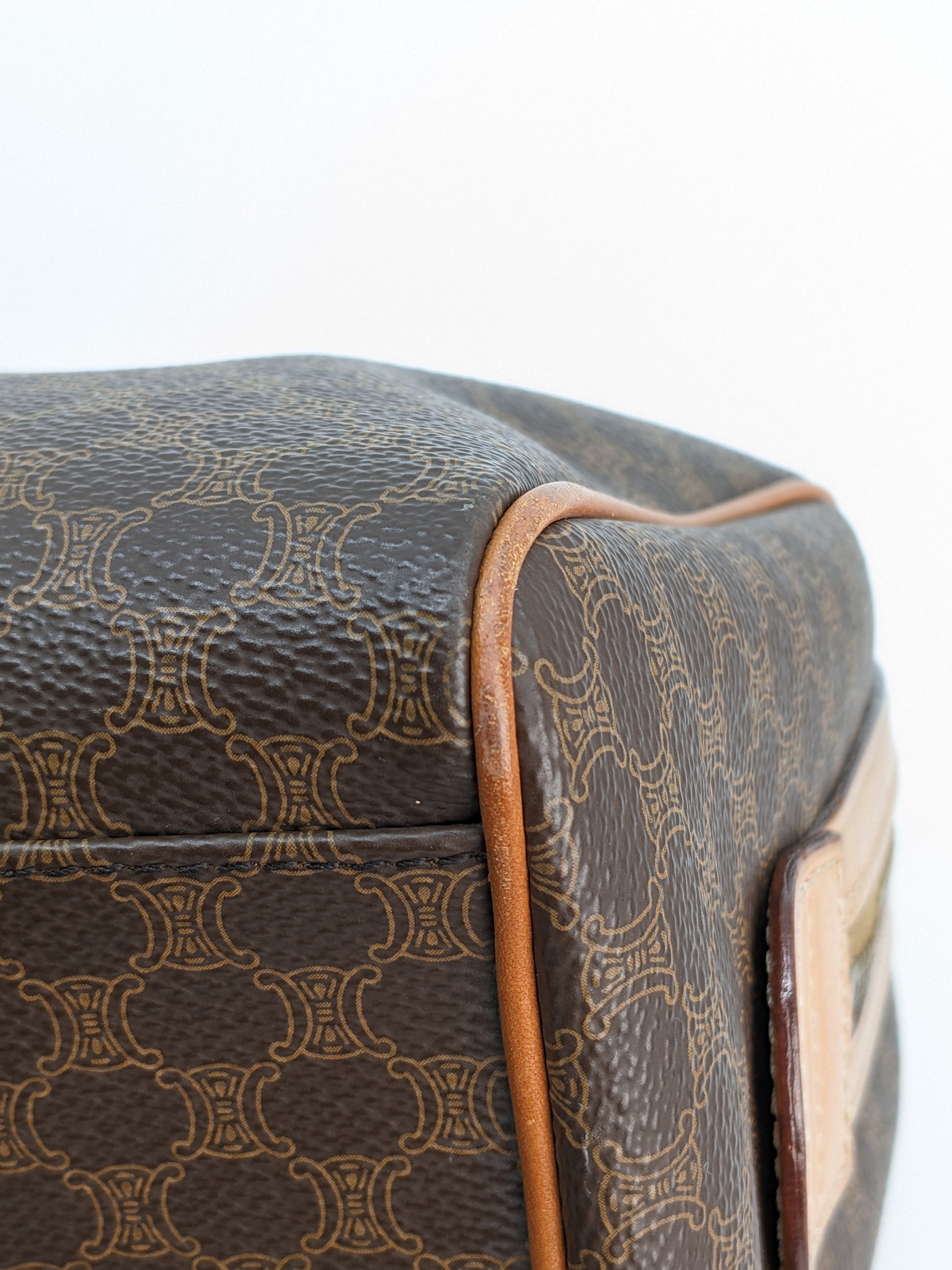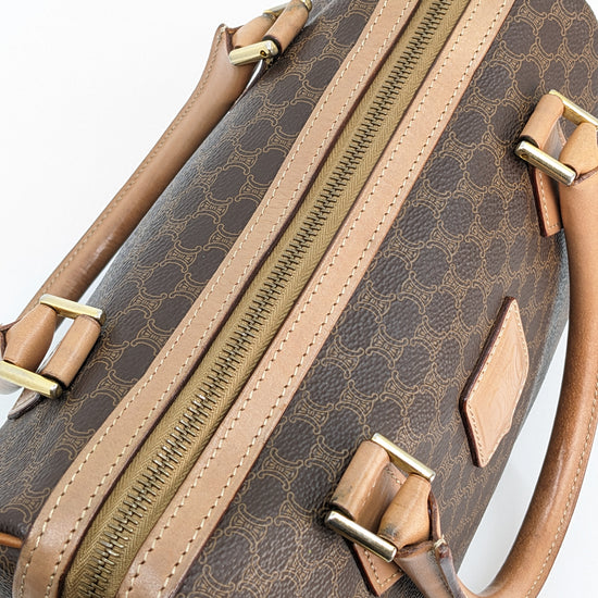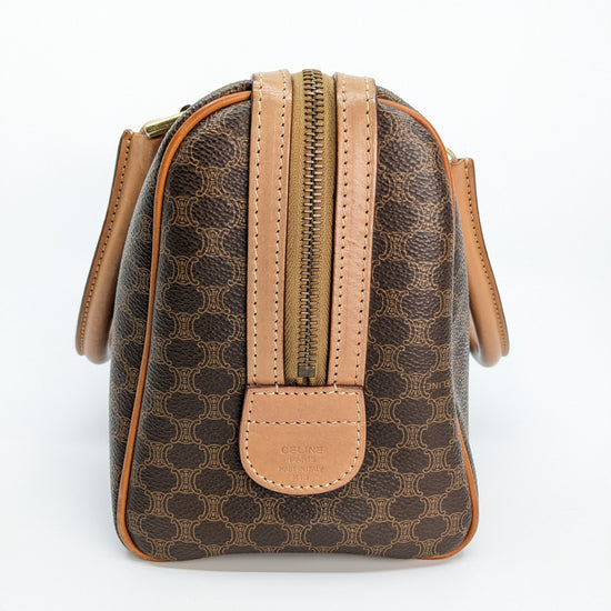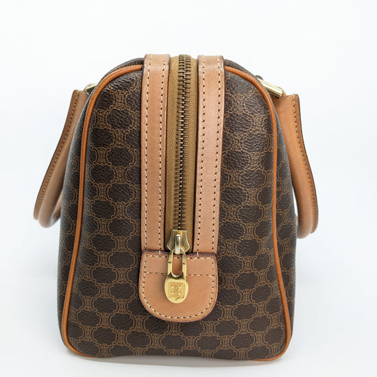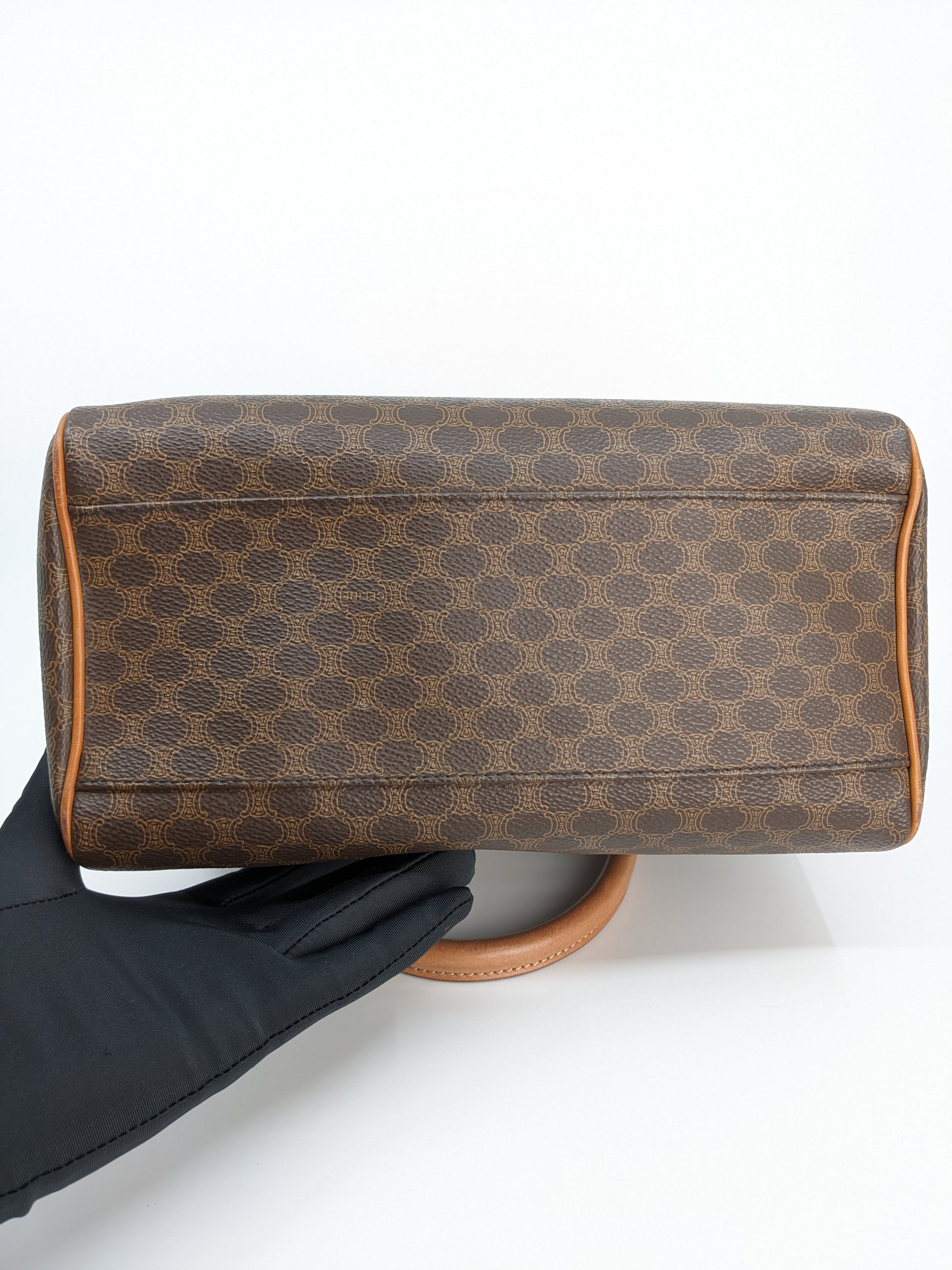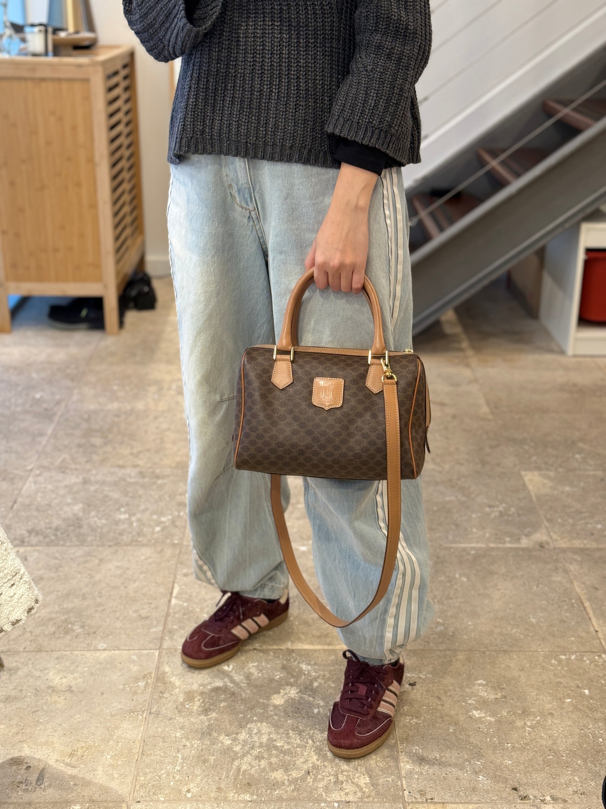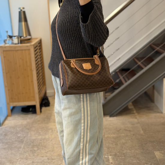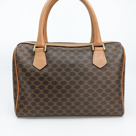 The vintage Celine Boston Bag 25cm is a compact yet timeless piece, often crafted in the brand’s iconic Macadam canvas with leather trim and gold-tone hardware. Its structured silhouette features a zip-around closure and a roomy interior, perfect for daily essentials.