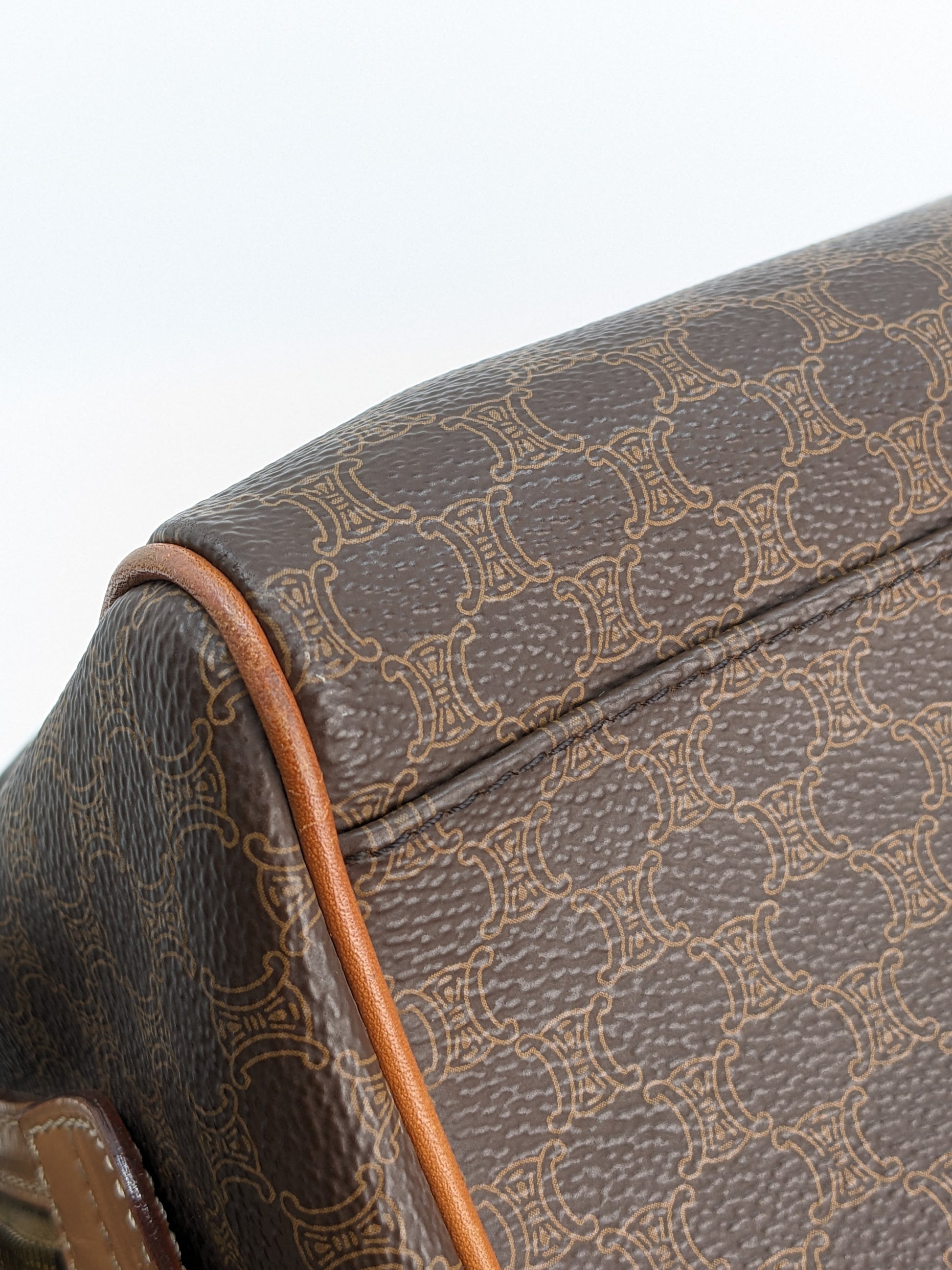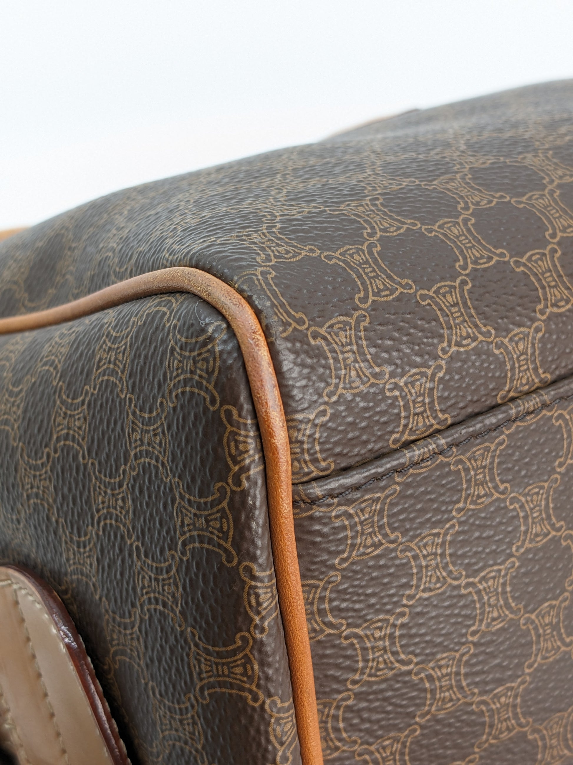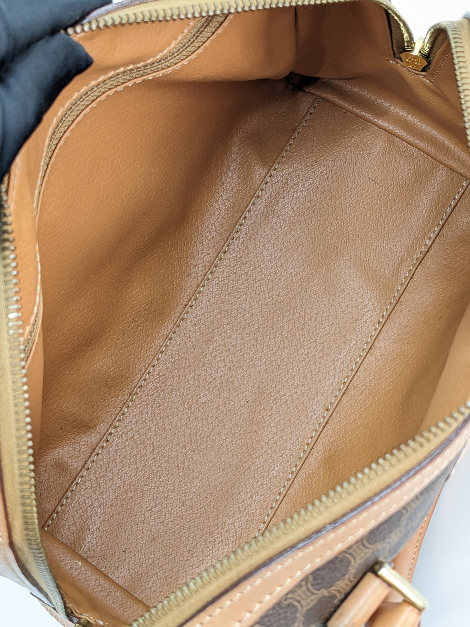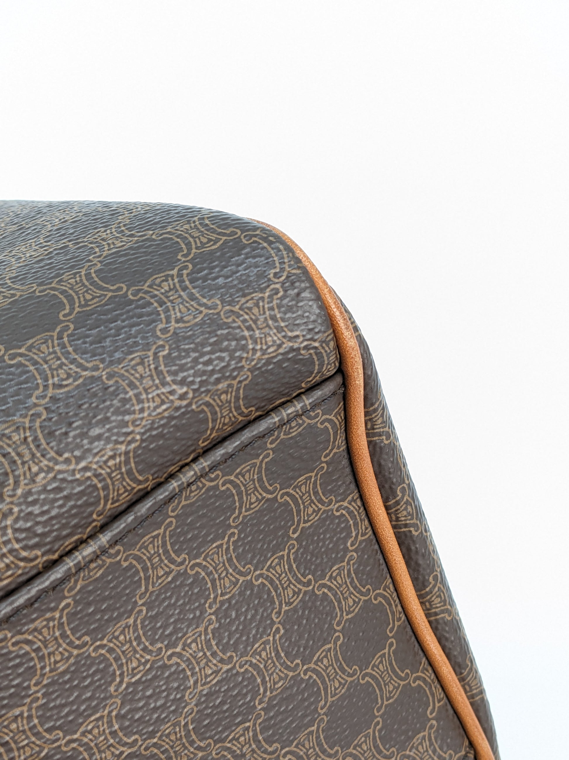 The vintage Celine Boston Bag 25cm is a compact yet timeless piece, often crafted in the brand’s iconic Macadam canvas with leather trim and gold-tone hardware. Its structured silhouette features a zip-around closure and a roomy interior, perfect for daily essentials.