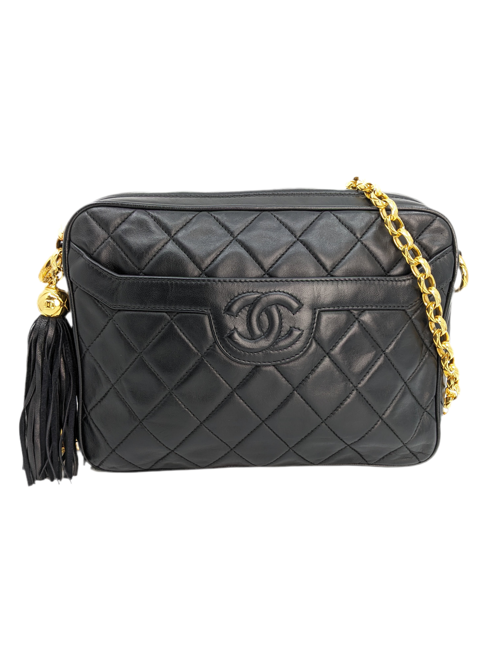 The Rare Vintage Chanel Camera Bag in Black with Bijou Chain is an exceptional collector’s piece that showcases the house’s early luxury craftsmanship.