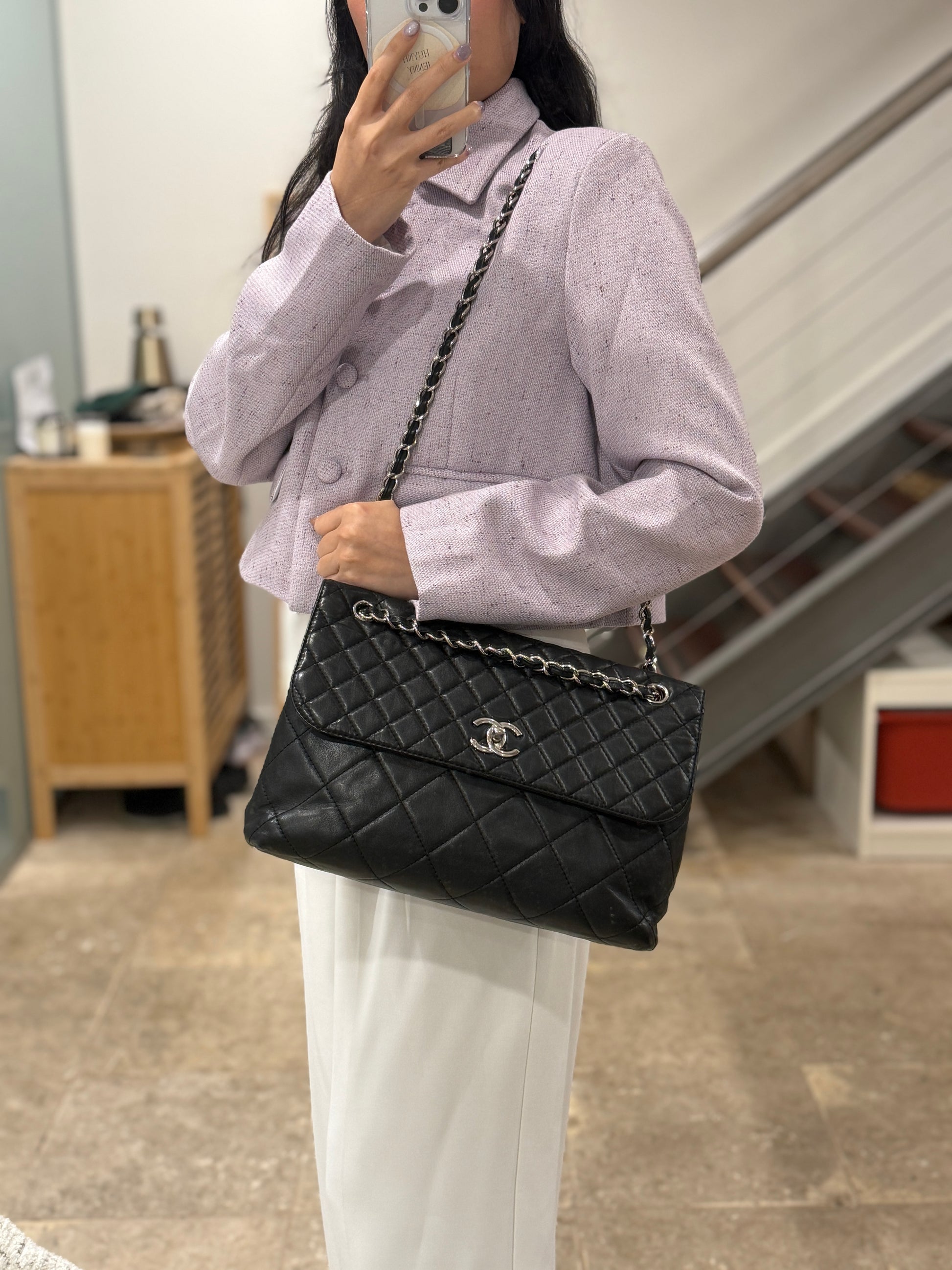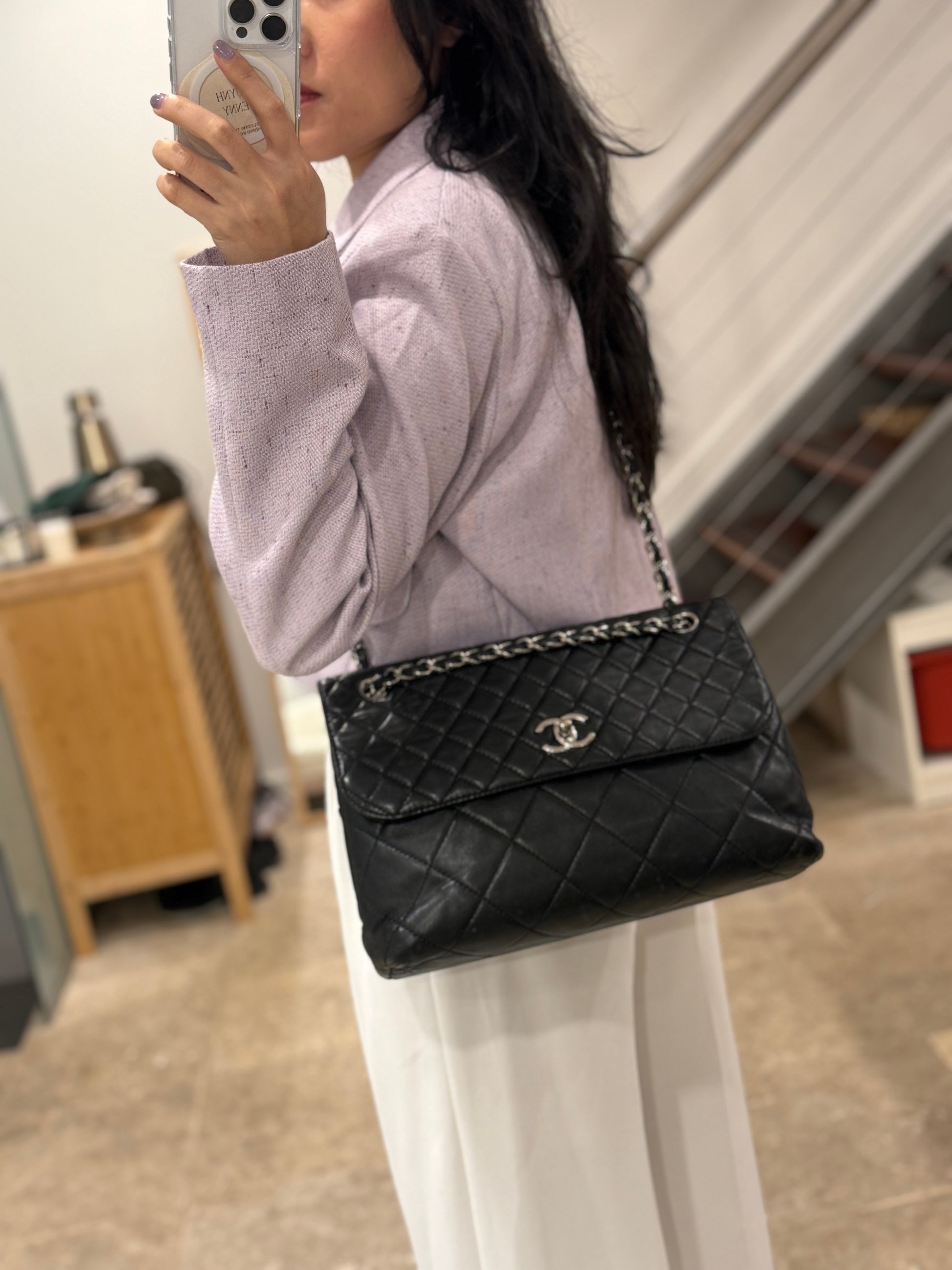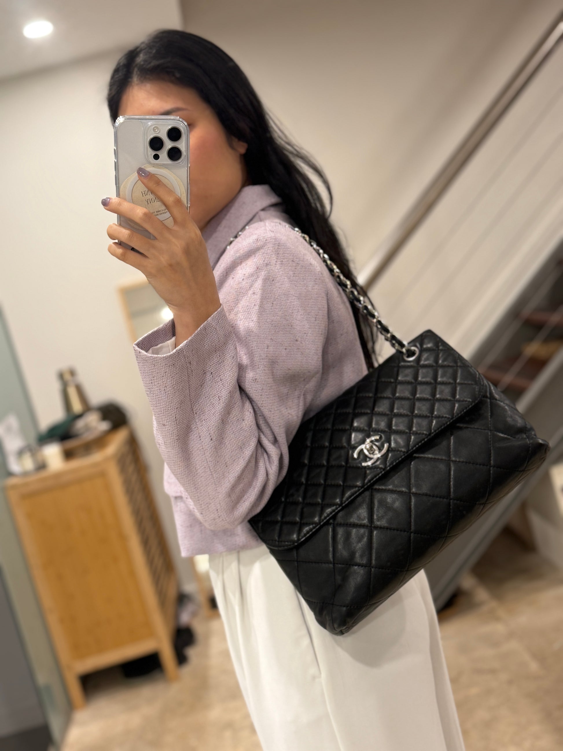 Chanel Classic Single Flap Jumbo Calfskin Silver Hardware