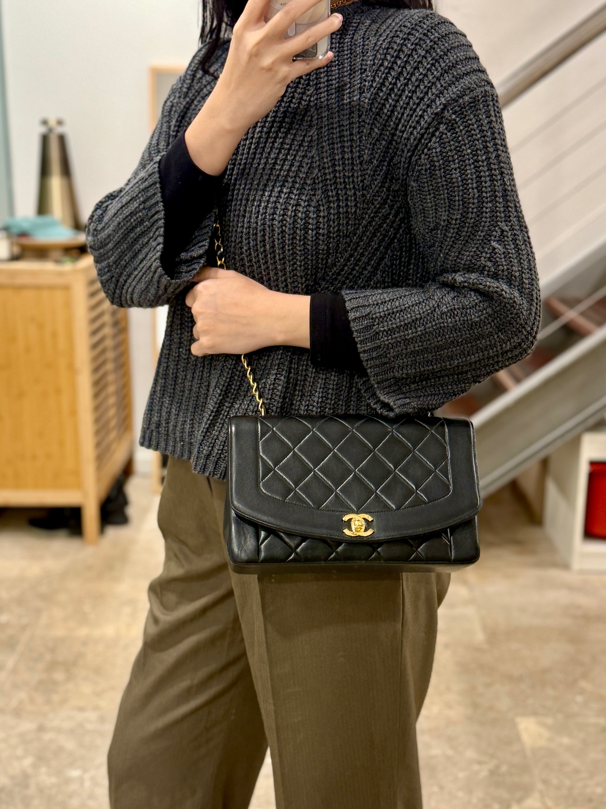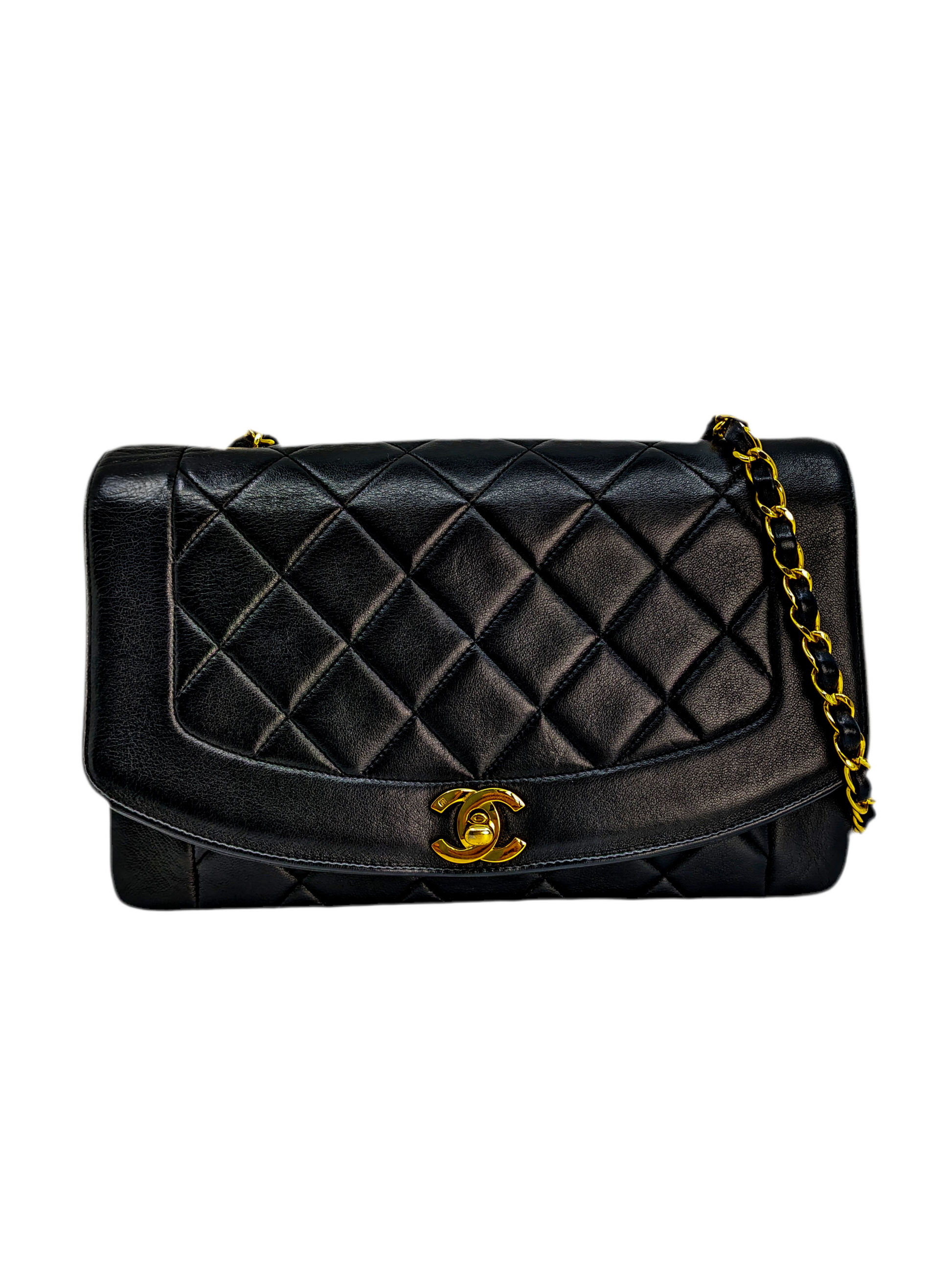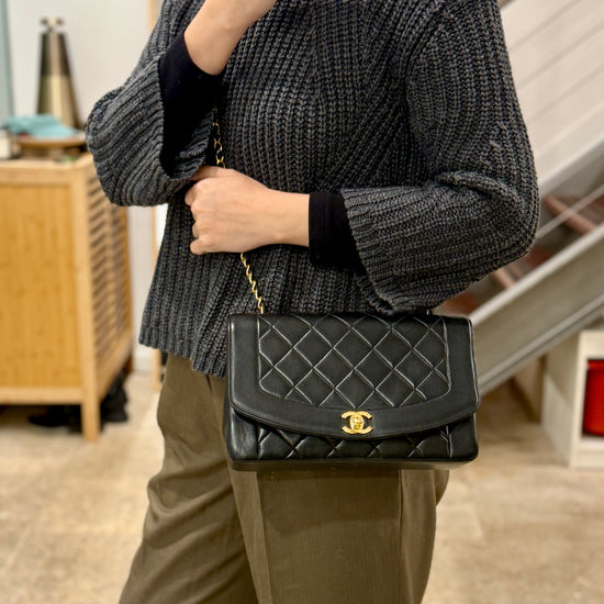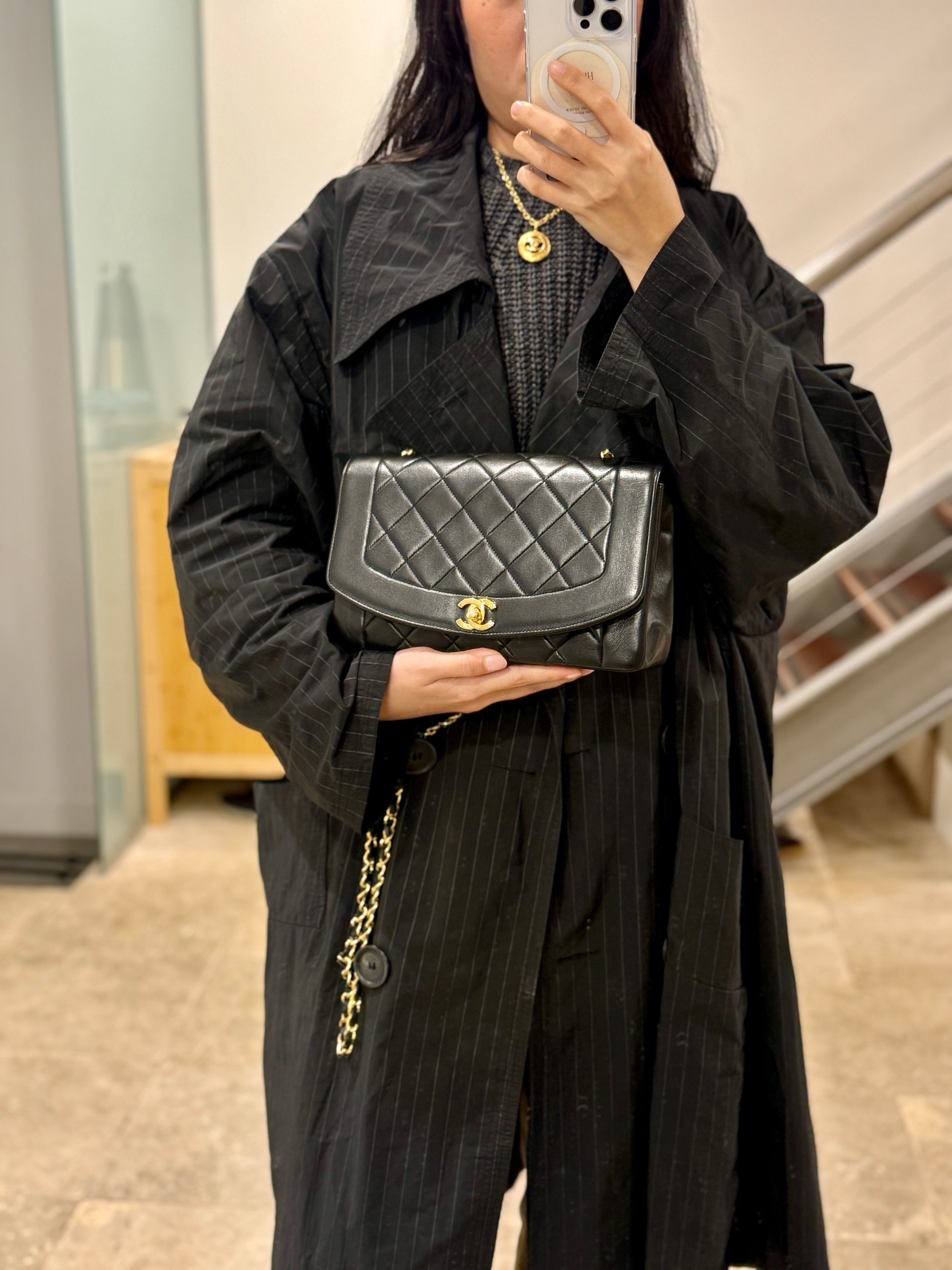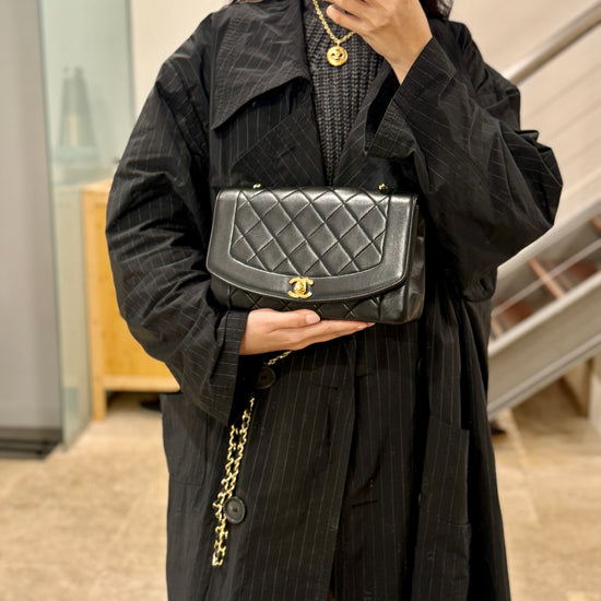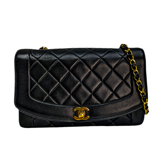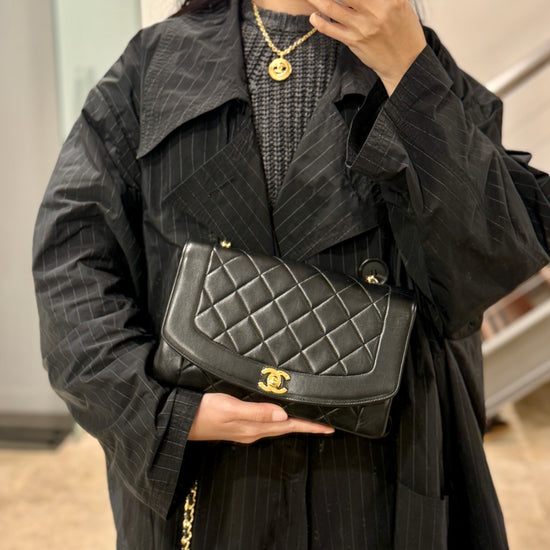The Vintage Chanel Diana Medium Flap Bag in Black is an iconic and highly sought-after piece, originally introduced in the early 1990s and named after Princess Diana, who famously carried it.