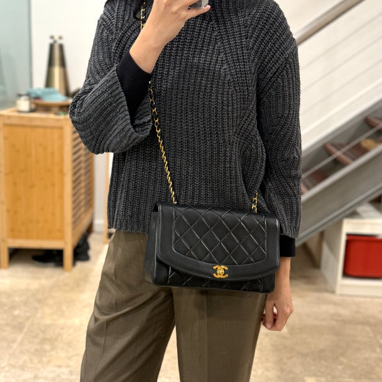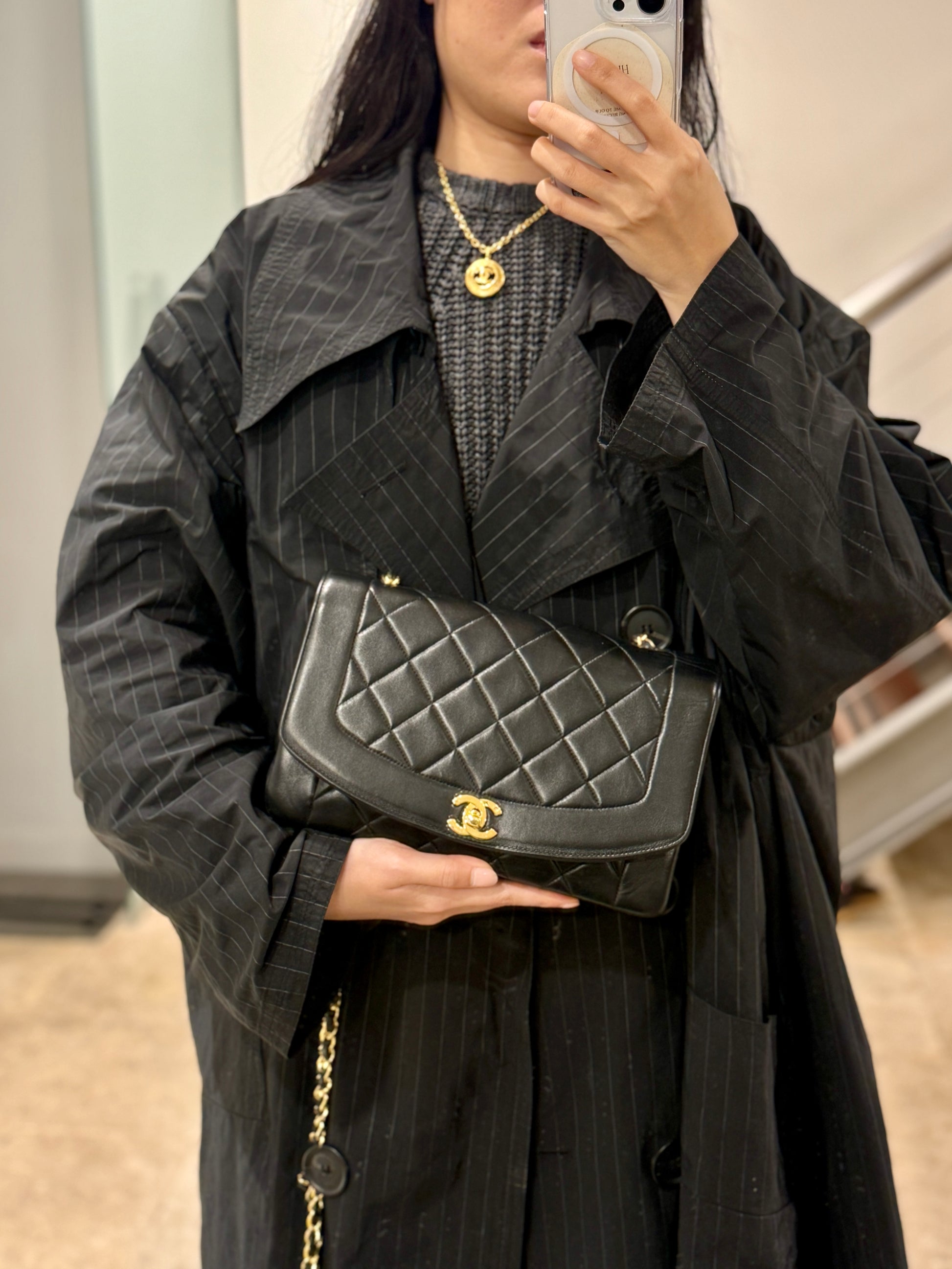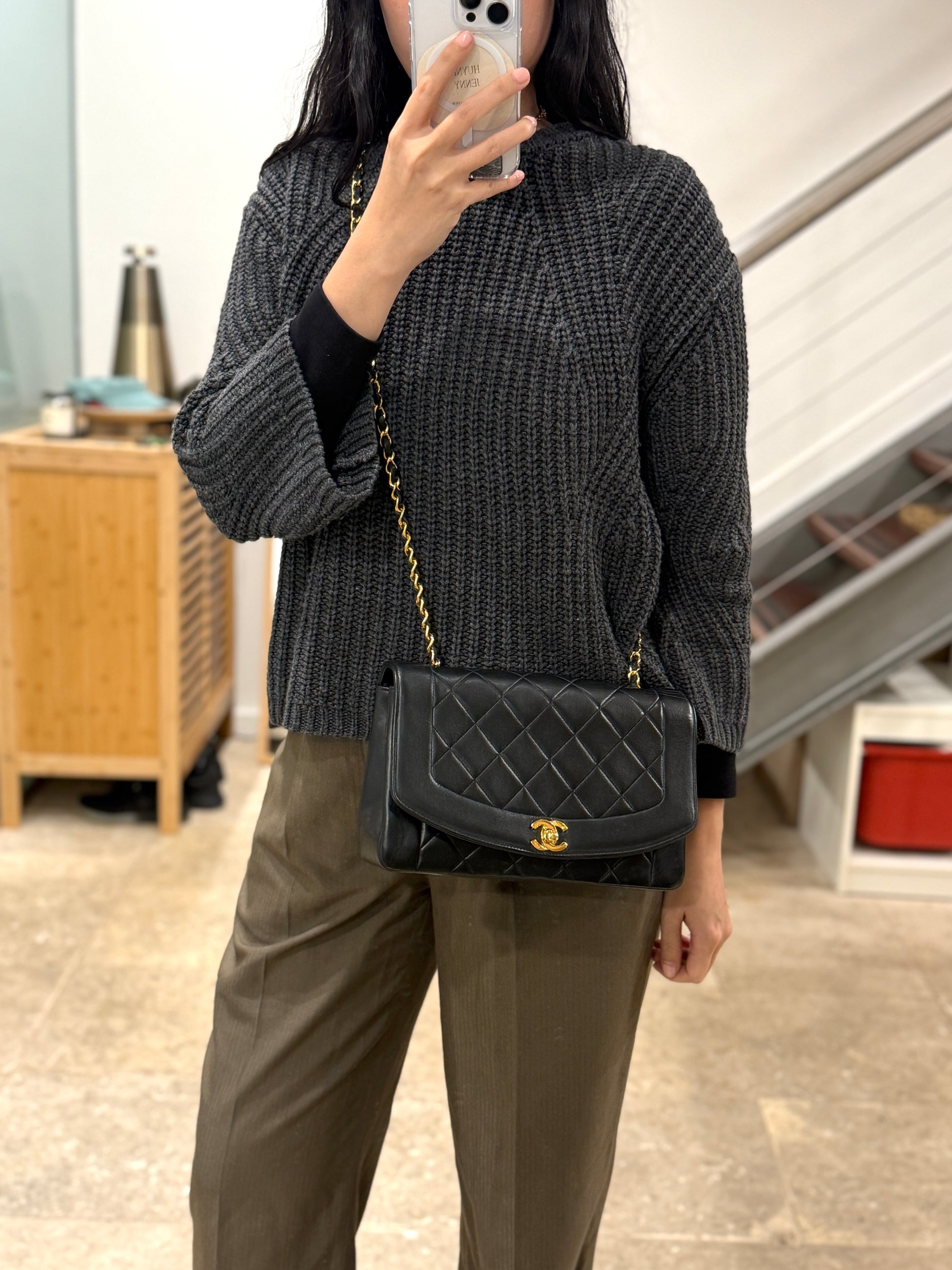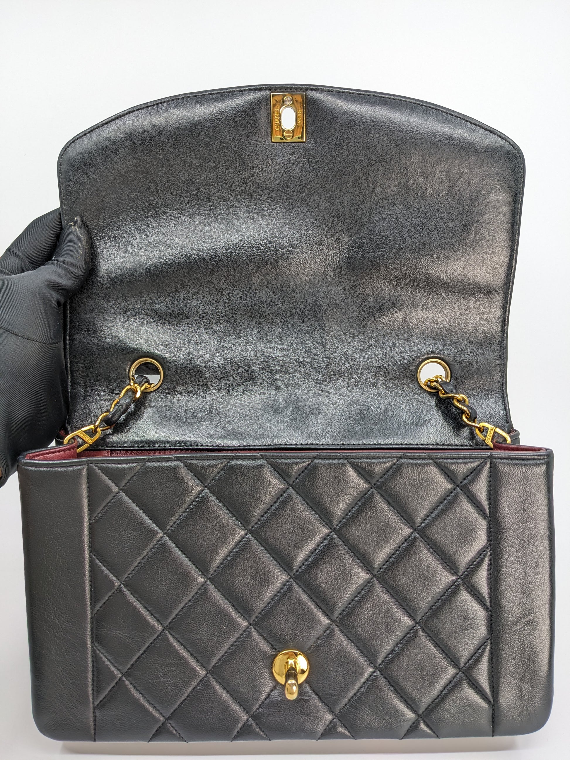 The Vintage Chanel Diana Medium Flap Bag in Black is an iconic and highly sought-after piece, originally introduced in the early 1990s and named after Princess Diana, who famously carried it.