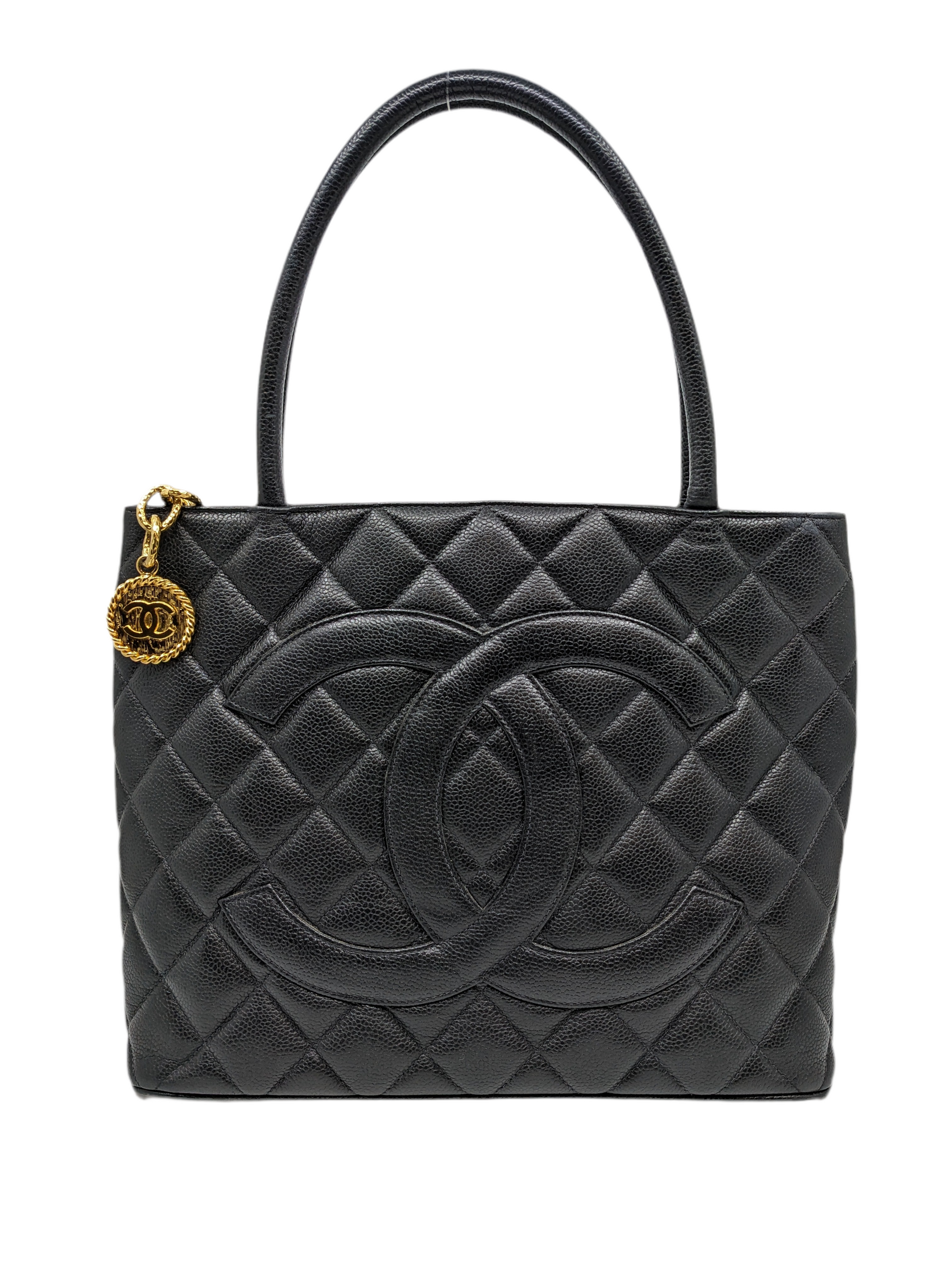 One of the standout features of this tote is the large, gold-tone CC medallion charm that hangs from the zipper pull, made from 24K plated gold. This iconic detail adds a touch of glamour and unmistakable Chanel elegance.