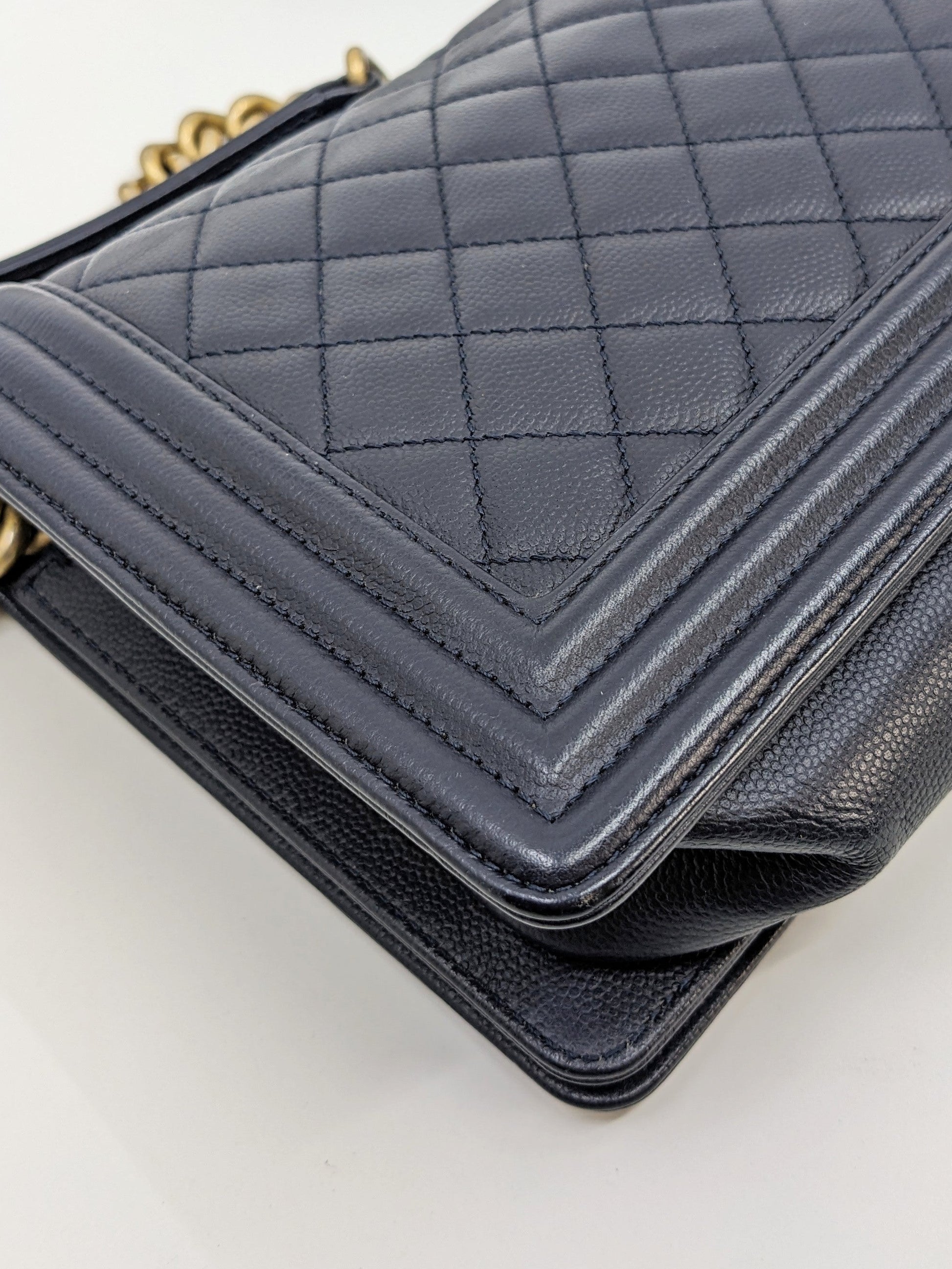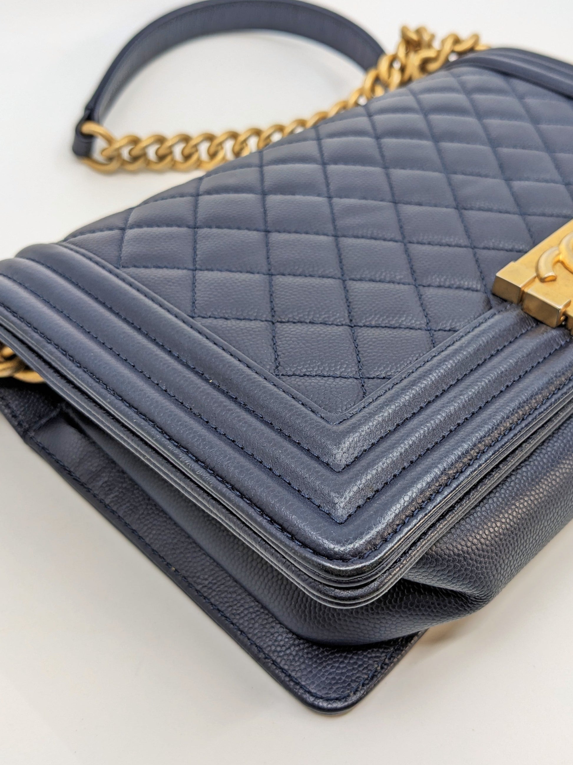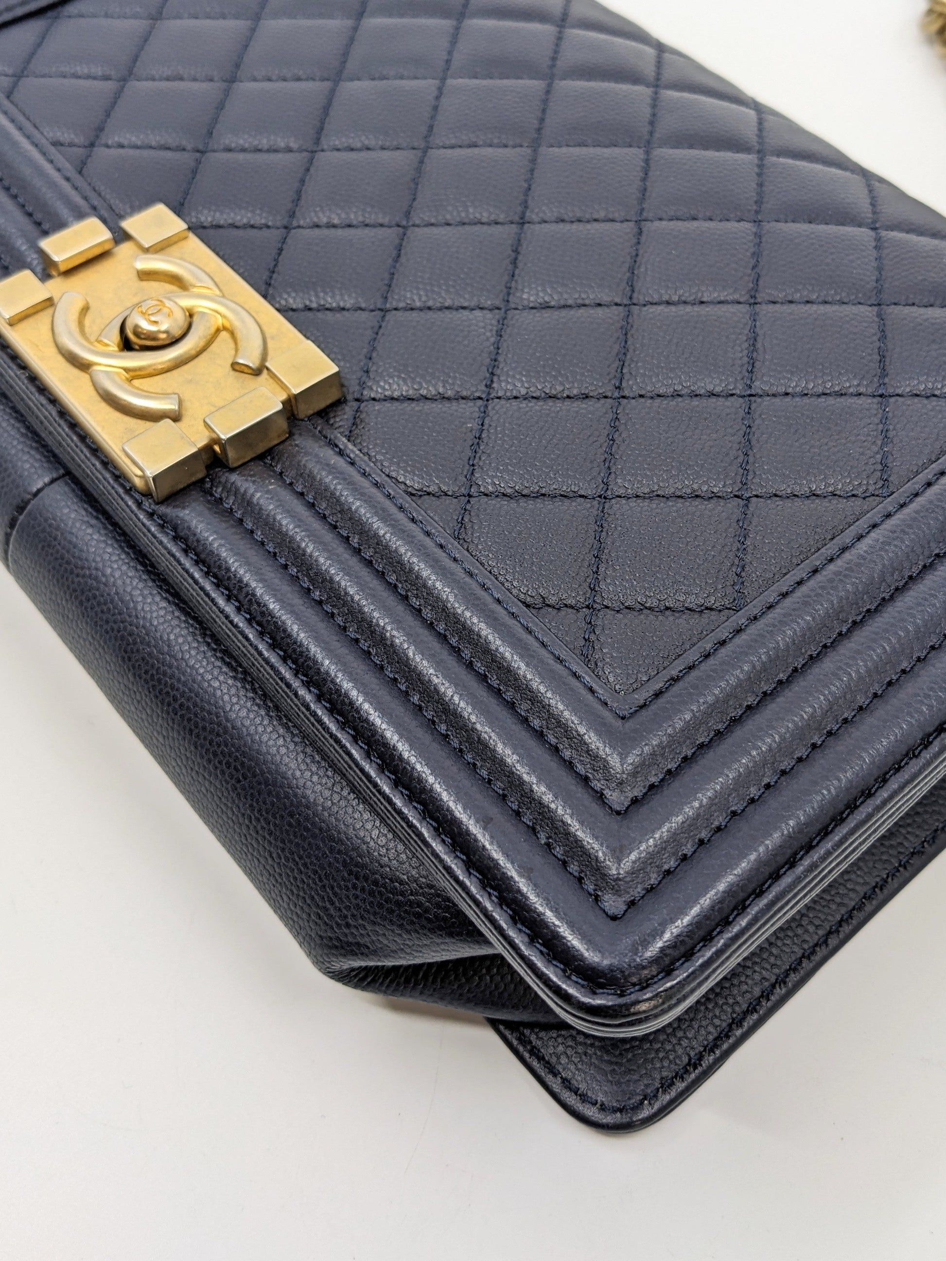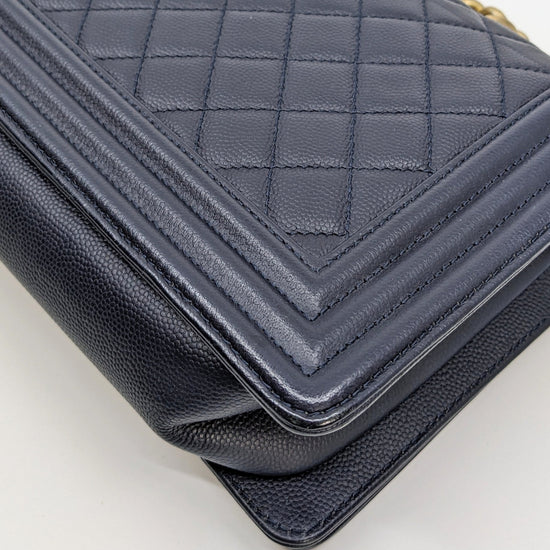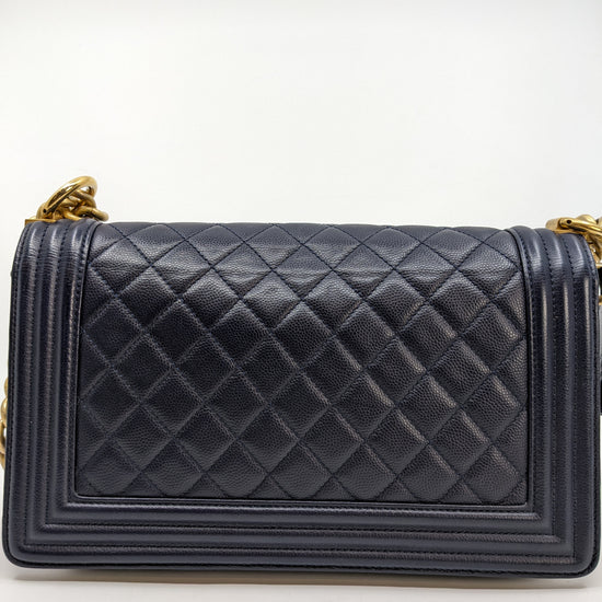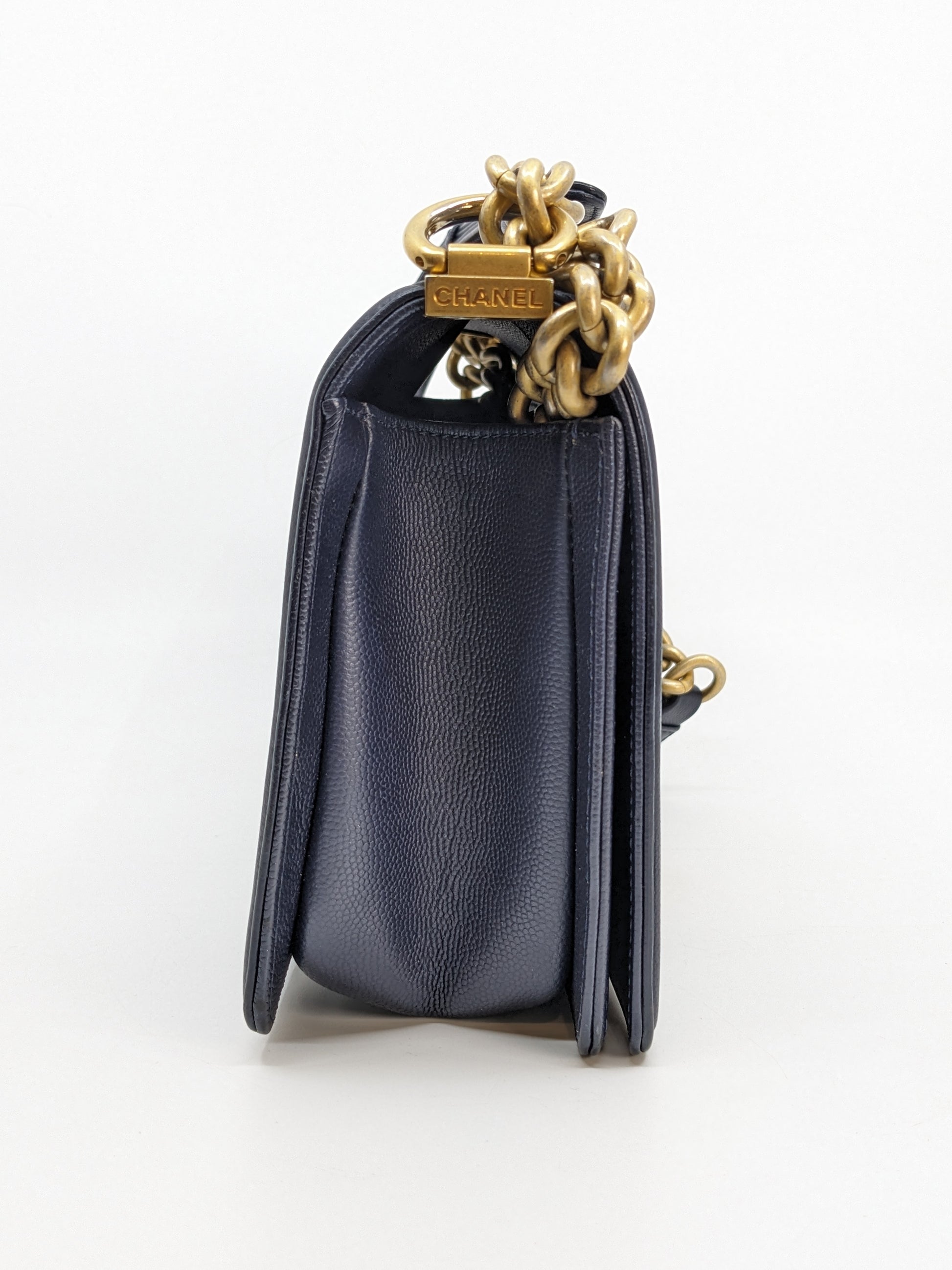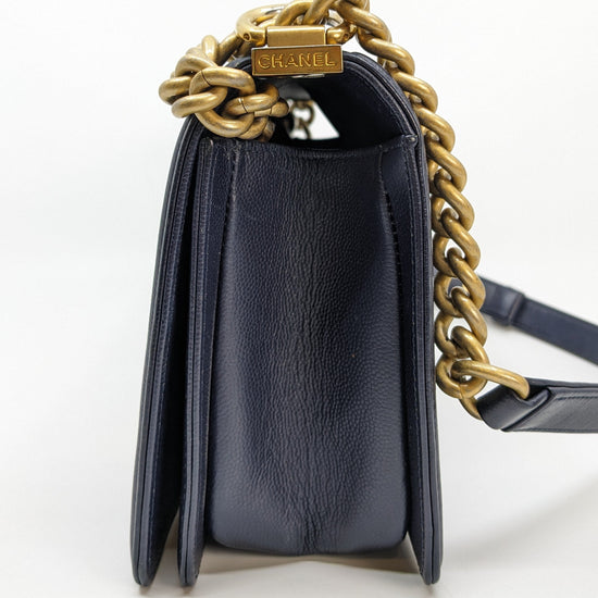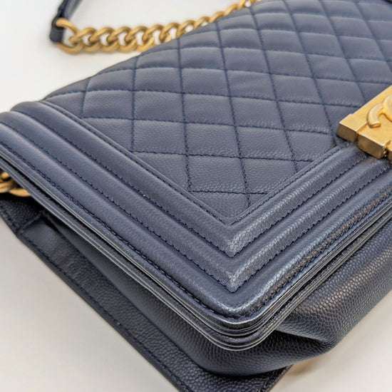 Chanel Le Boy Old Medium Navy Caviar Gold Hardware