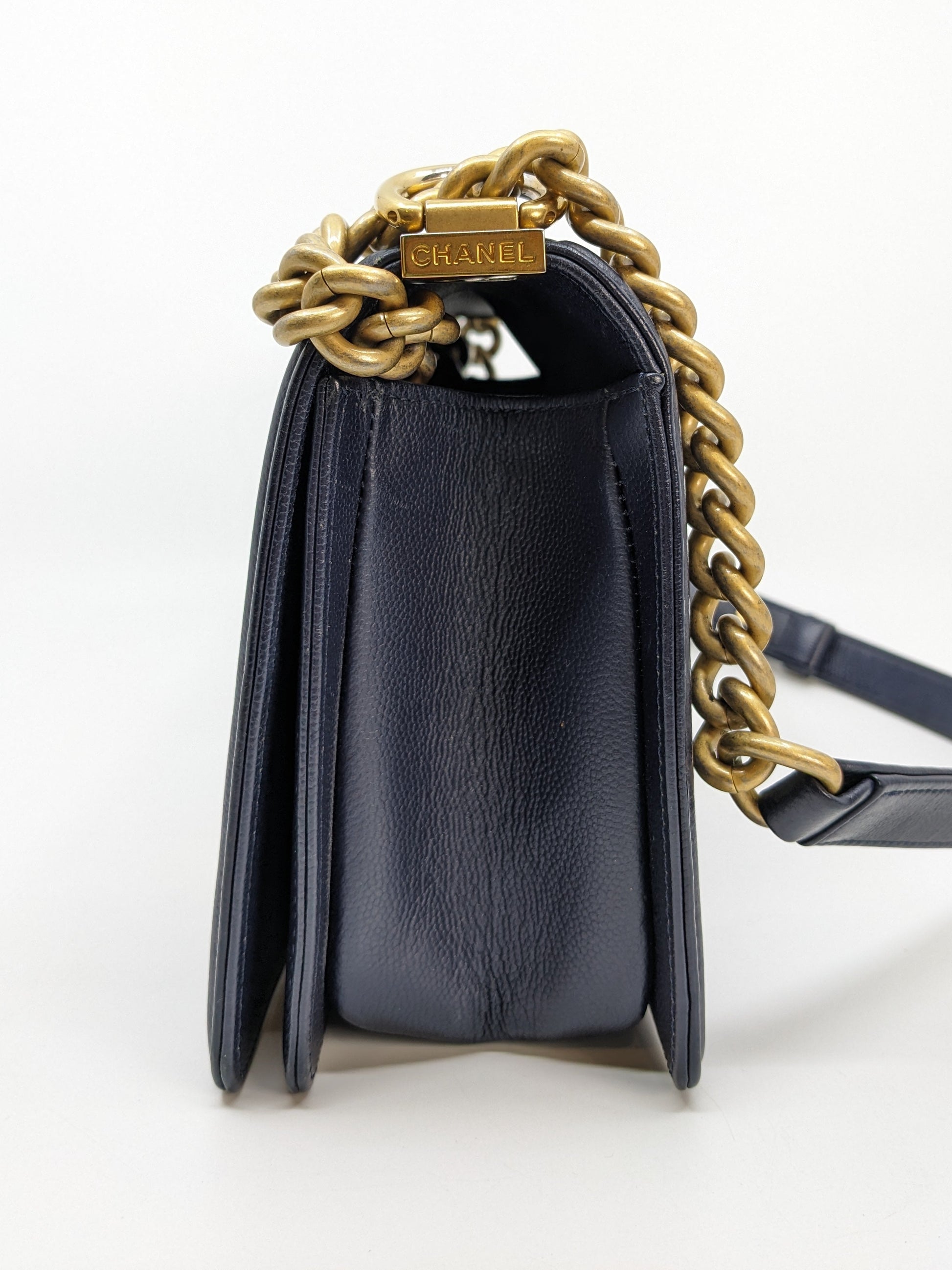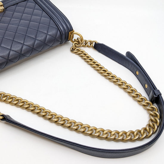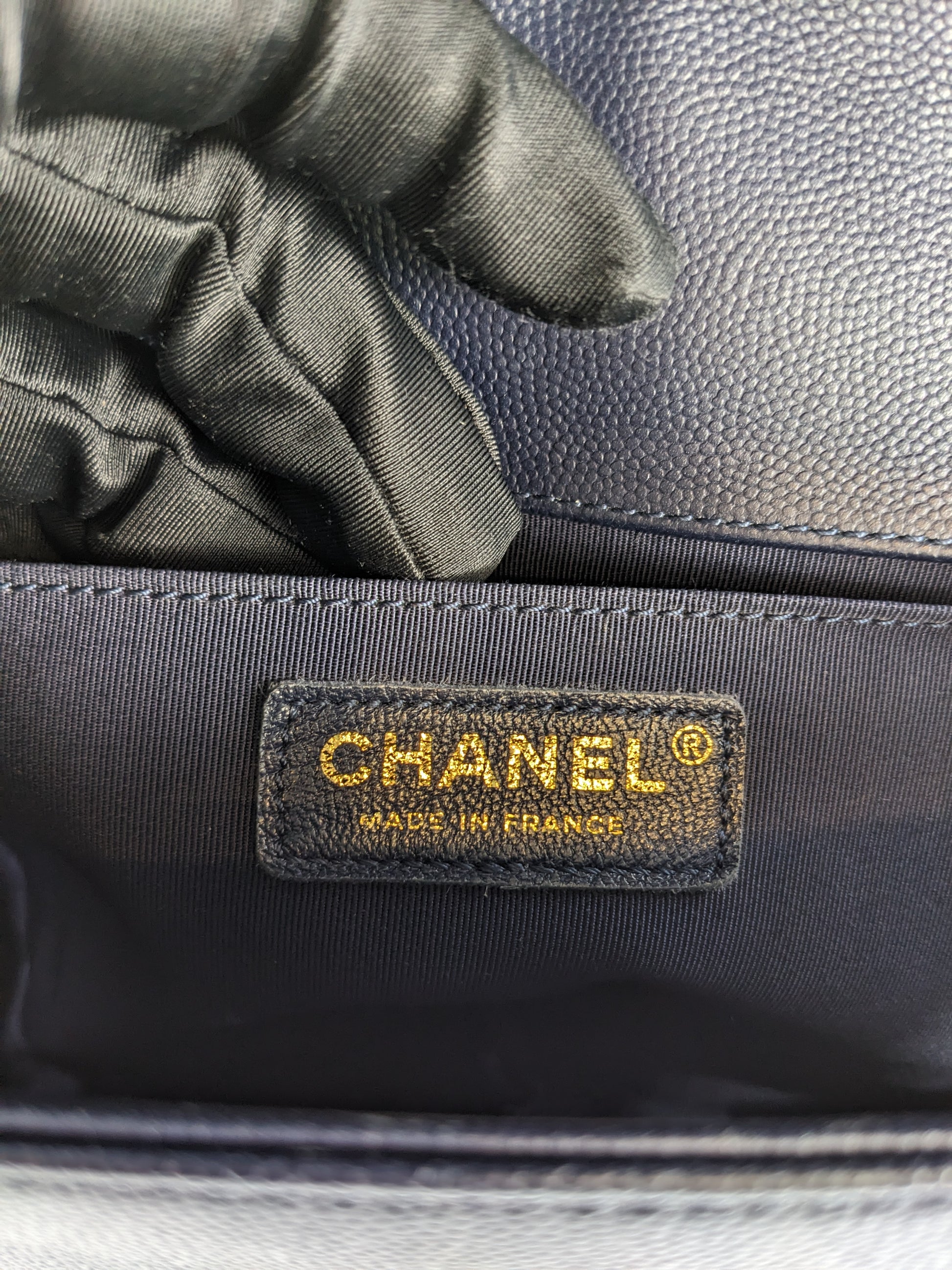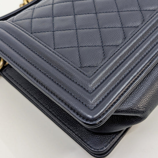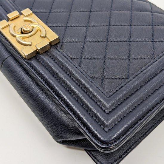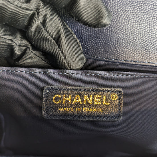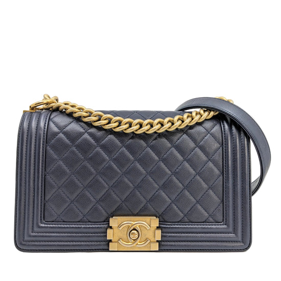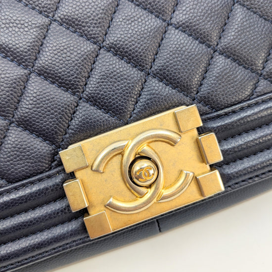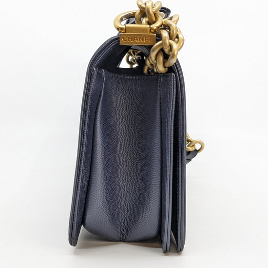 Chanel Le Boy Old Medium Navy Caviar Gold Hardware