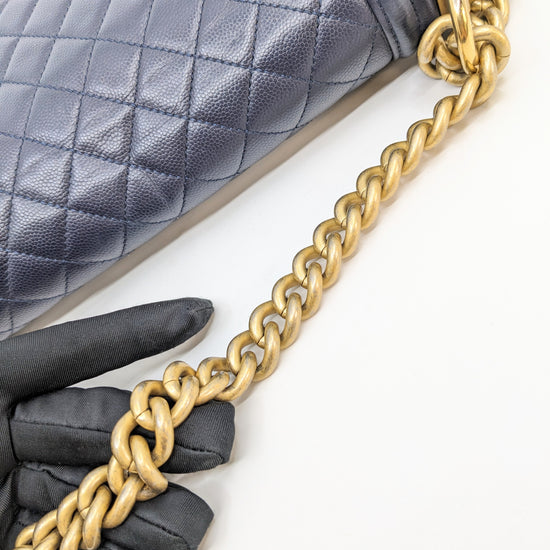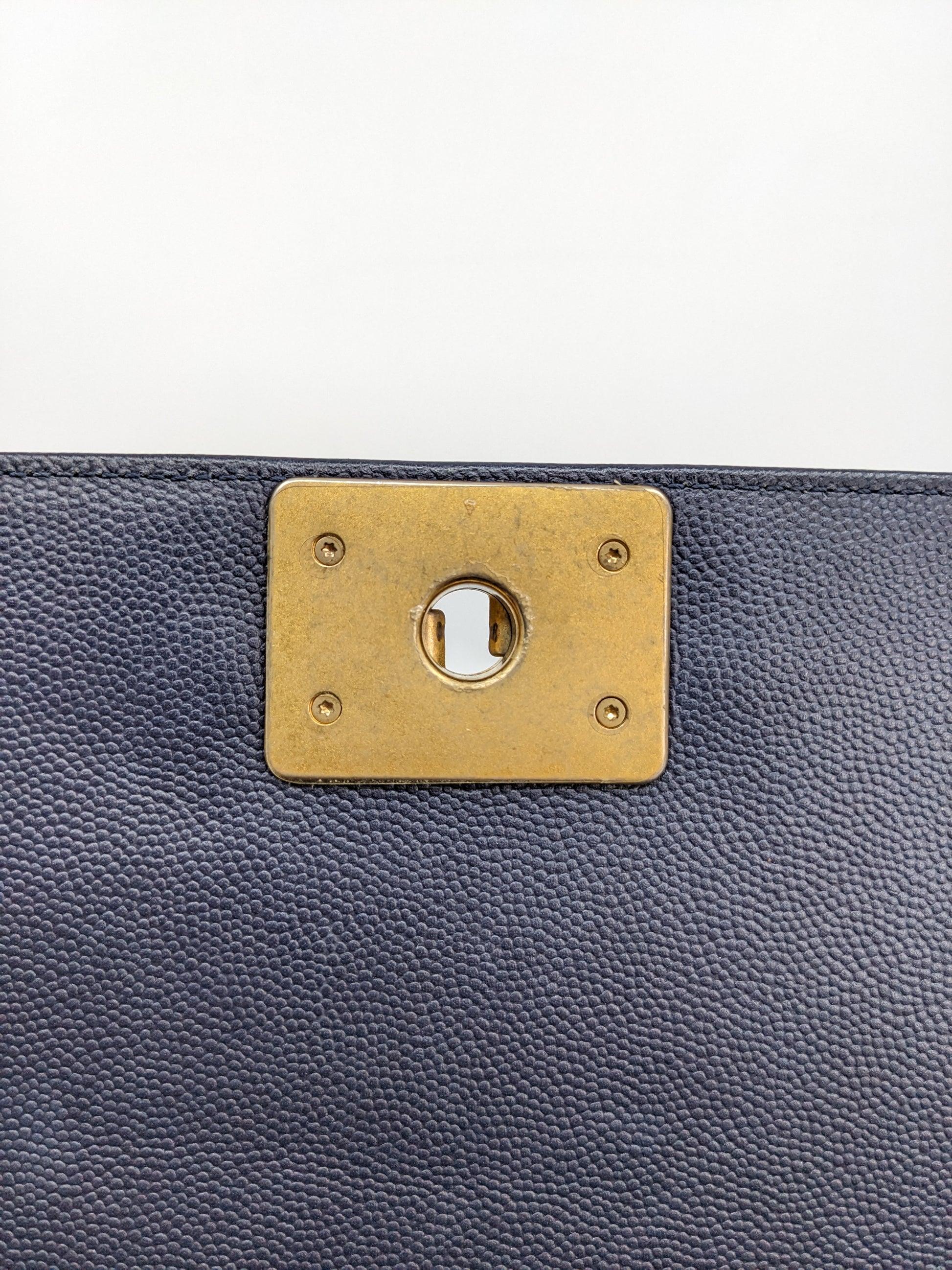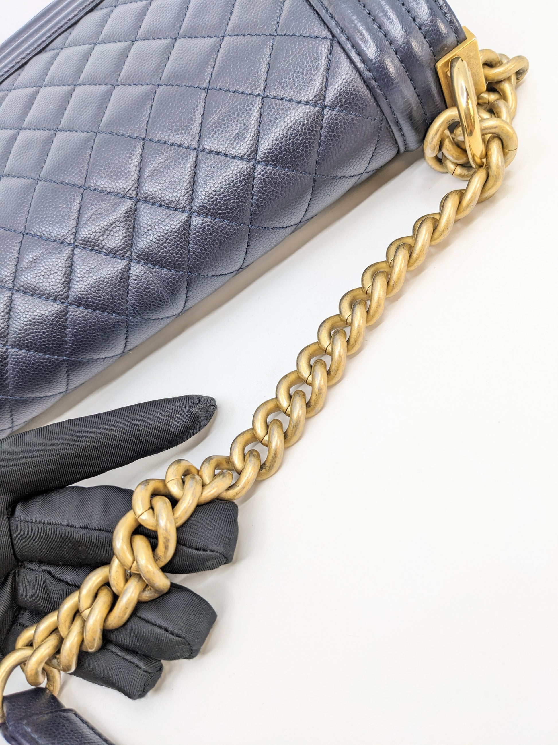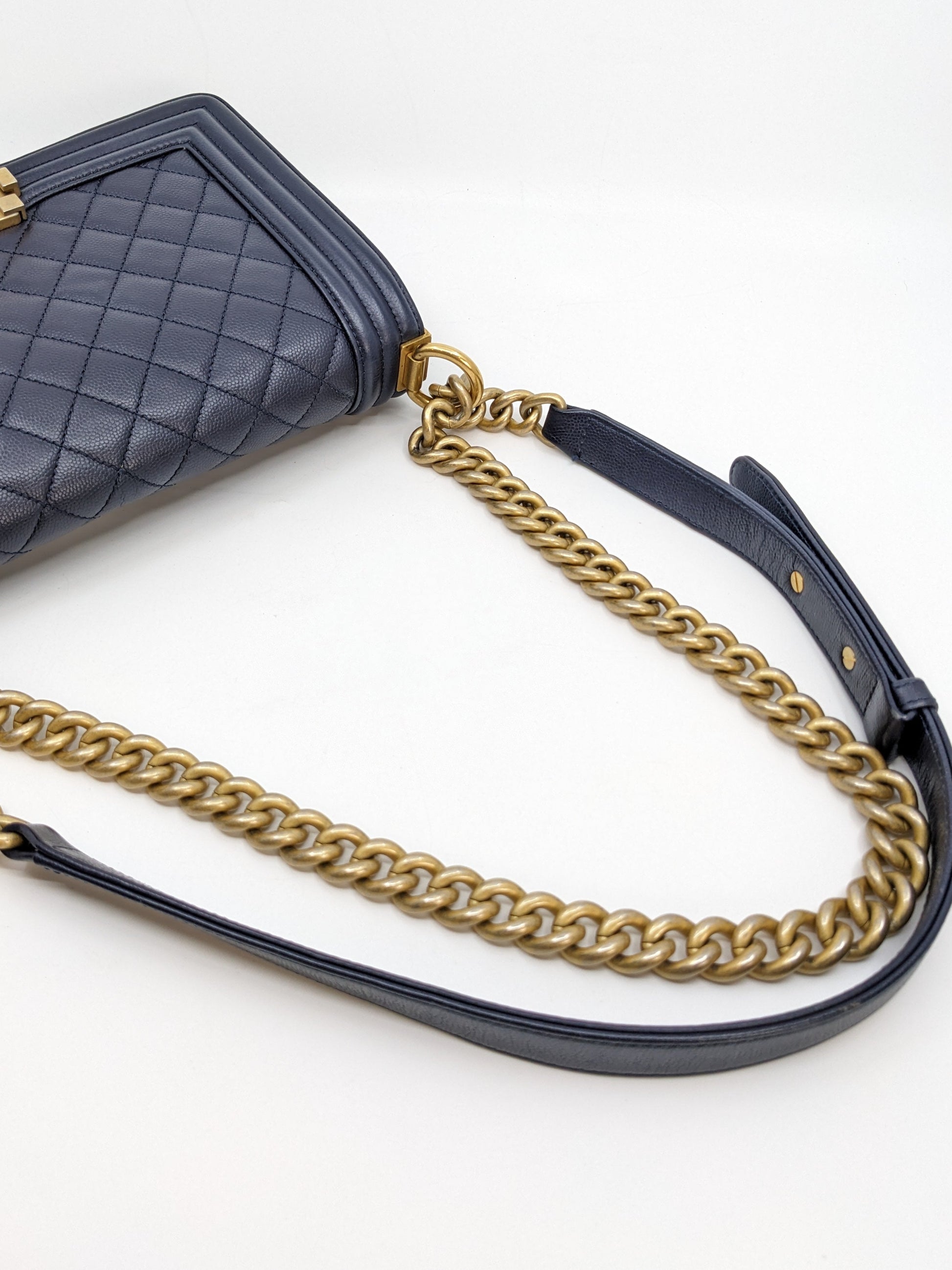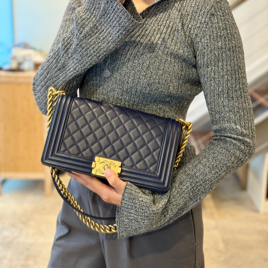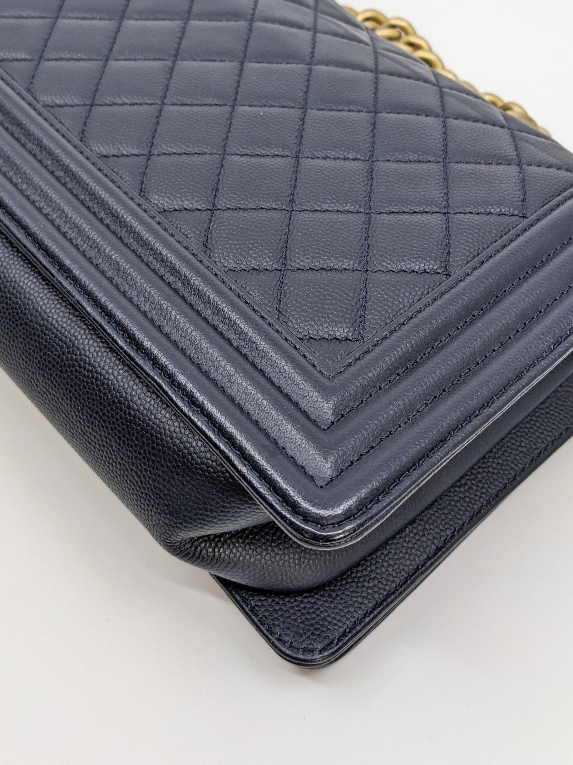 Chanel Le Boy Old Medium Navy Caviar Gold Hardware