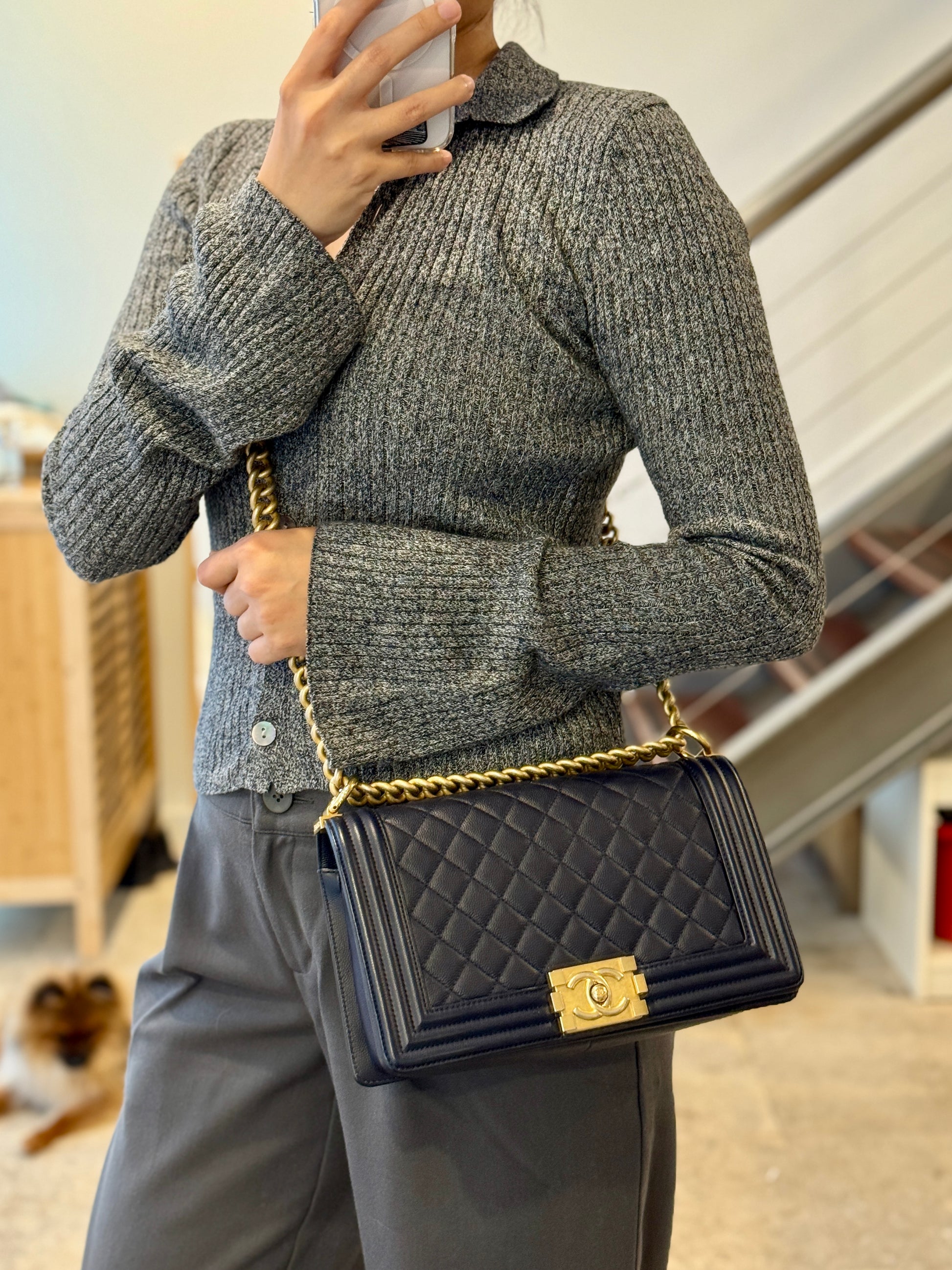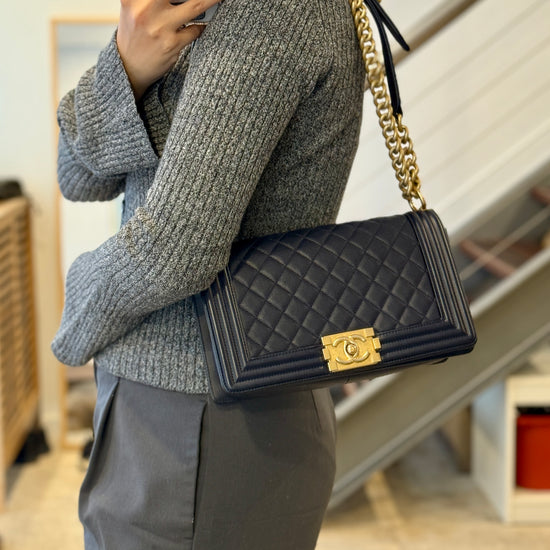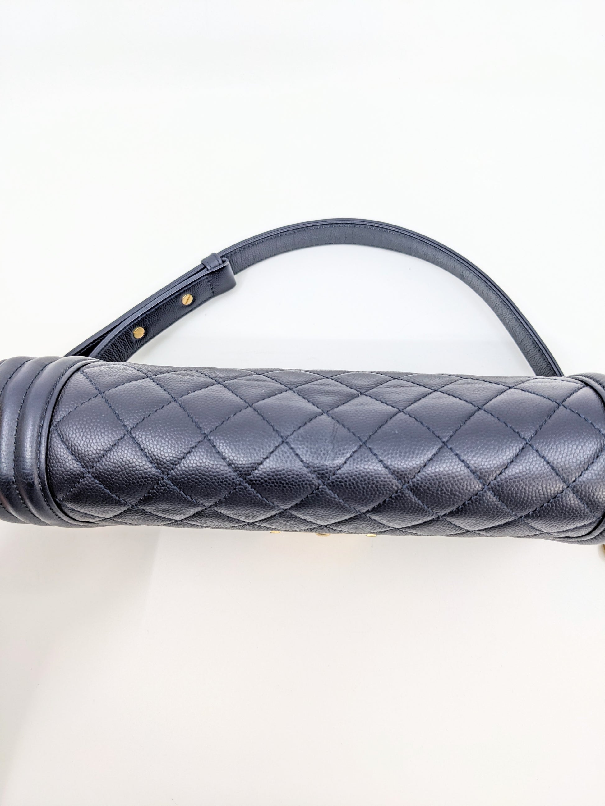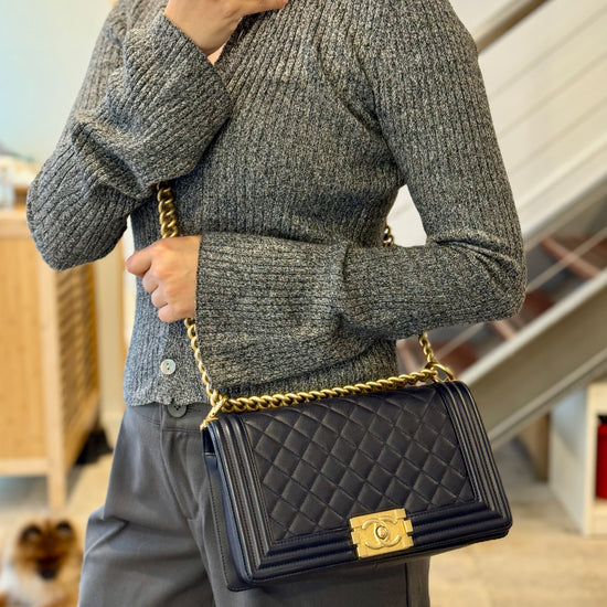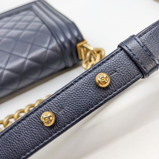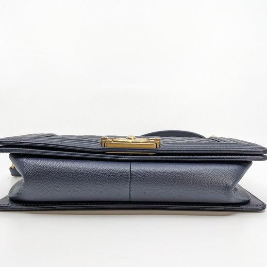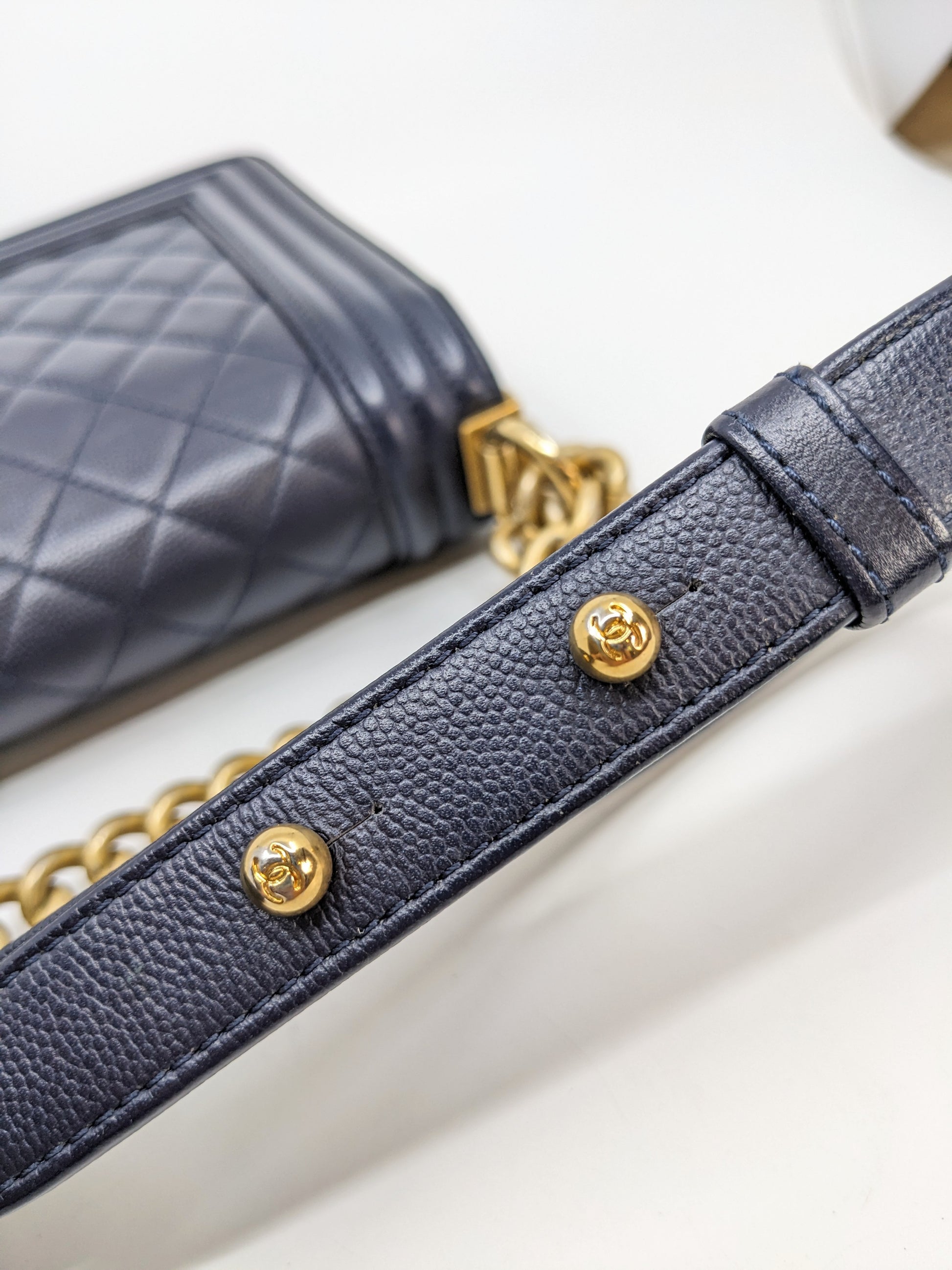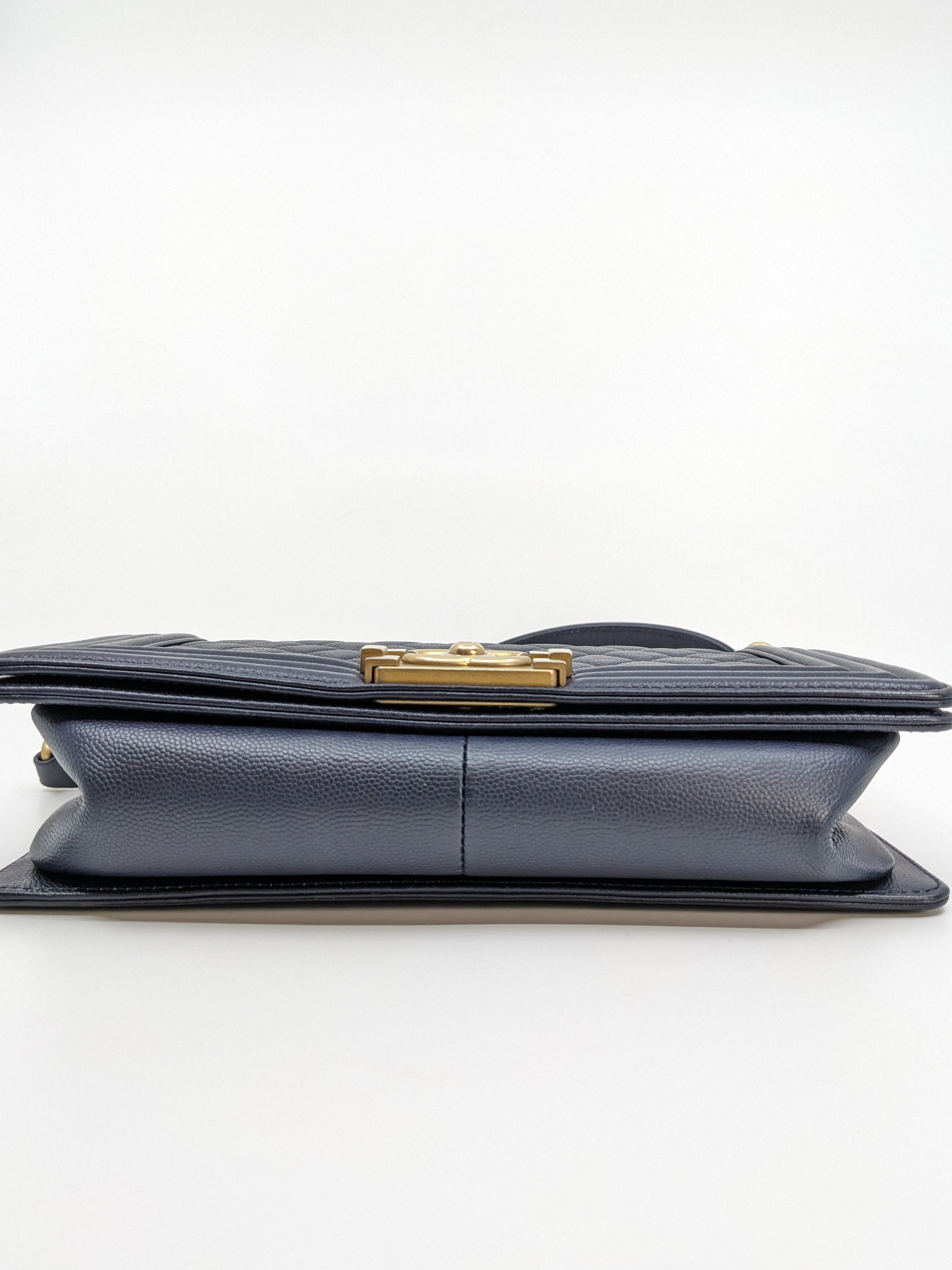 Chanel Le Boy Old Medium Navy Caviar Gold Hardware