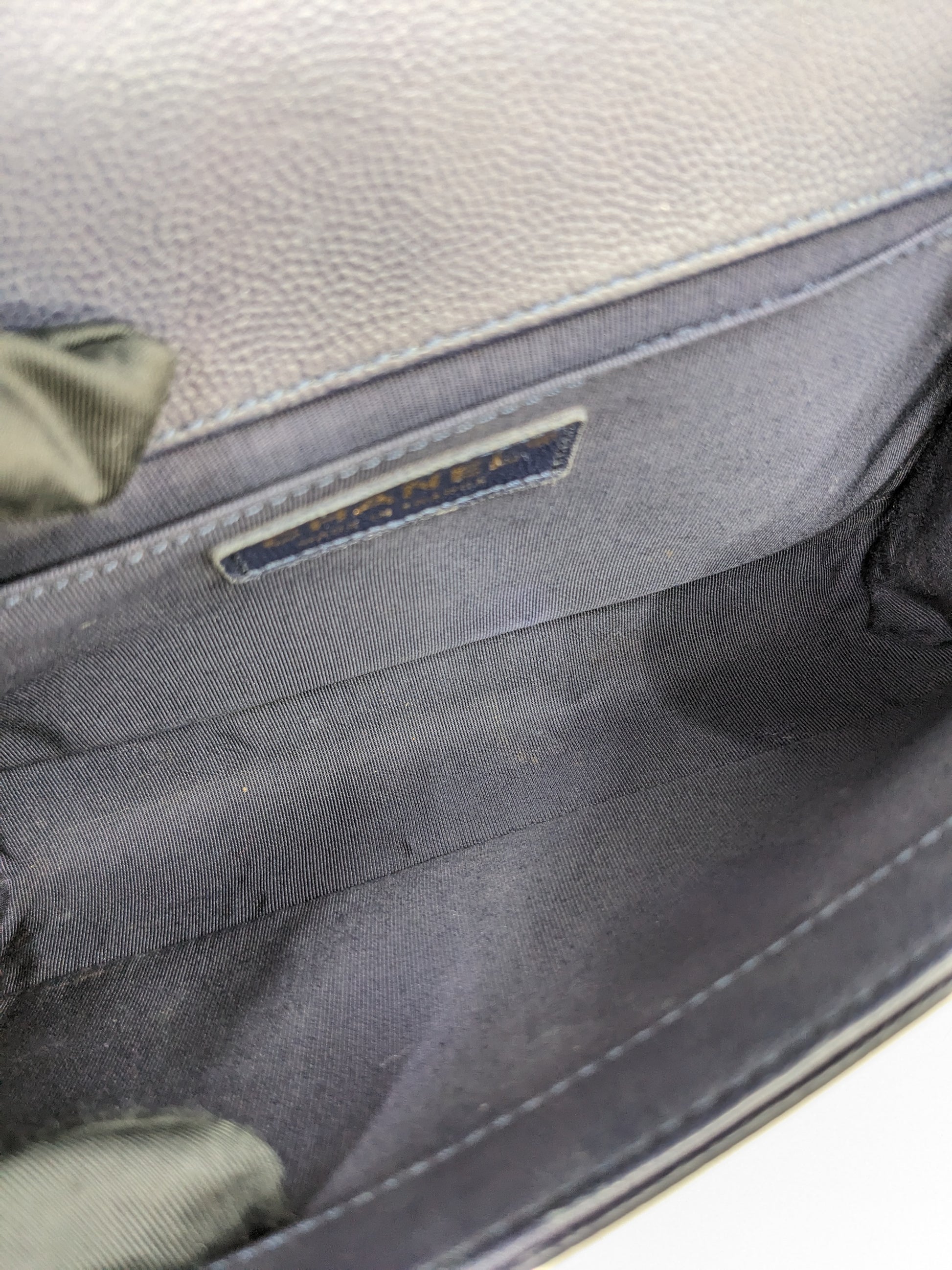Chanel Le Boy Old Medium in classic navy caviar leather, combining modern edge with timeless elegance. The durable caviar leather features a beautifully textured finish that is both structured and resistant to wear. Accented with signature Boy hardware, this piece delivers a bold yet sophisticated statement. The Old Medium size offers practical space for daily essentials while maintaining a sleek silhouette. A versatile and highly sought after Chanel staple that elevates any wardrobe.