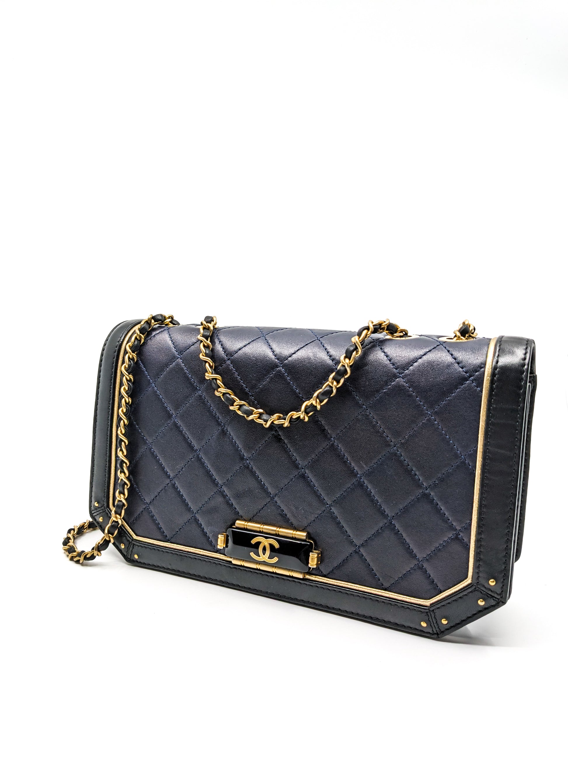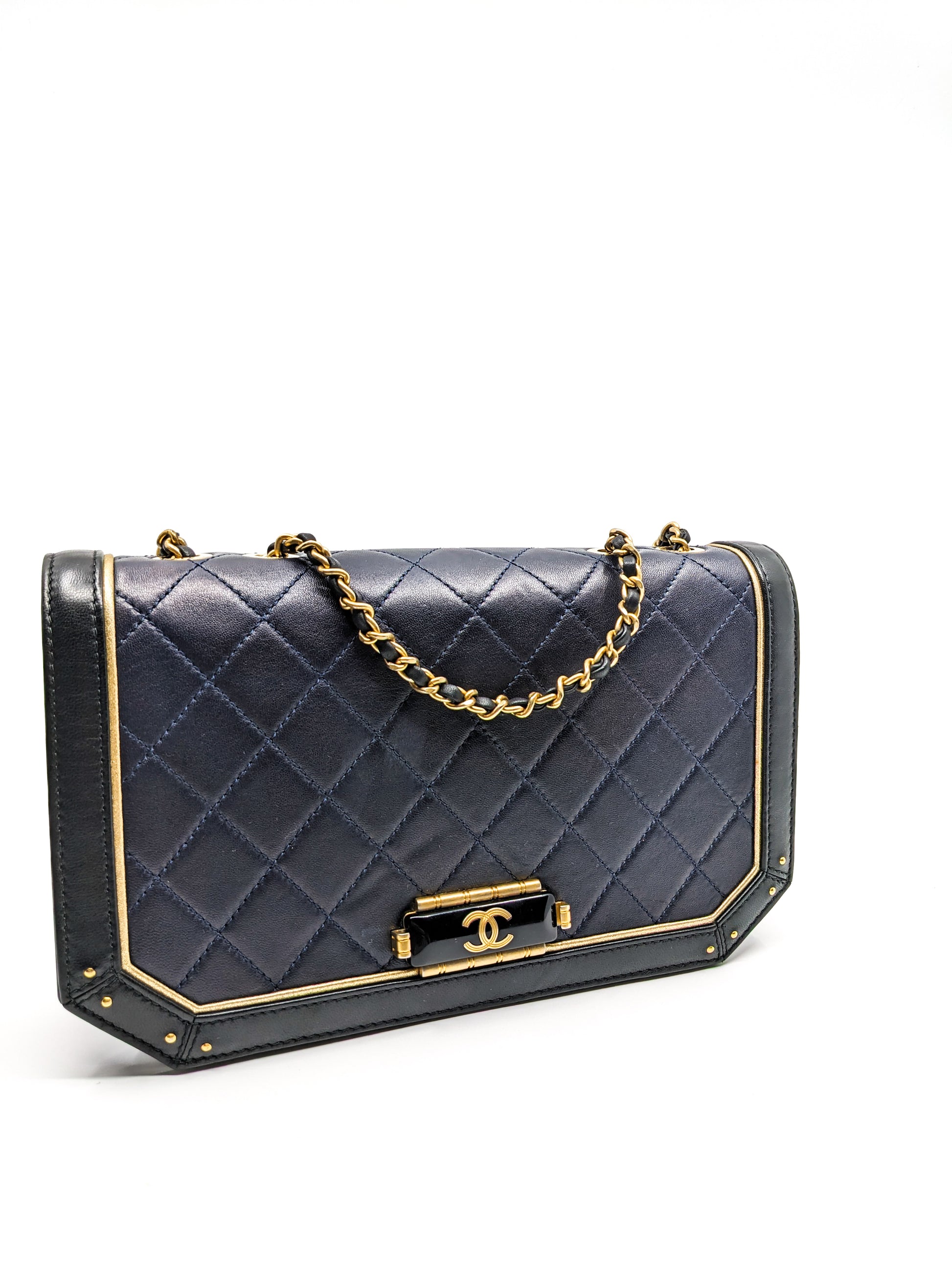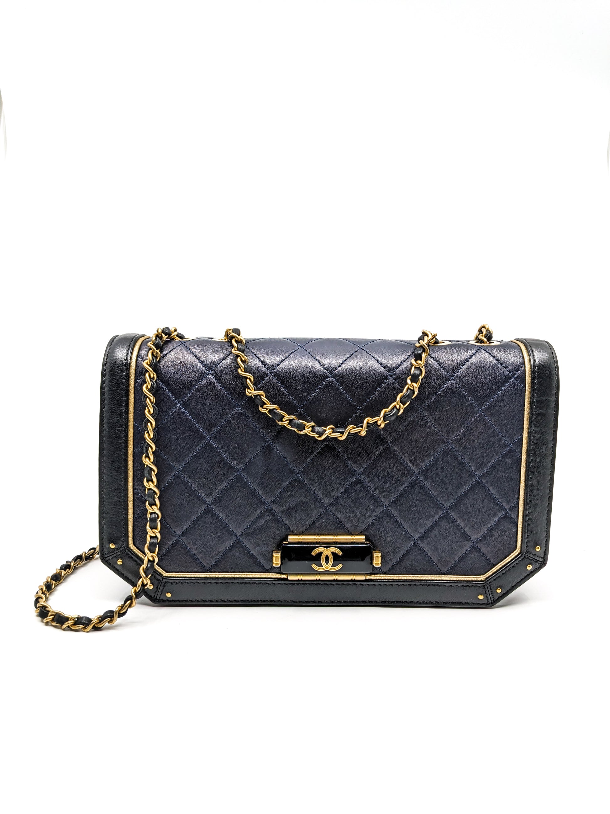 Chanel Octagon CC Clasp Single Flap Navy
