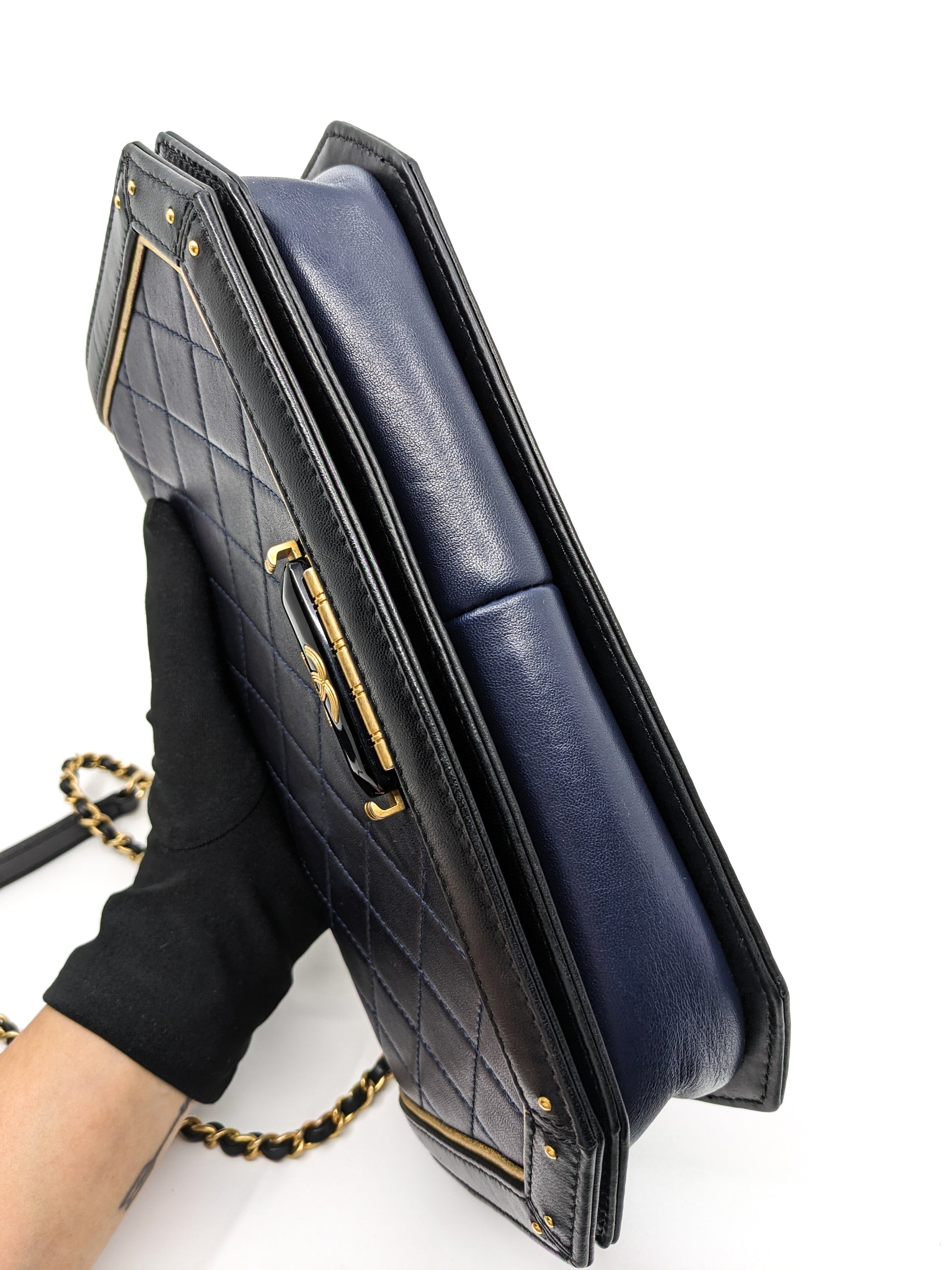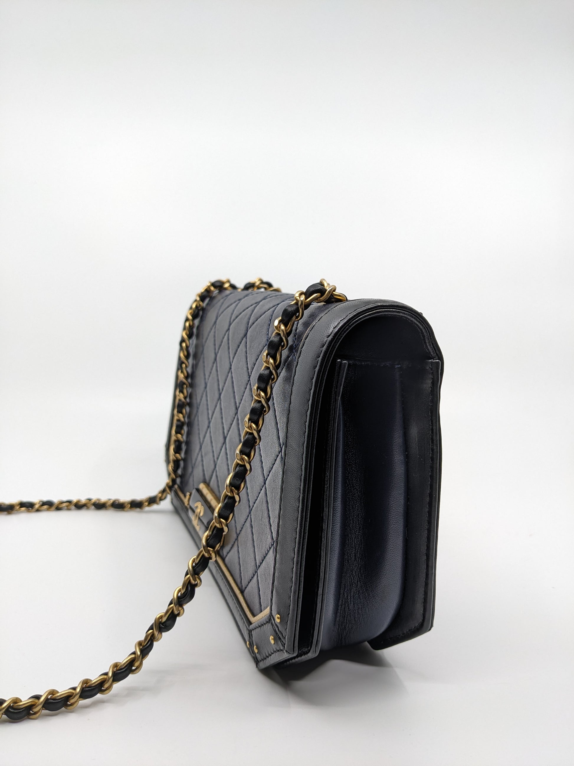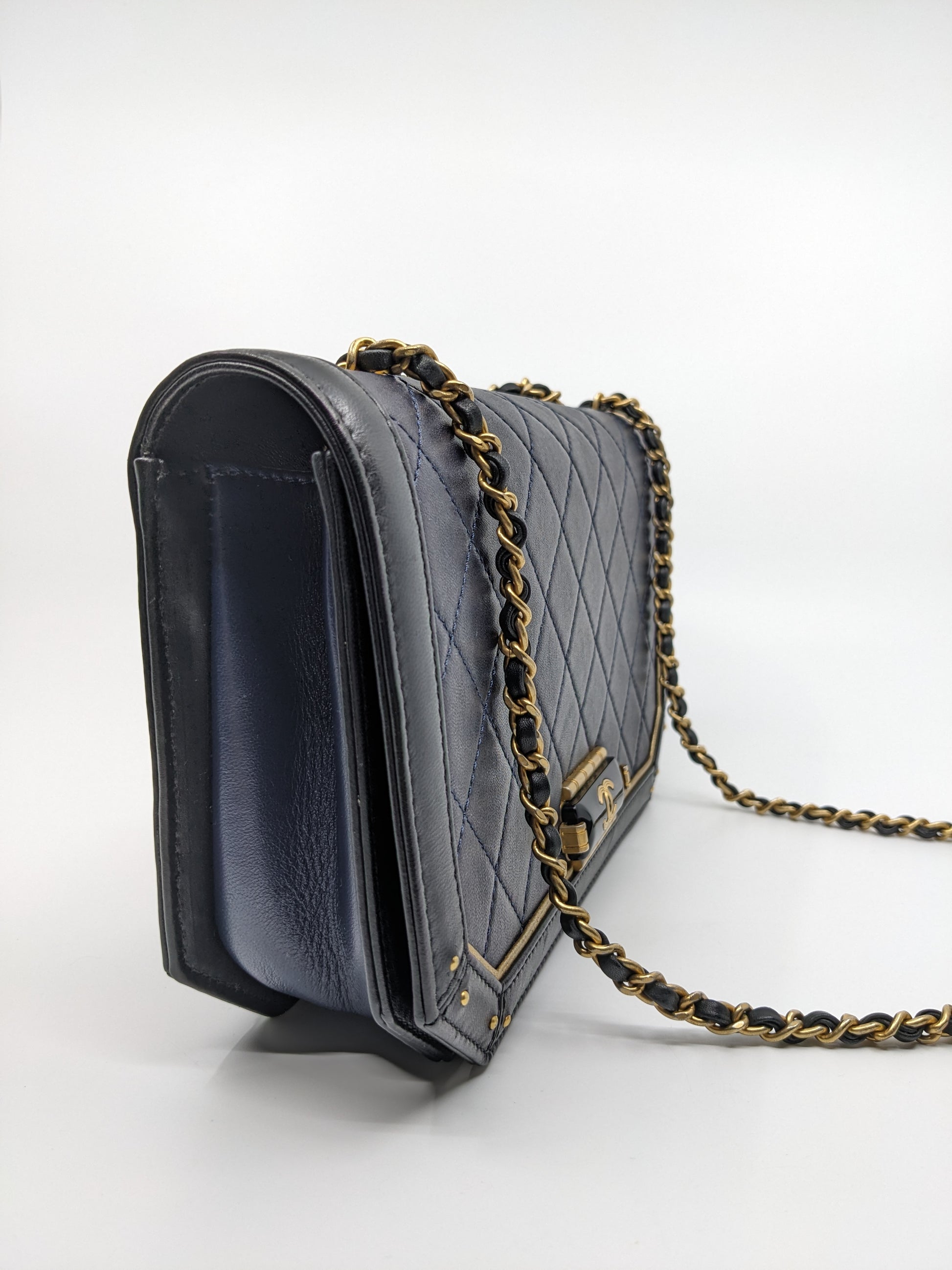 Chanel Octagon CC Clasp Single Flap Navy