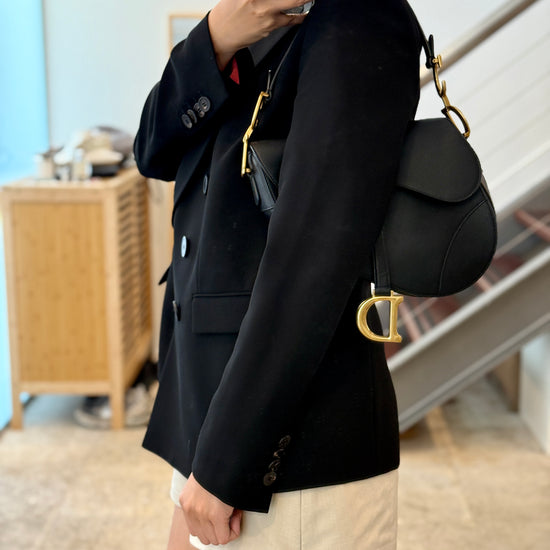 Dior Saddle Black Medium Grained Leather Gold Hardware