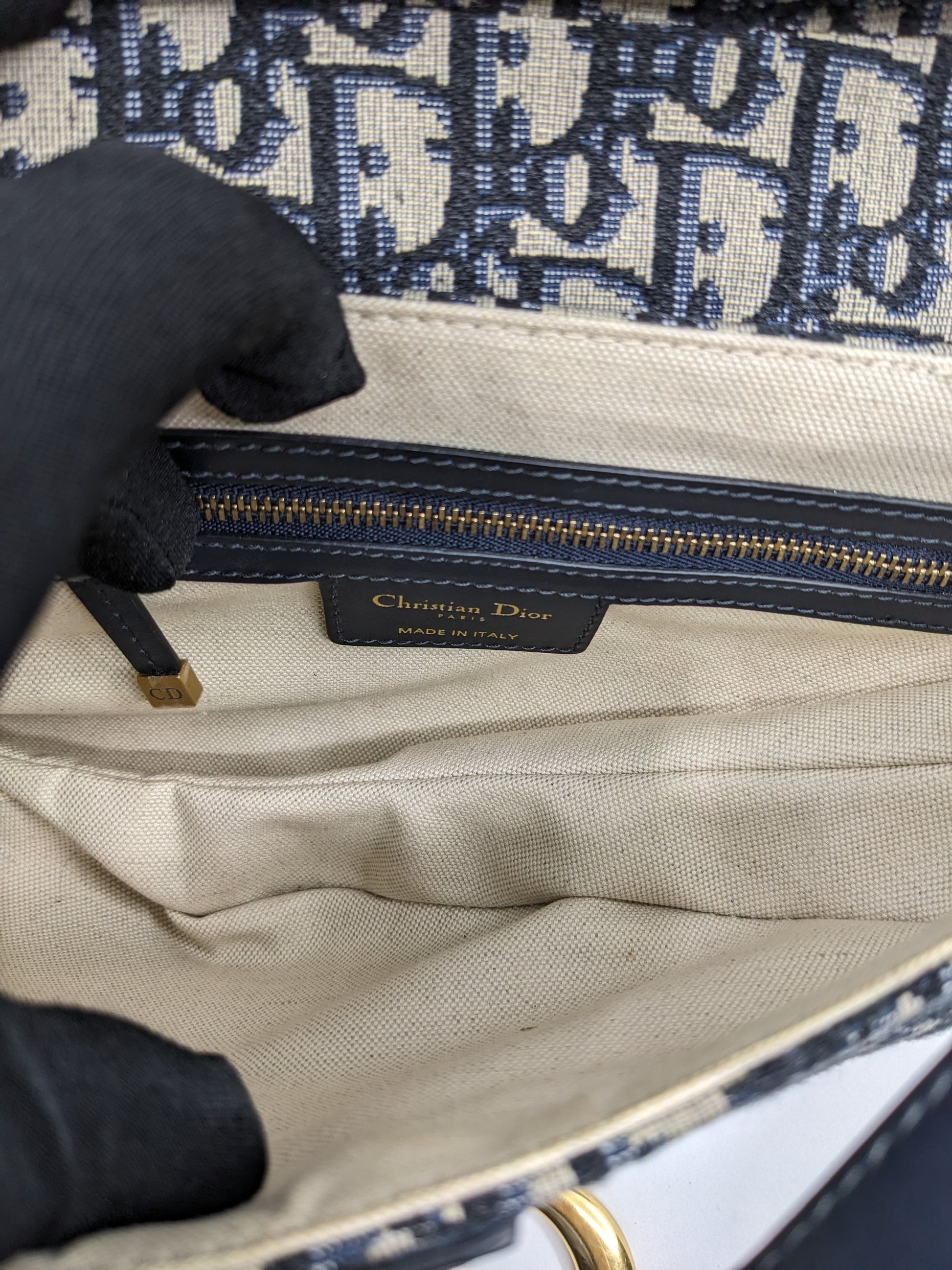 Dior Saddle in Blue Oblique Canvas Medium Size