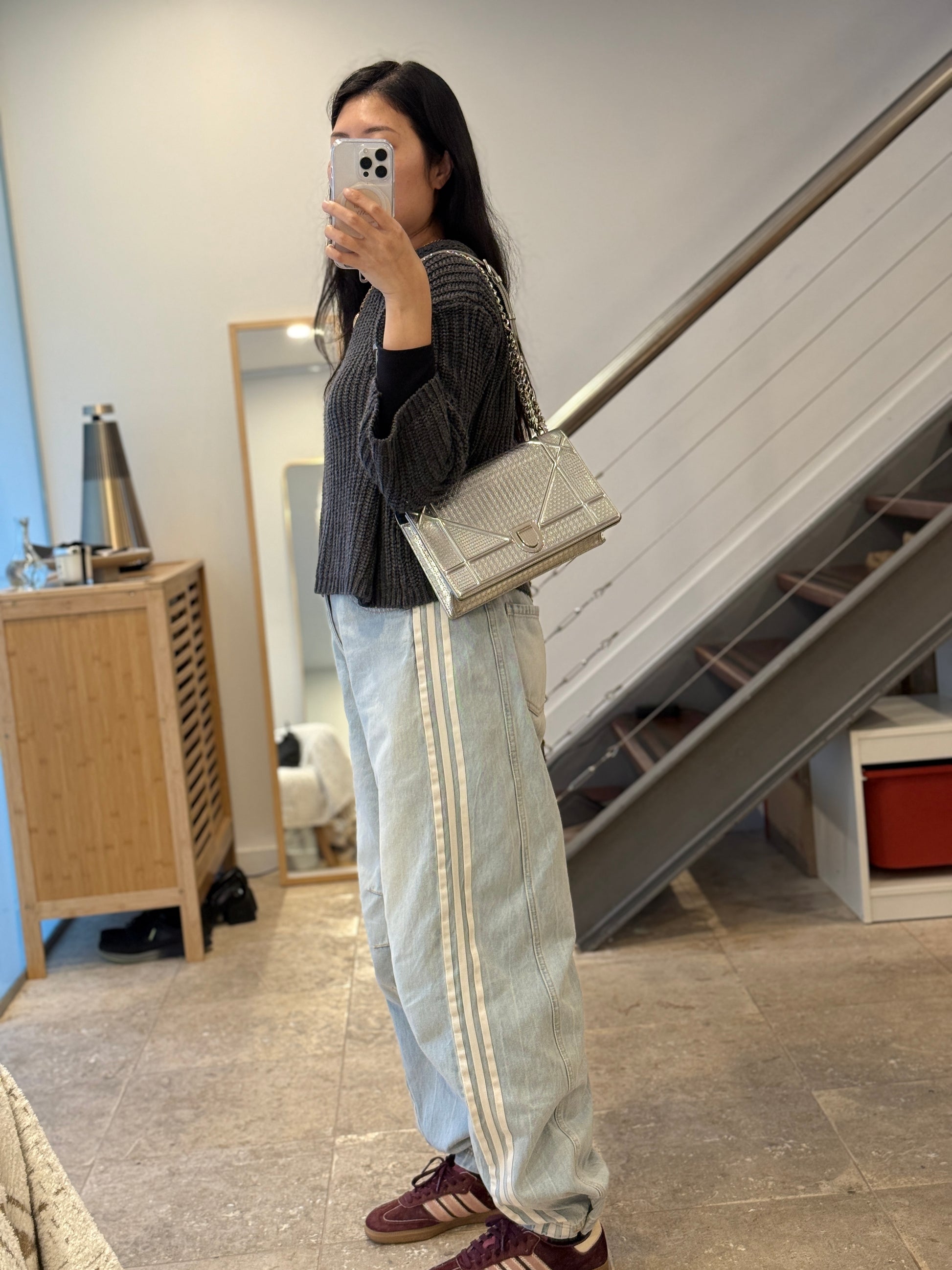 The medium size offers a perfect balance of elegance and functionality, with a flap closure, adjustable chain strap (can be worn crossbody or on the shoulder), and an interior fitted with a zip pocket and compartments for daily essentials. A bold yet timeless piece that reflects Dior’s modern edge and Parisian sophistication.
