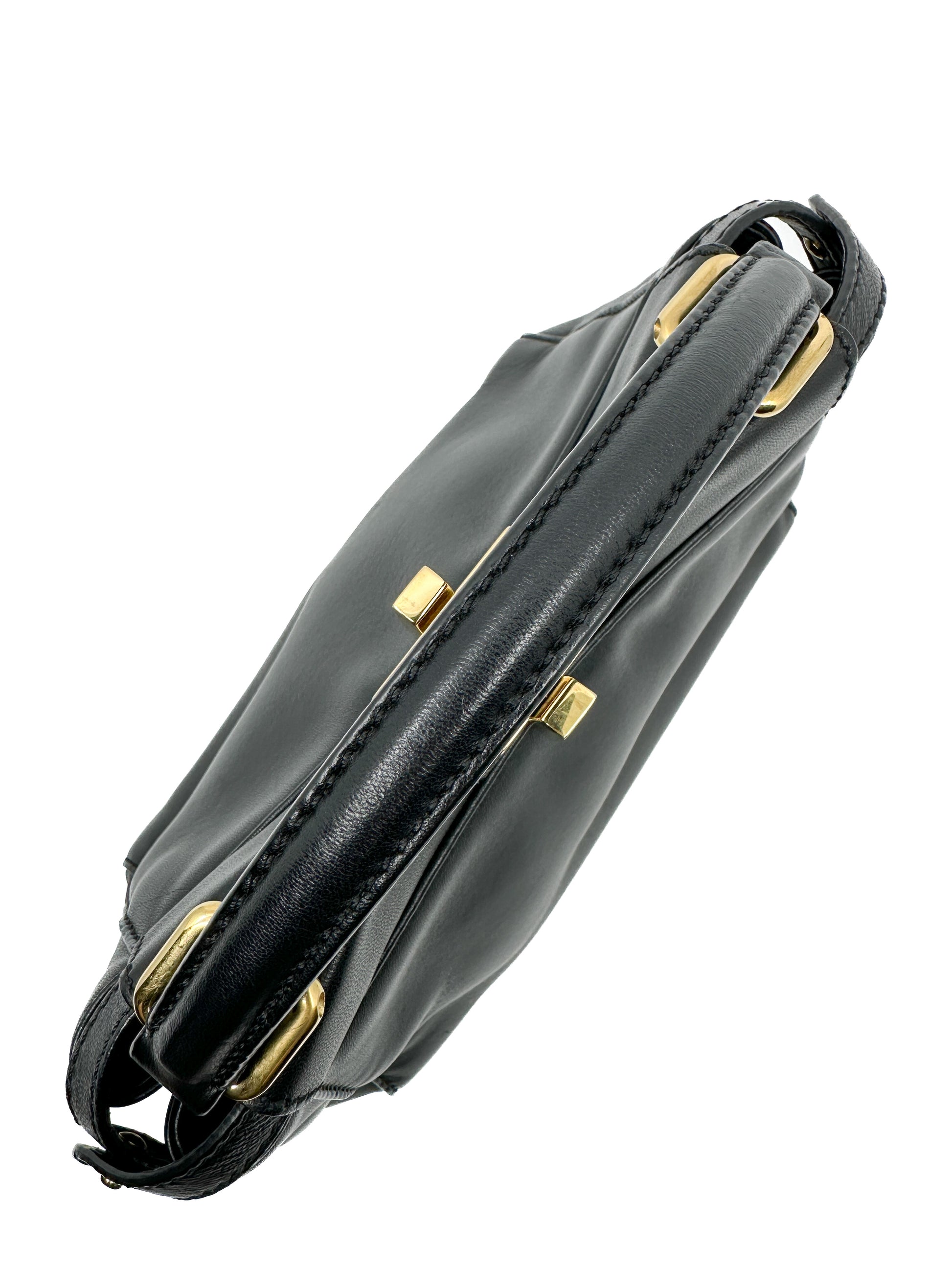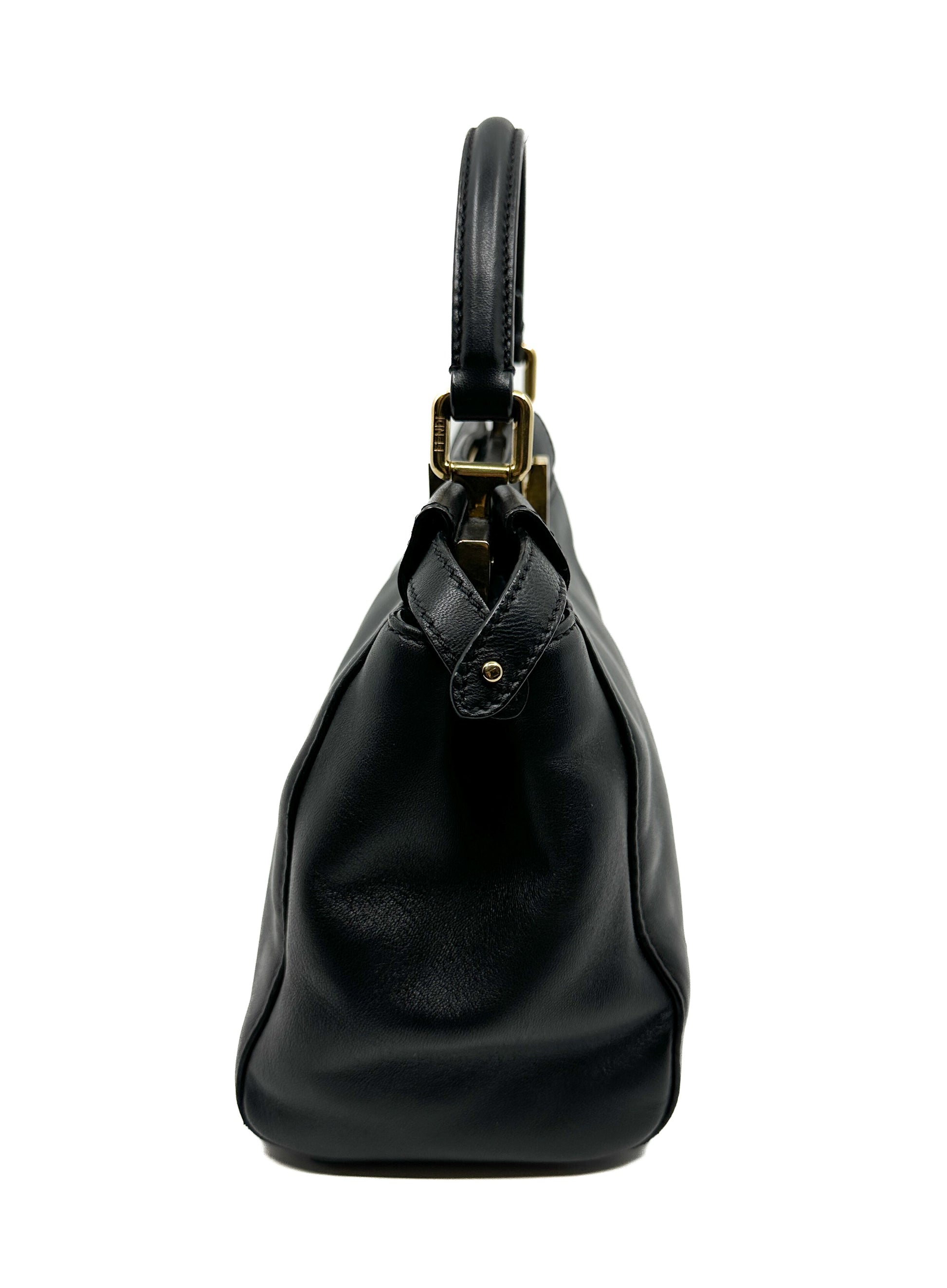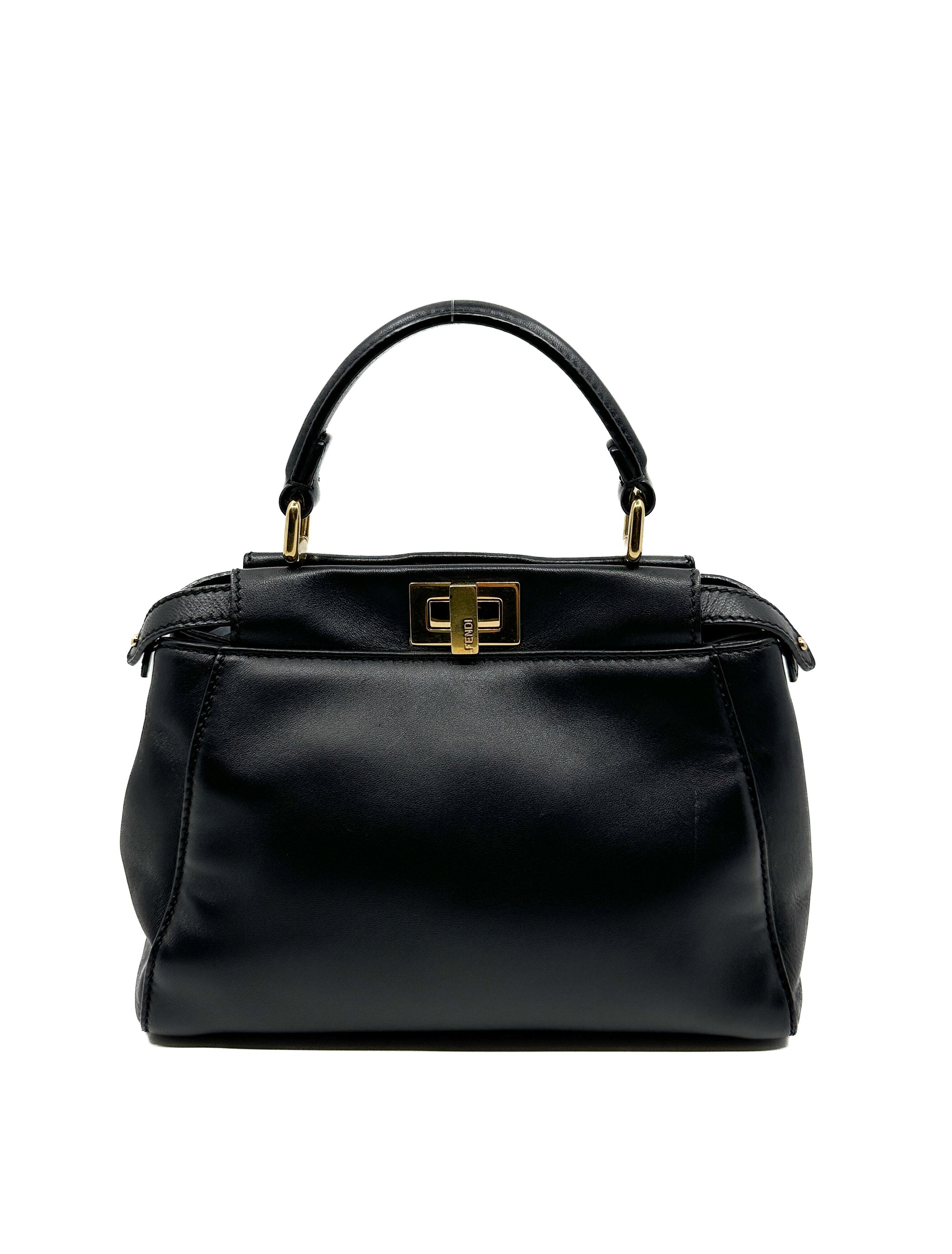 Iconic small Peekaboo bag made of black leather and embellished with the classic twist lock on both sides.