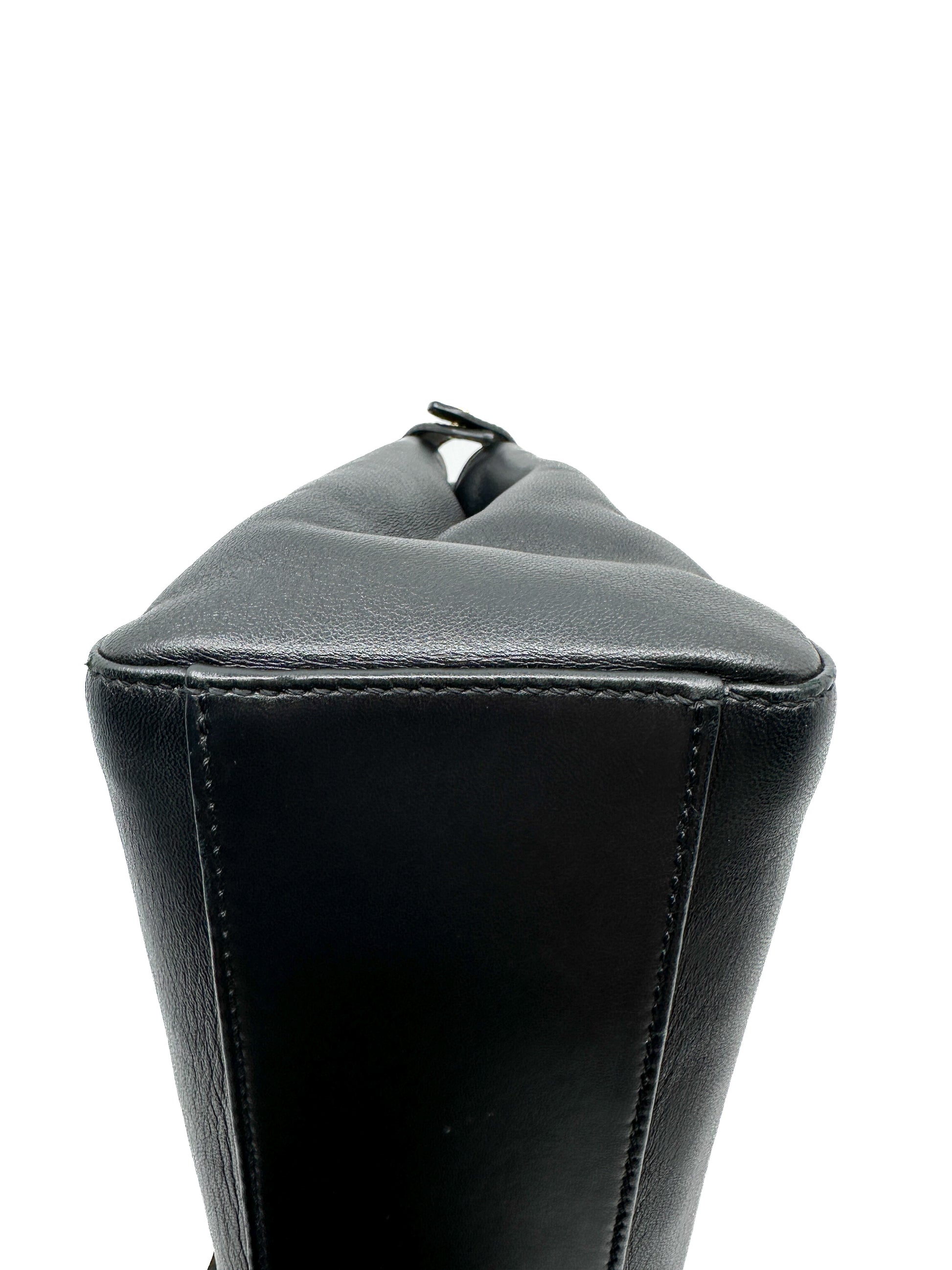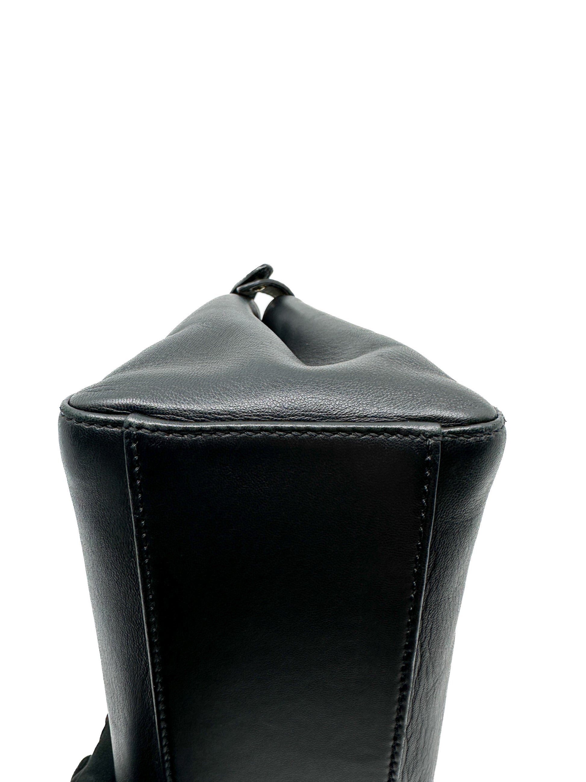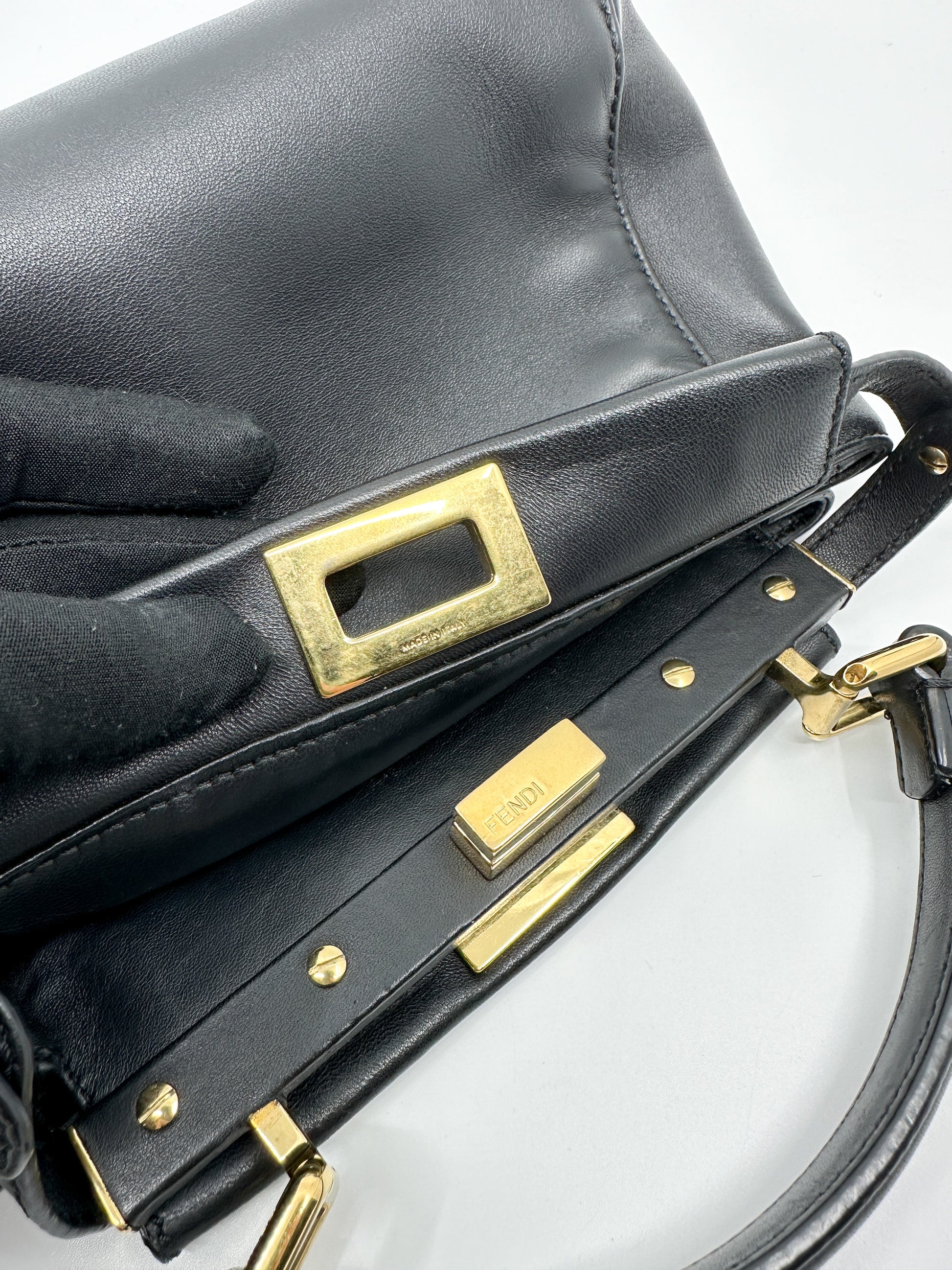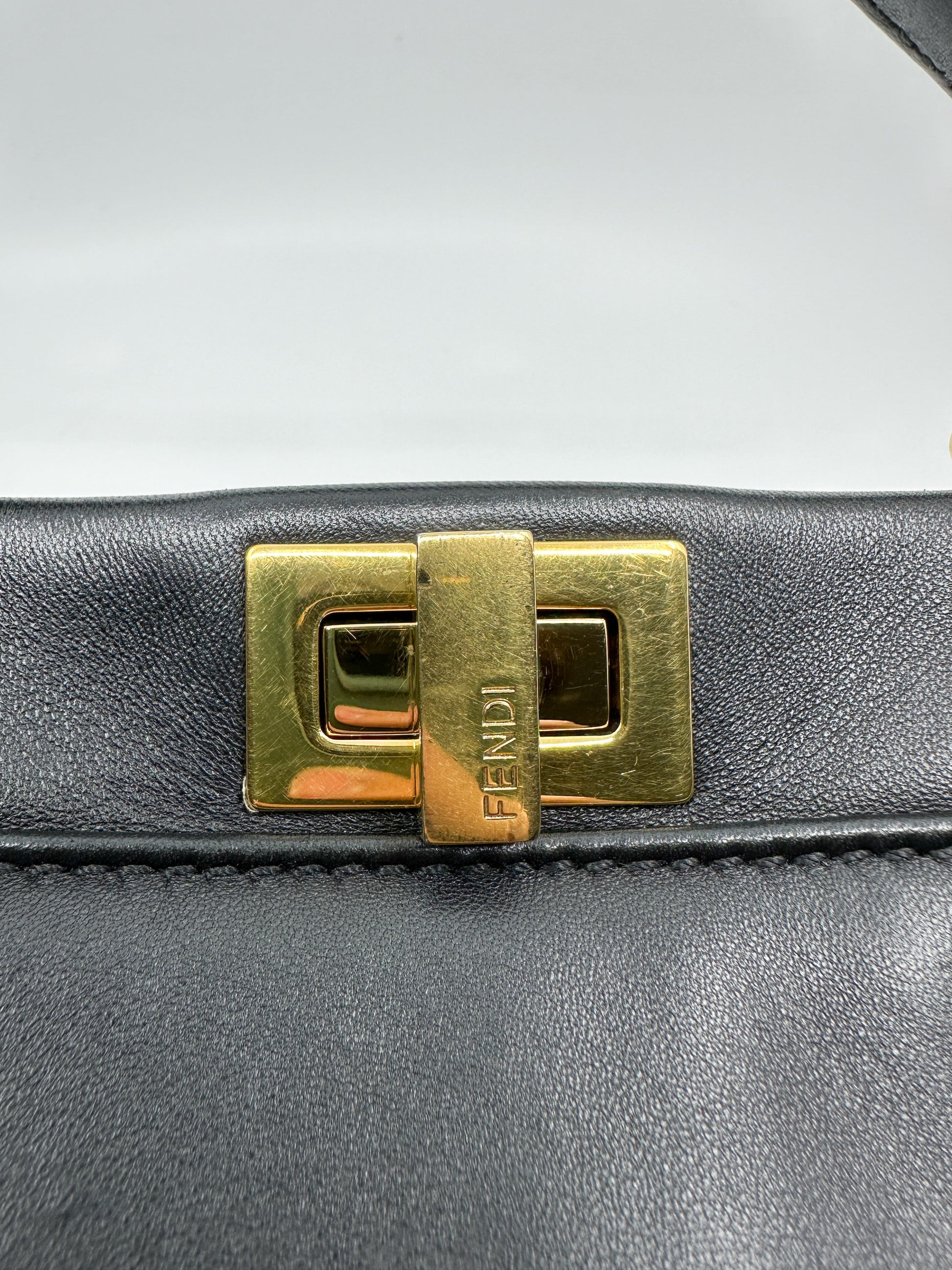 Iconic small Peekaboo bag made of black leather and embellished with the classic twist lock on both sides.