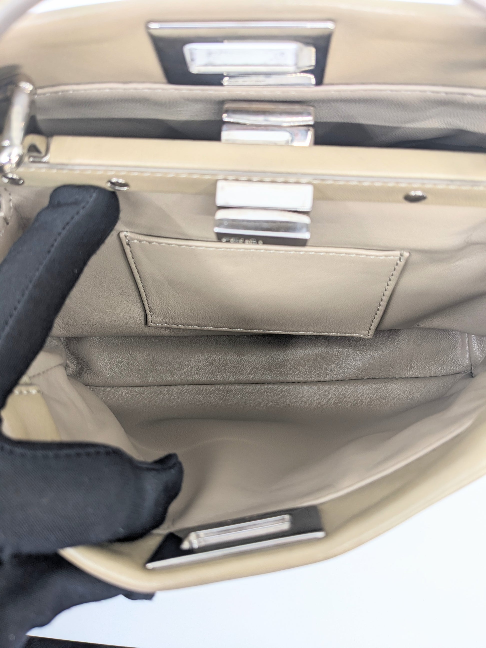 Condition: Excellent. Hairline scratches on hardware. Clean inside and outside. No scuffs or stains.