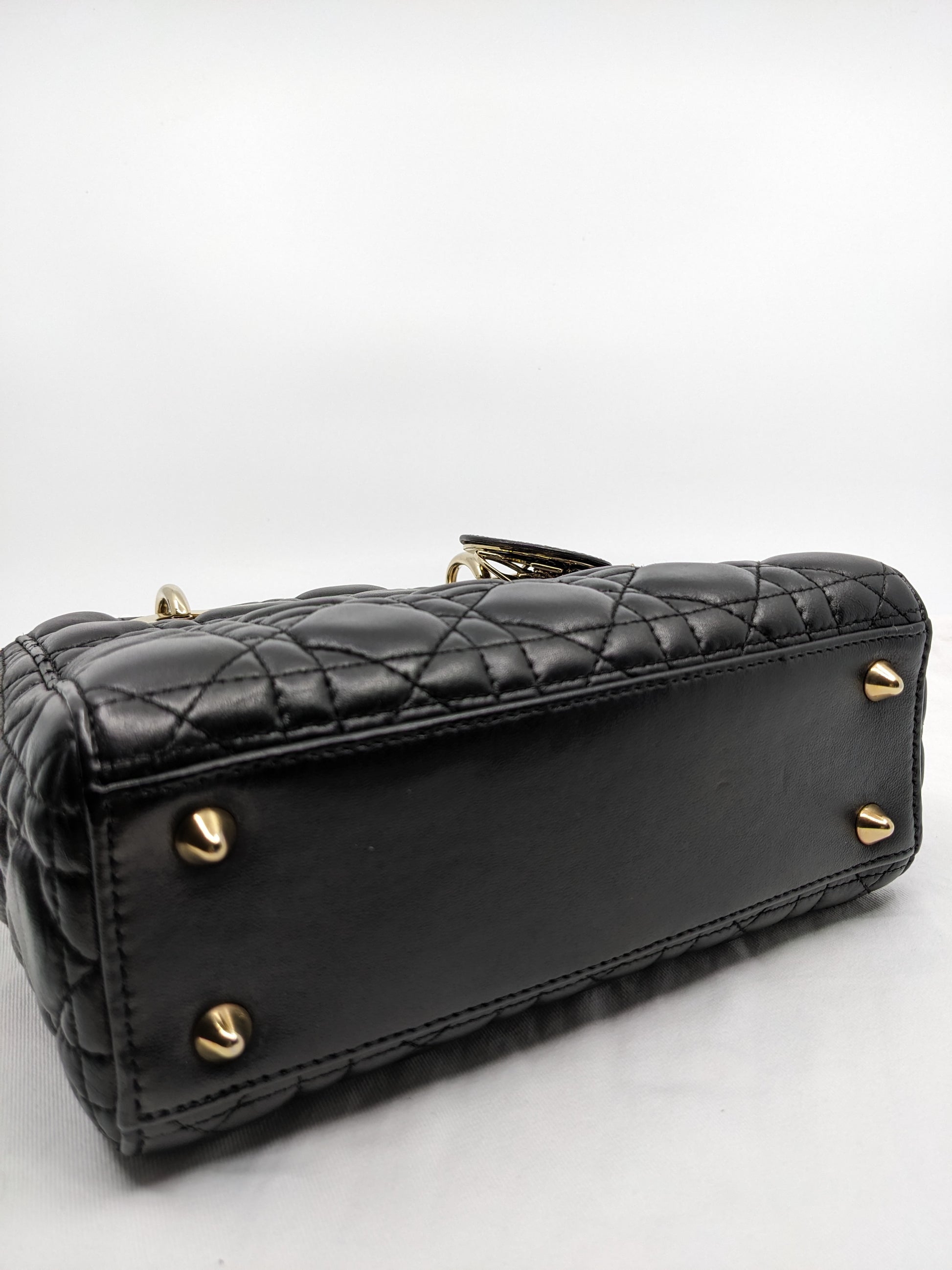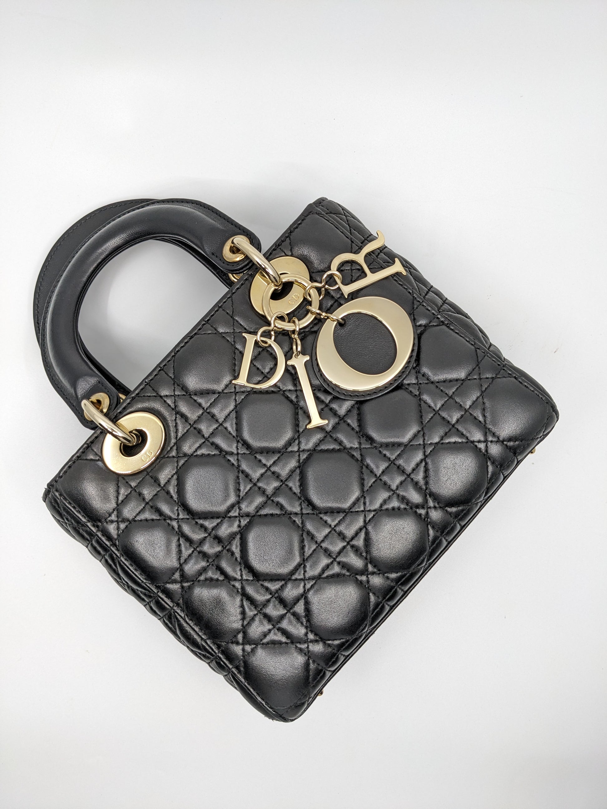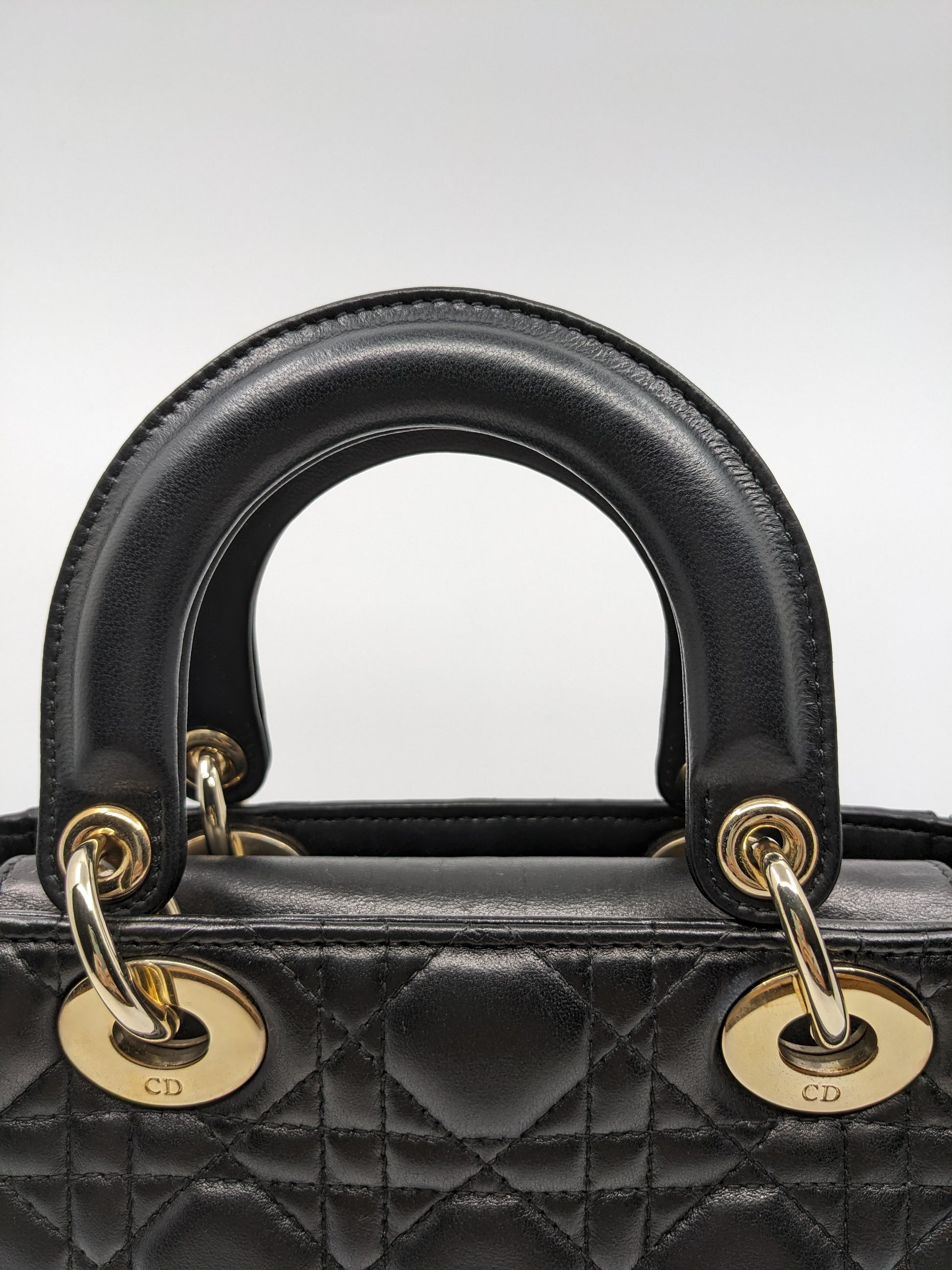 The Lady Dior in a stunning gold hardware- a true statement piece for any fashion lover. This bag combines timeless elegance with modern flair, showcasing the iconic Cannage quilted pattern that Lady Dior is renowned for. Its compact size is perfect for day-to-night versatility, while the refined design and subtle matte accents add a contemporary touch. Finished with the signature "D.I.O.R." charm, this exquisite mini bag is a must-have for those seeking luxury and sophistication.
