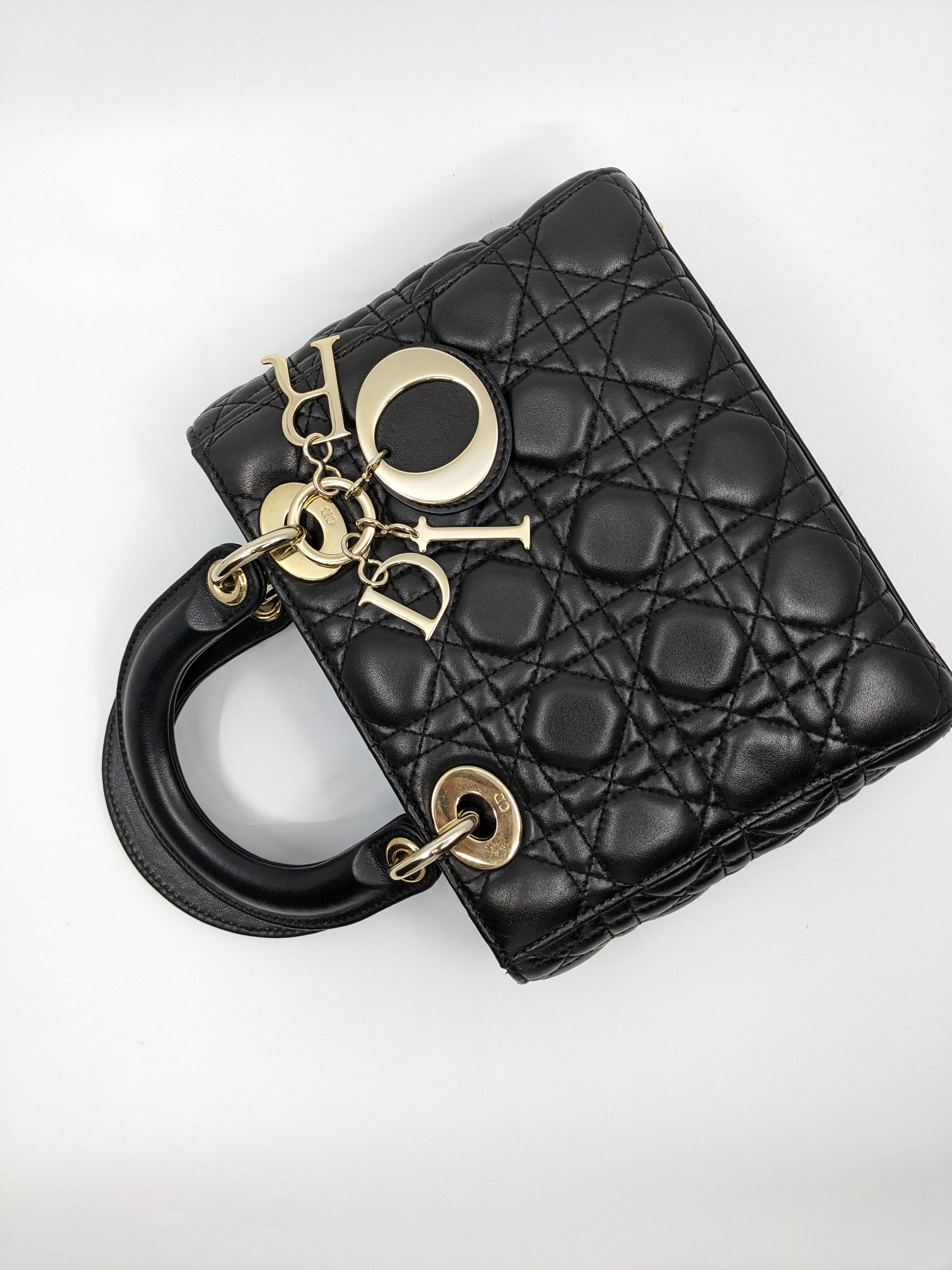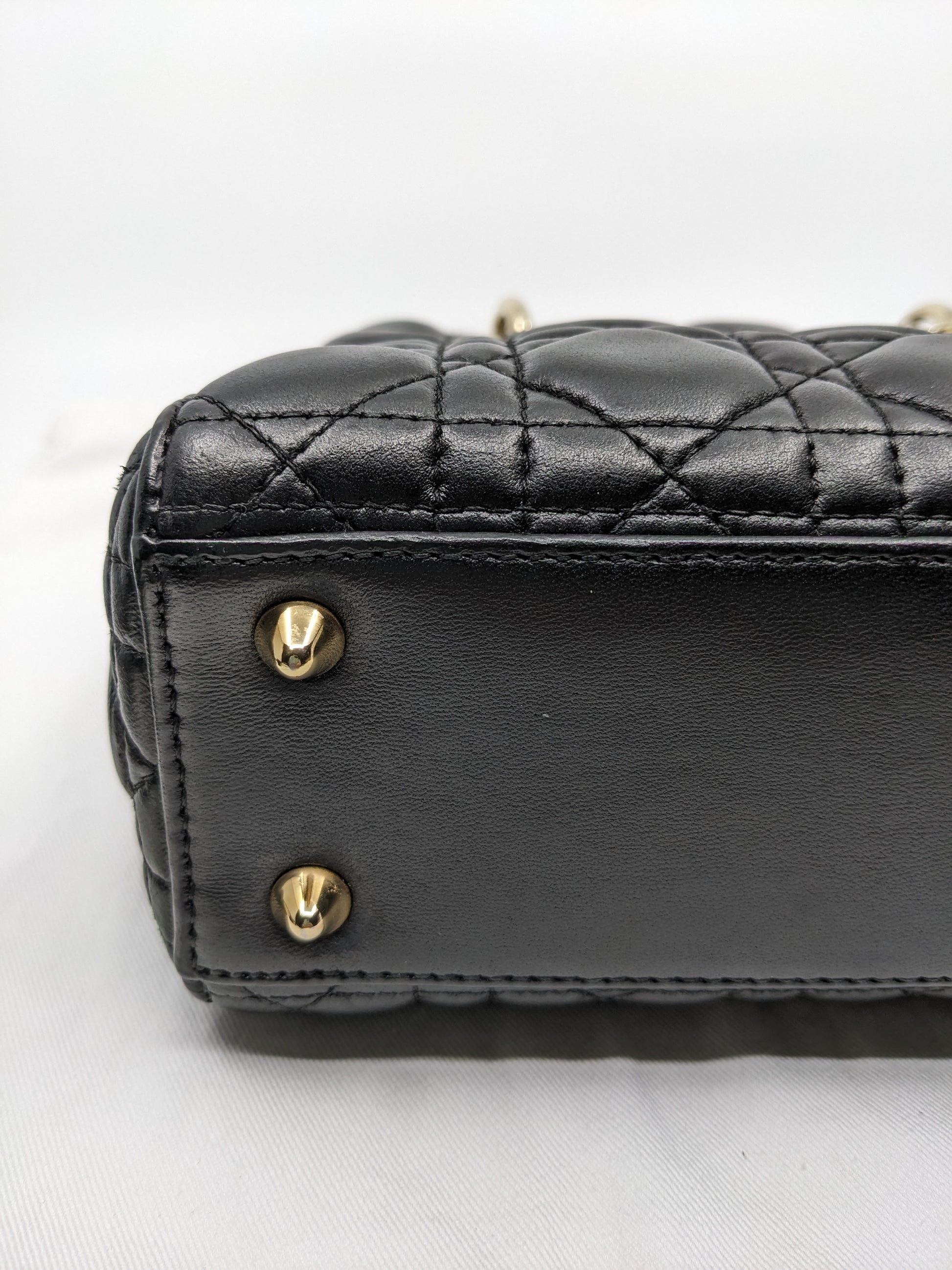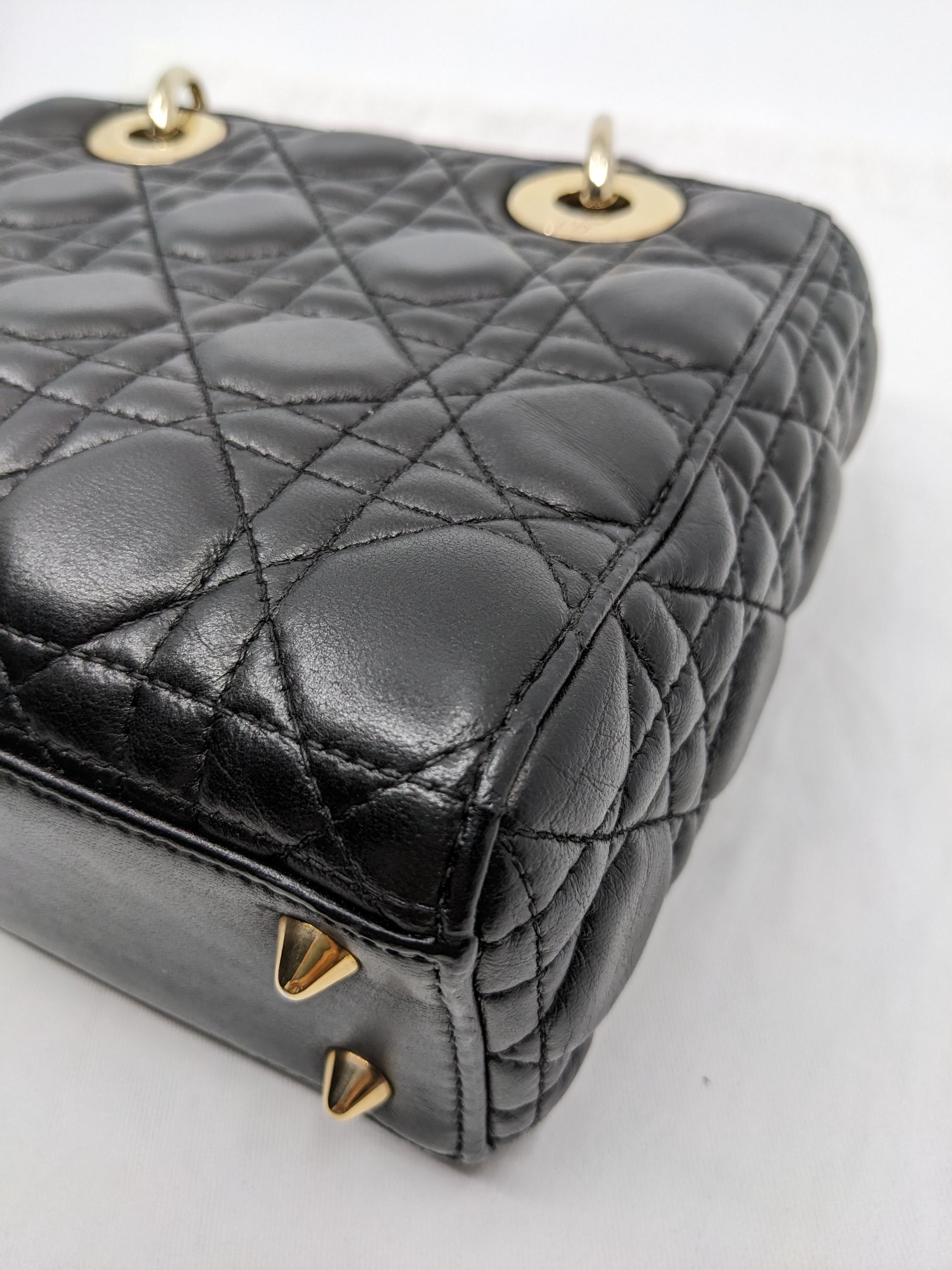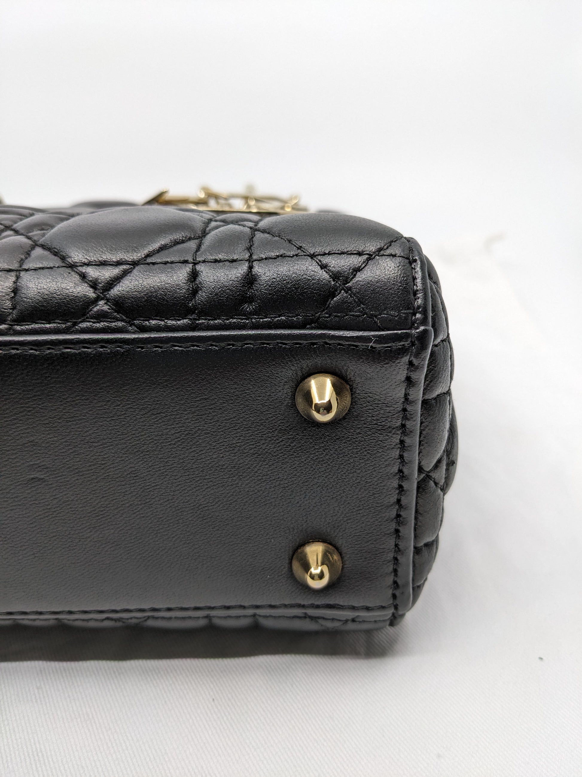 The Lady Dior in a stunning gold hardware- a true statement piece for any fashion lover. This bag combines timeless elegance with modern flair, showcasing the iconic Cannage quilted pattern that Lady Dior is renowned for. Its compact size is perfect for day-to-night versatility, while the refined design and subtle matte accents add a contemporary touch. Finished with the signature "D.I.O.R." charm, this exquisite mini bag is a must-have for those seeking luxury and sophistication.
