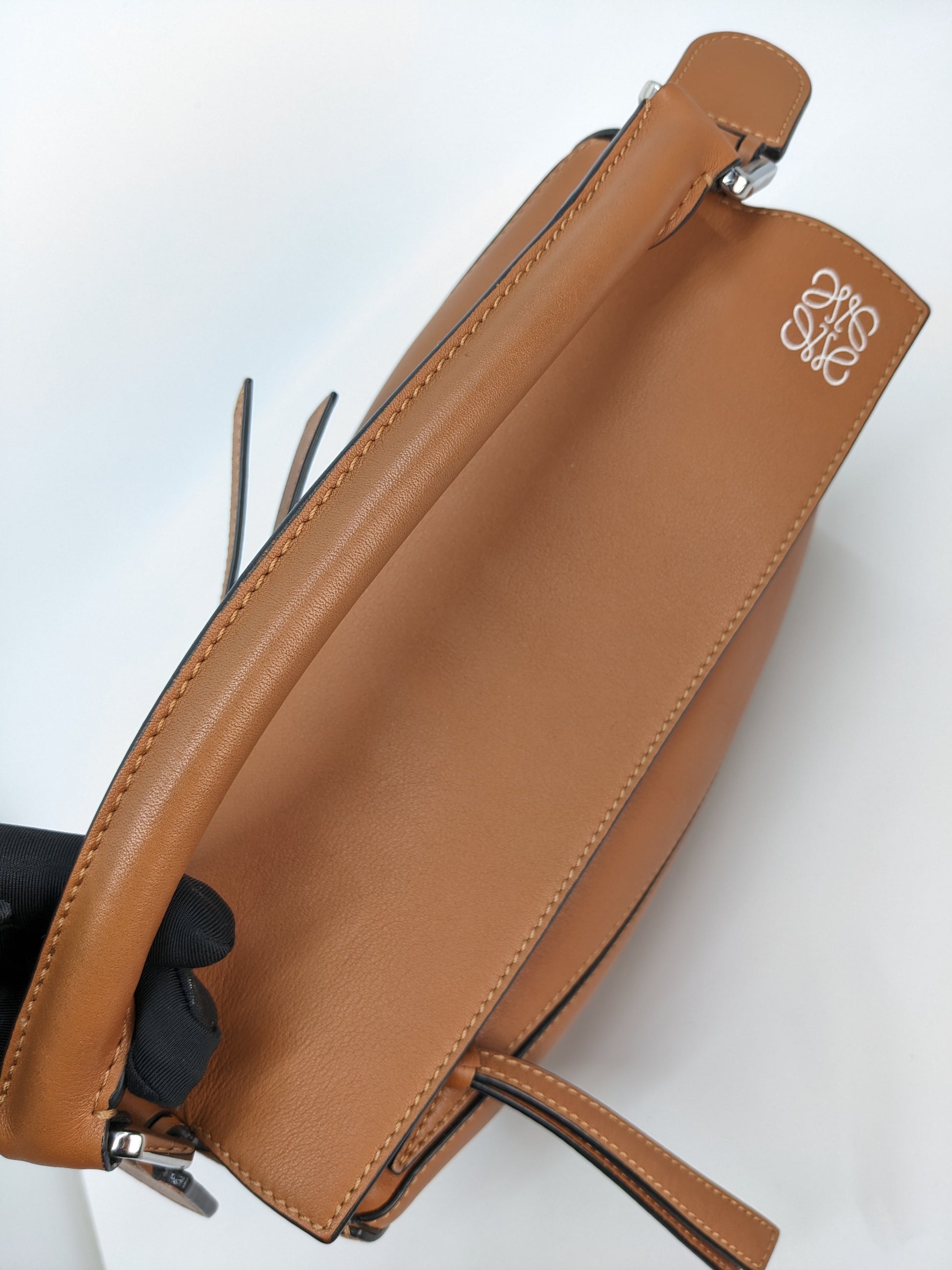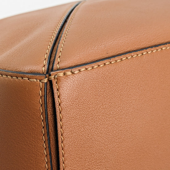 Crafted from luxurious calfskin, its signature geometric paneling creates a distinctive cuboid shape that’s both sculptural and highly functional. The small size offers a spacious yet compact interior, ideal for daily use. With a top handle and adjustable strap, it can be worn four ways—handheld, on the shoulder, crossbody, as a clutch. The warm tan hue showcases Loewe’s heritage of expert Spanish leather craftsmanship.