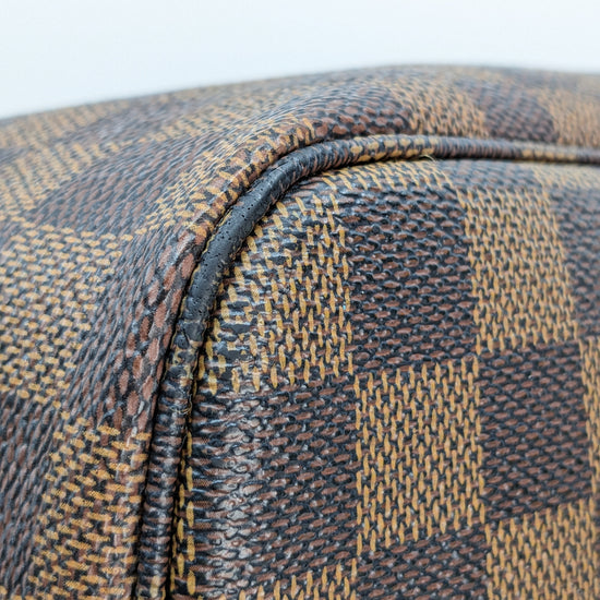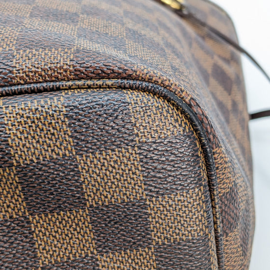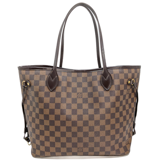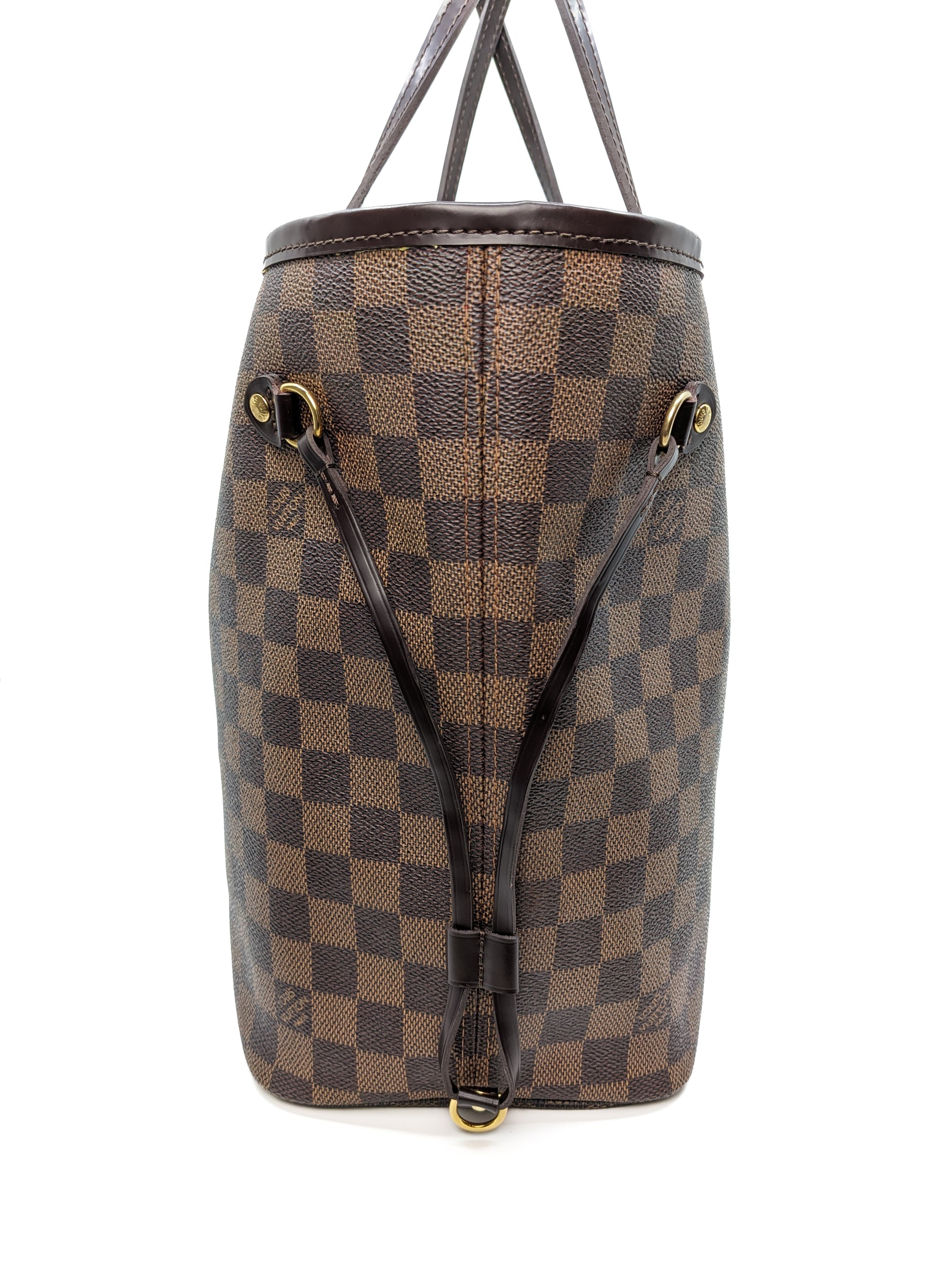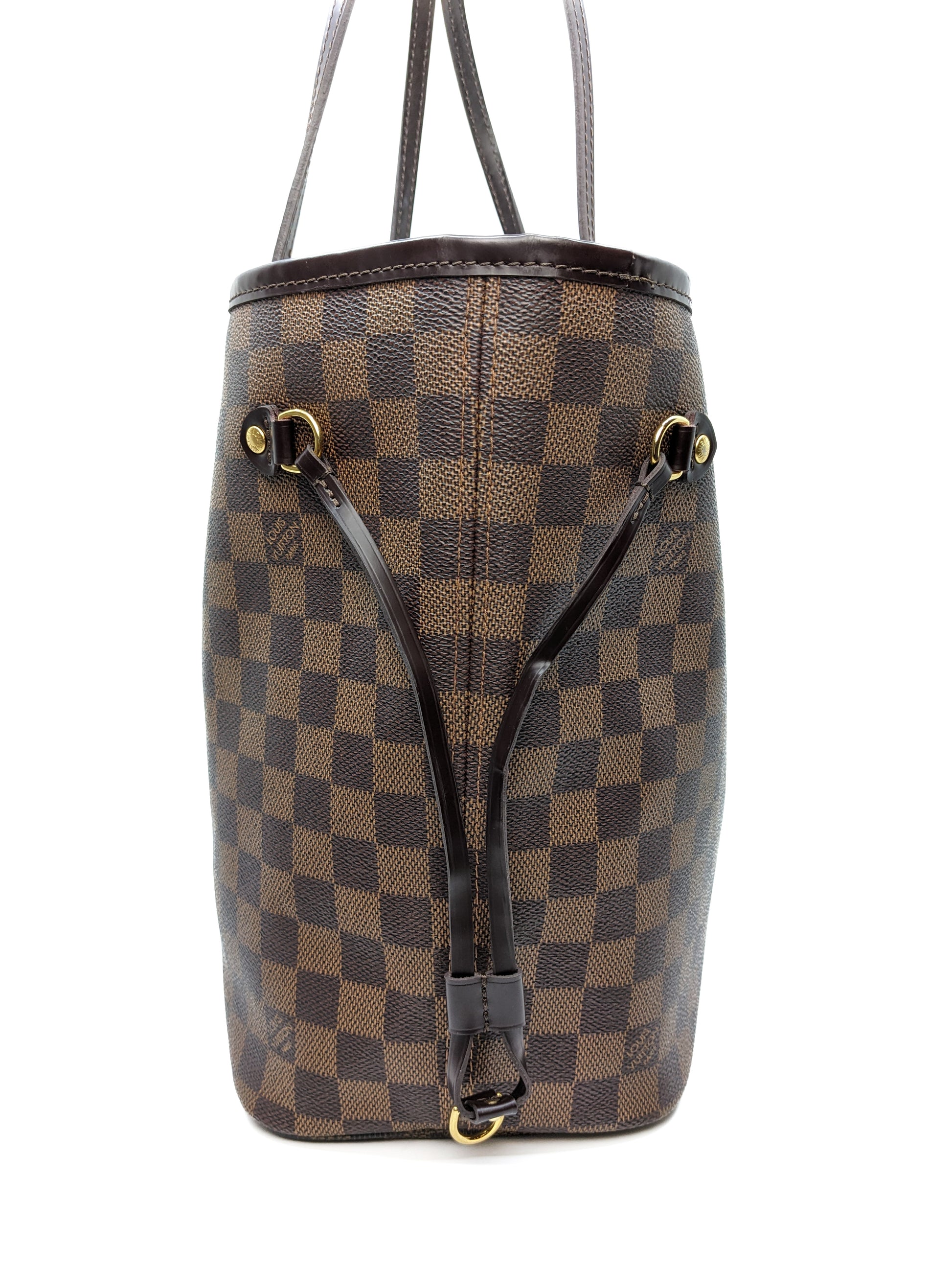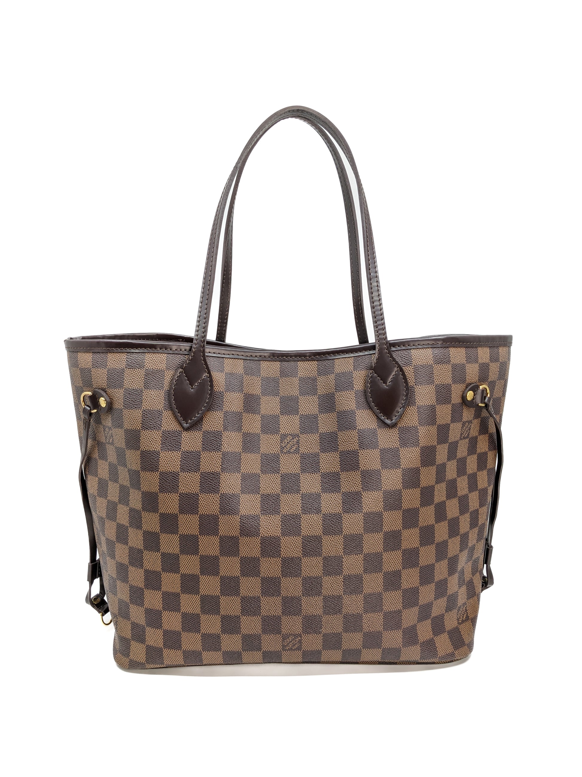 The Louis Vuitton Neverfull MM in Damier Ebene canvas with red lining is a timeless and versatile tote that combines elegance with practicality. Crafted from durable coated canvas with chocolate brown leather trim, it features slim, comfortable shoulder straps and gold-tone hardware.