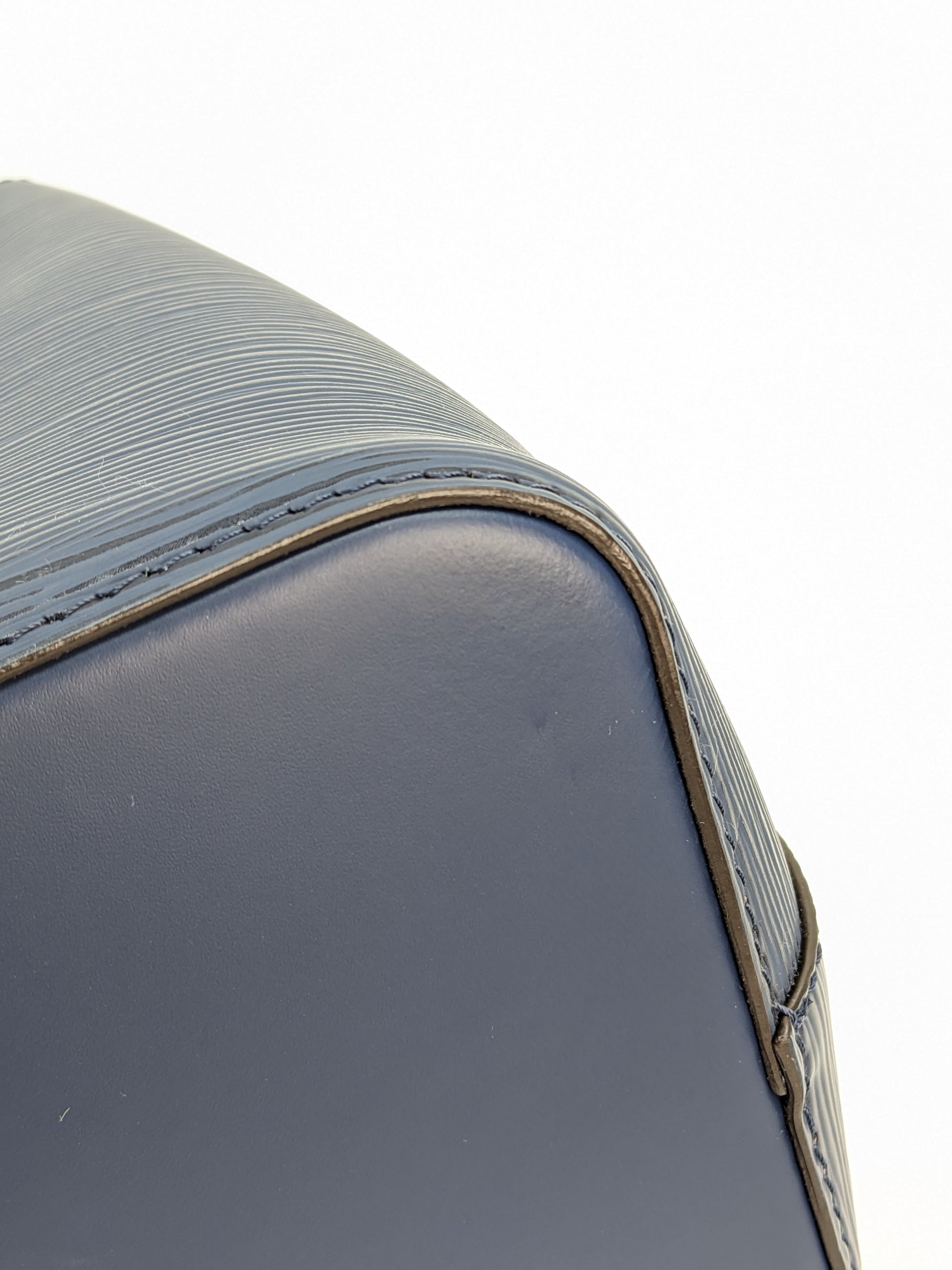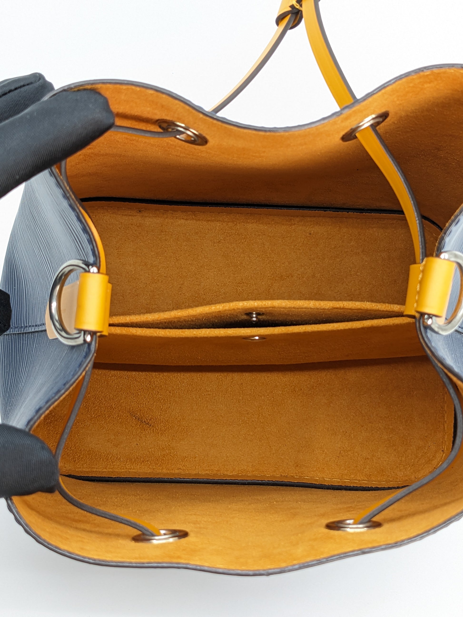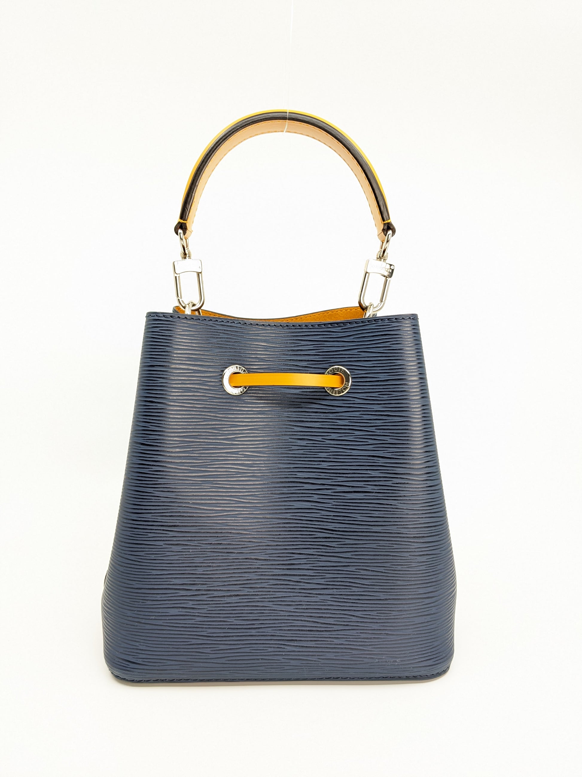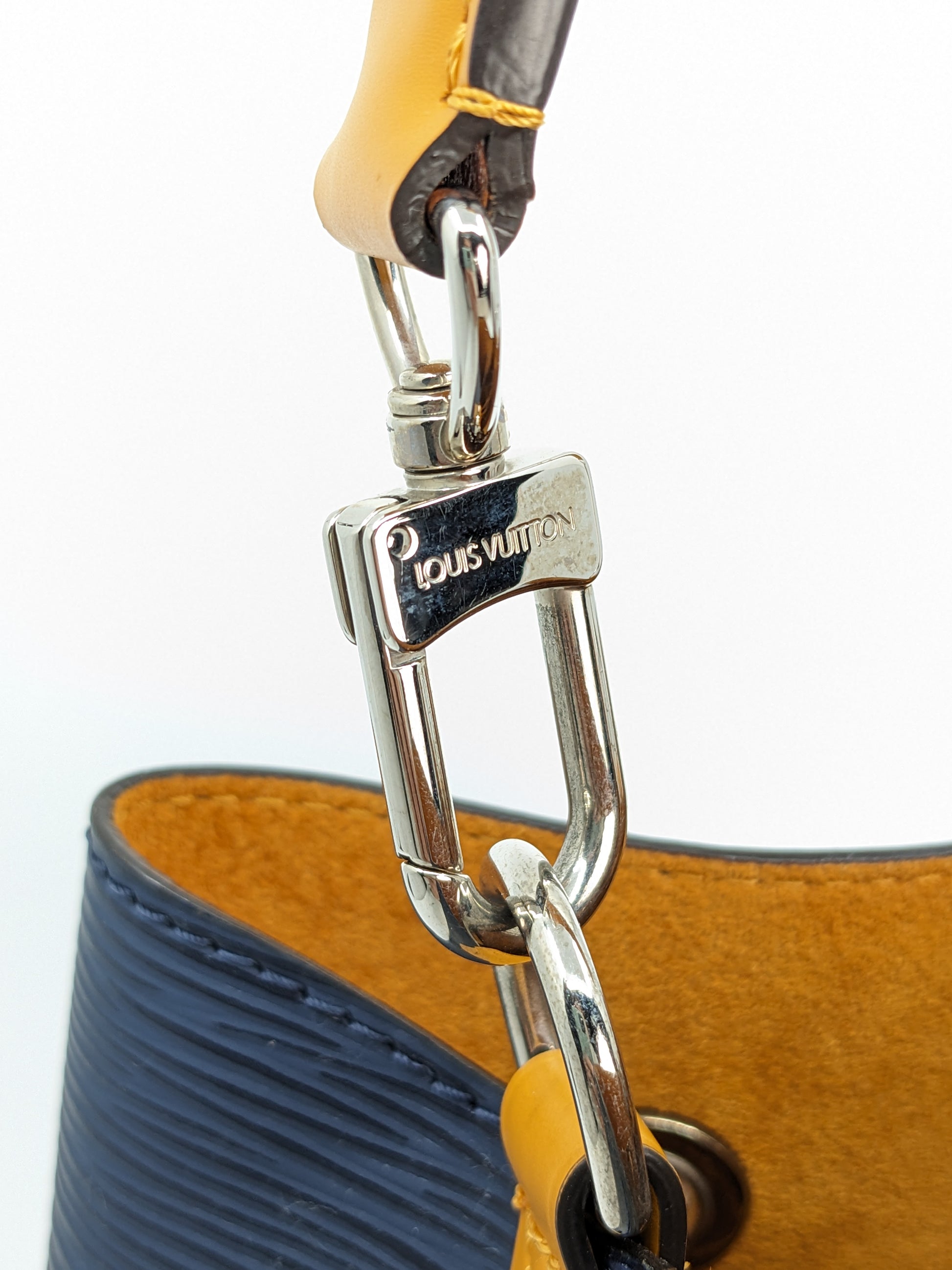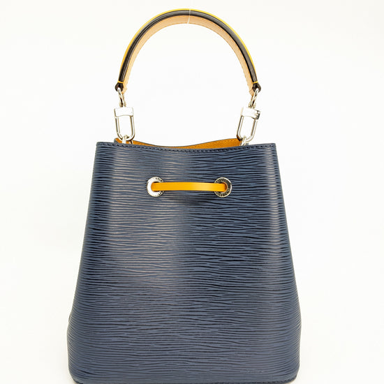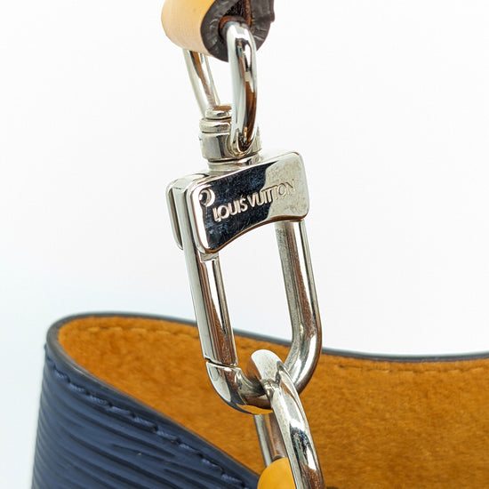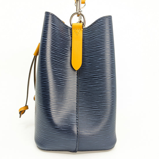 The Louis Vuitton Noéneo PM in Blue Epi leather is a modern reinterpretation of the classic Noé bucket bag, originally designed in 1932 to carry champagne bottles.
