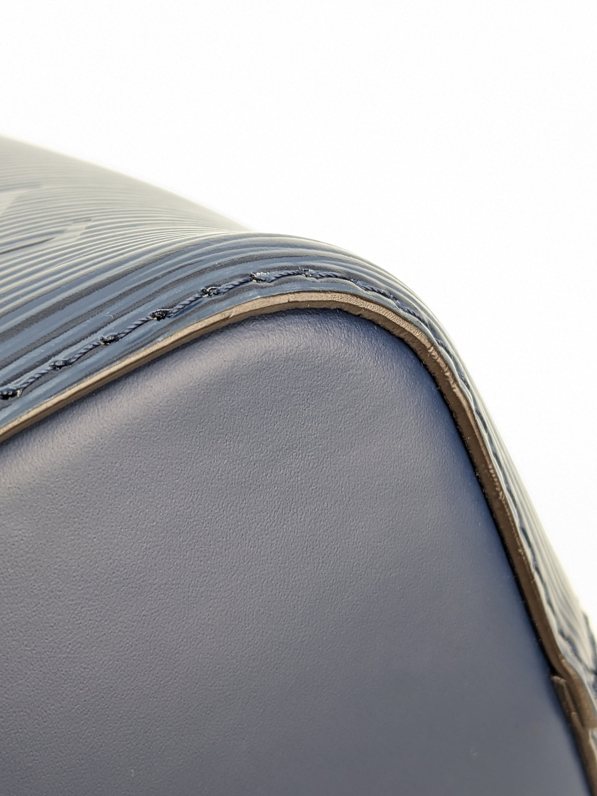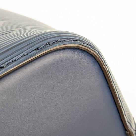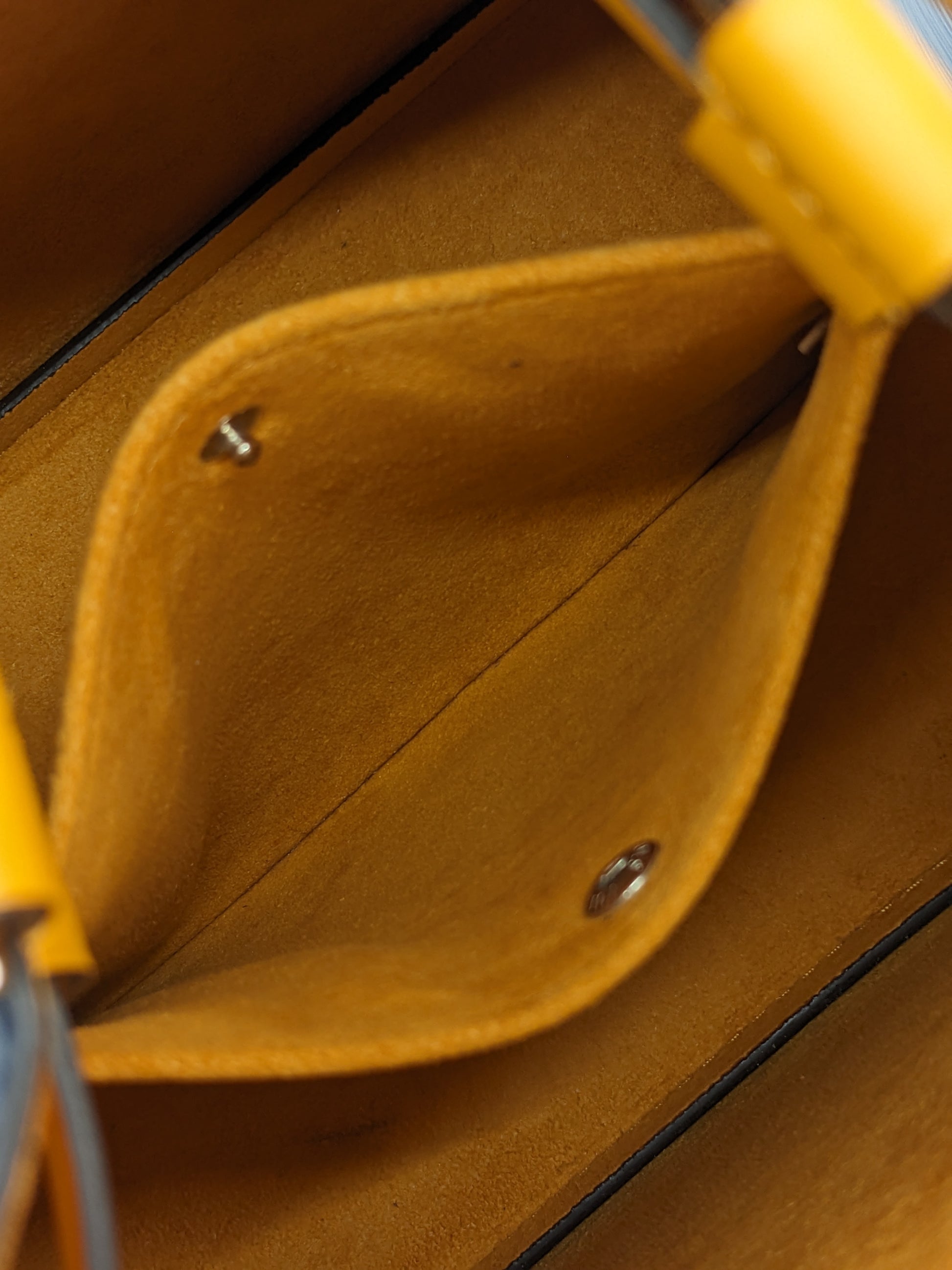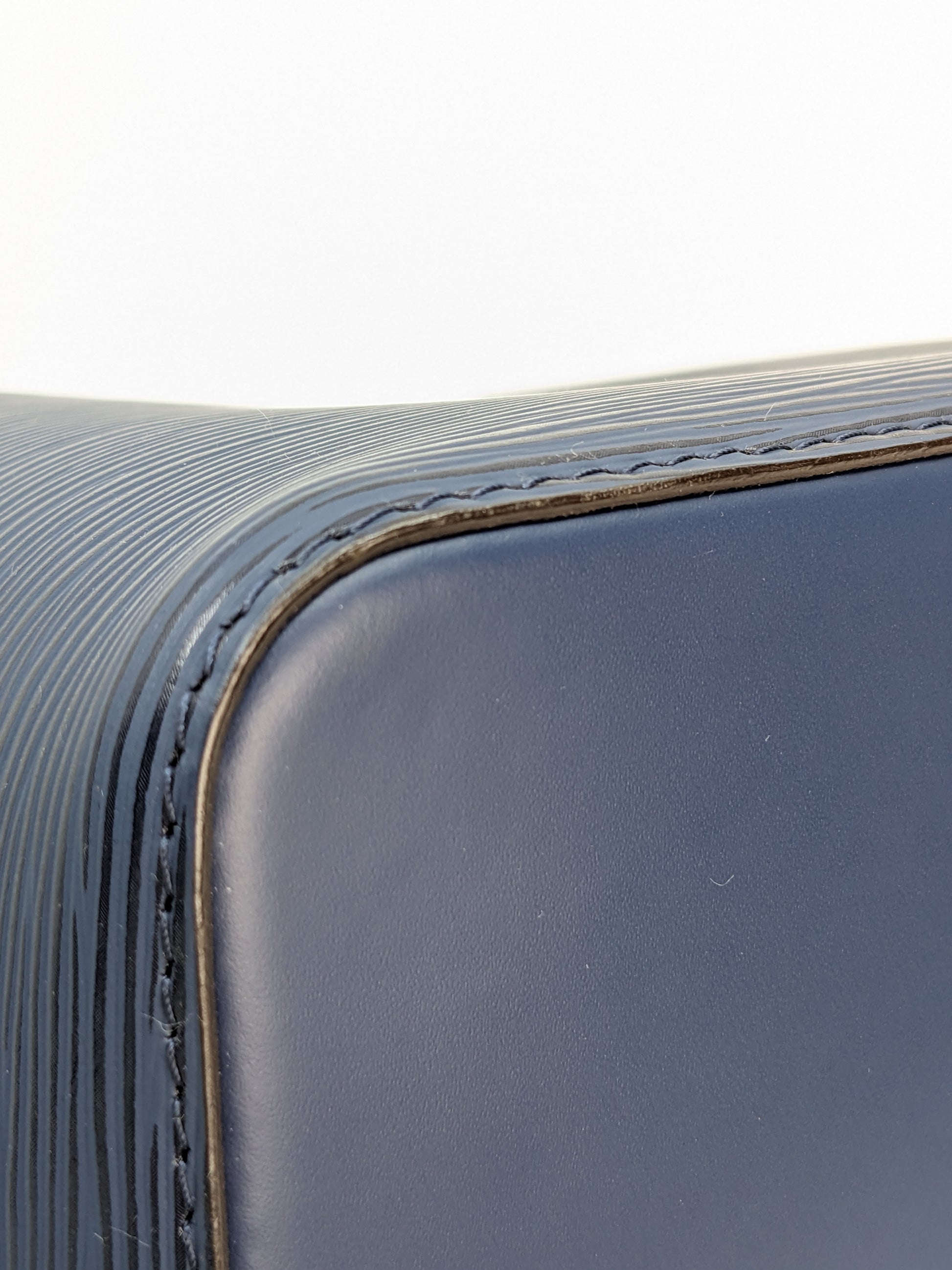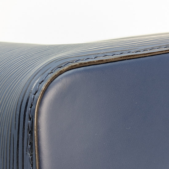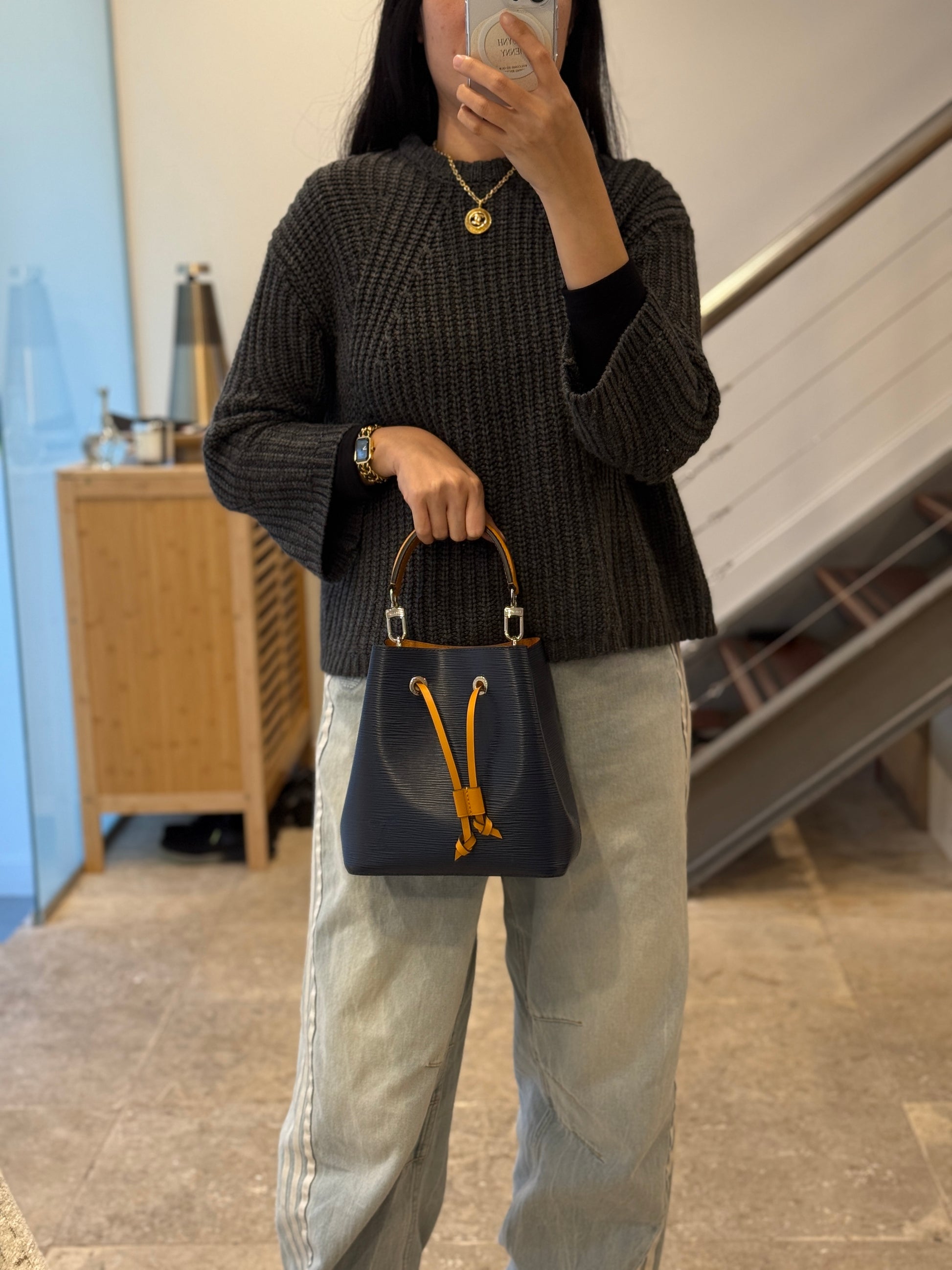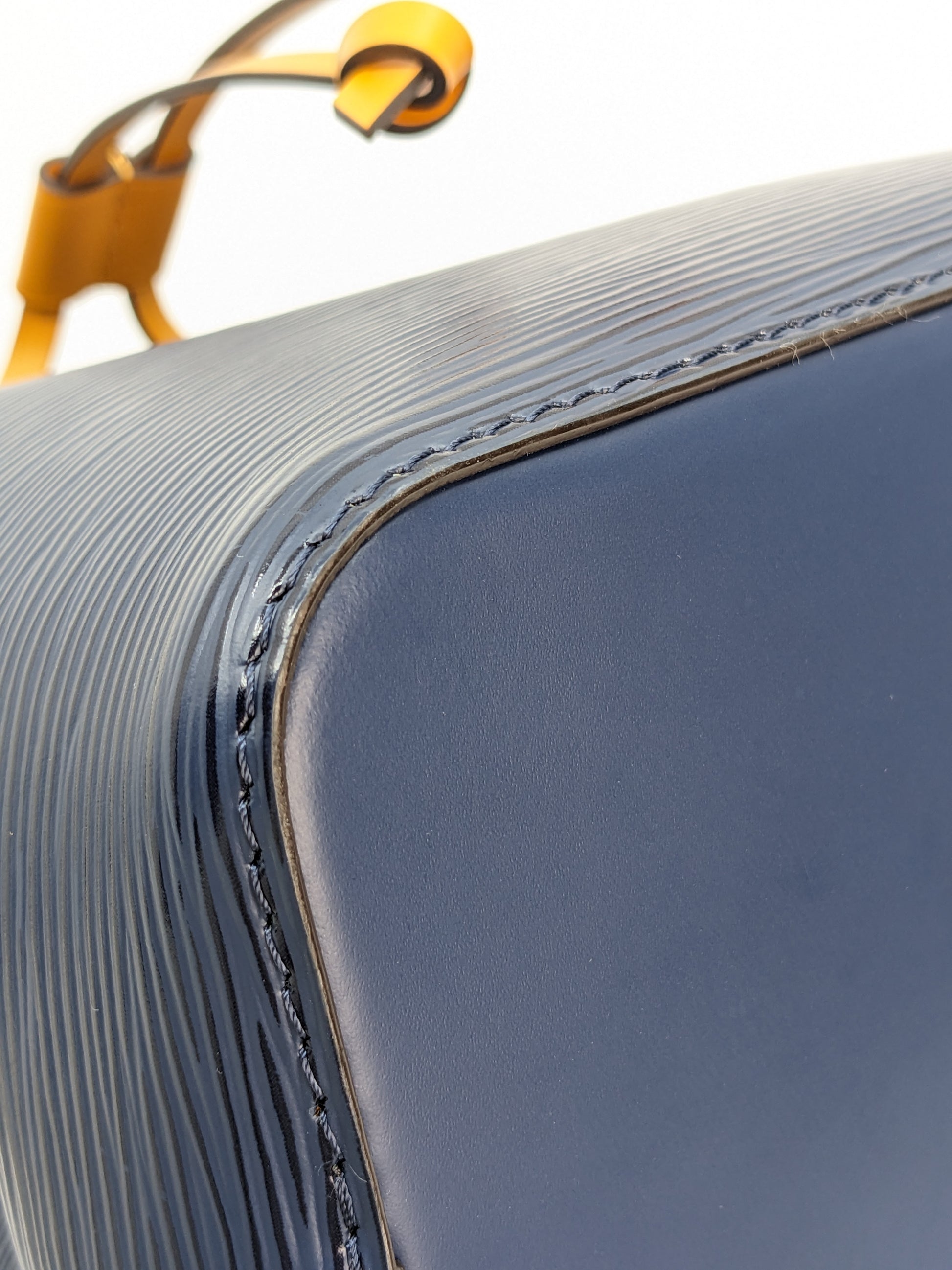 The Louis Vuitton Noéneo PM in Blue Epi leather is a modern reinterpretation of the classic Noé bucket bag, originally designed in 1932 to carry champagne bottles.