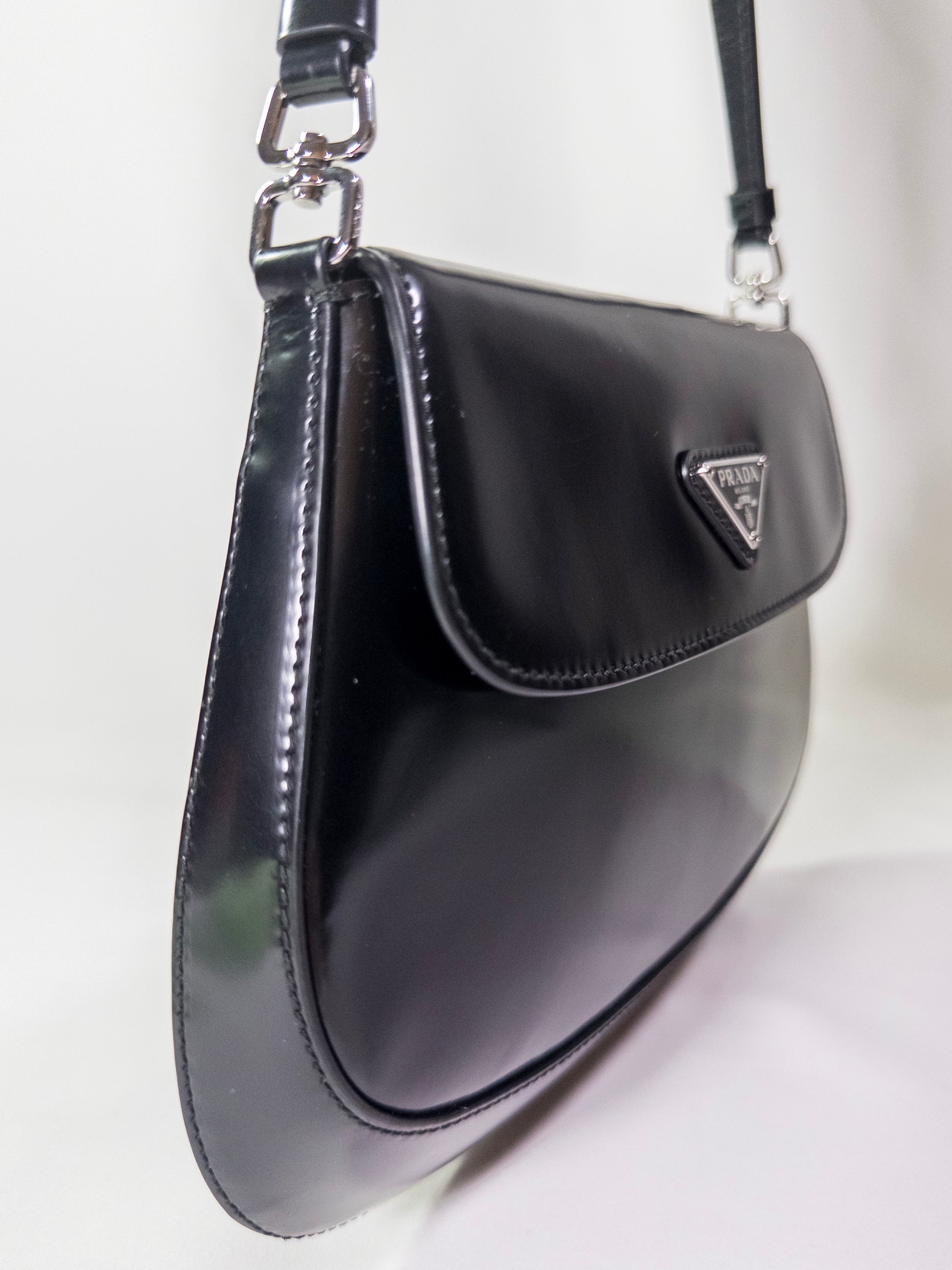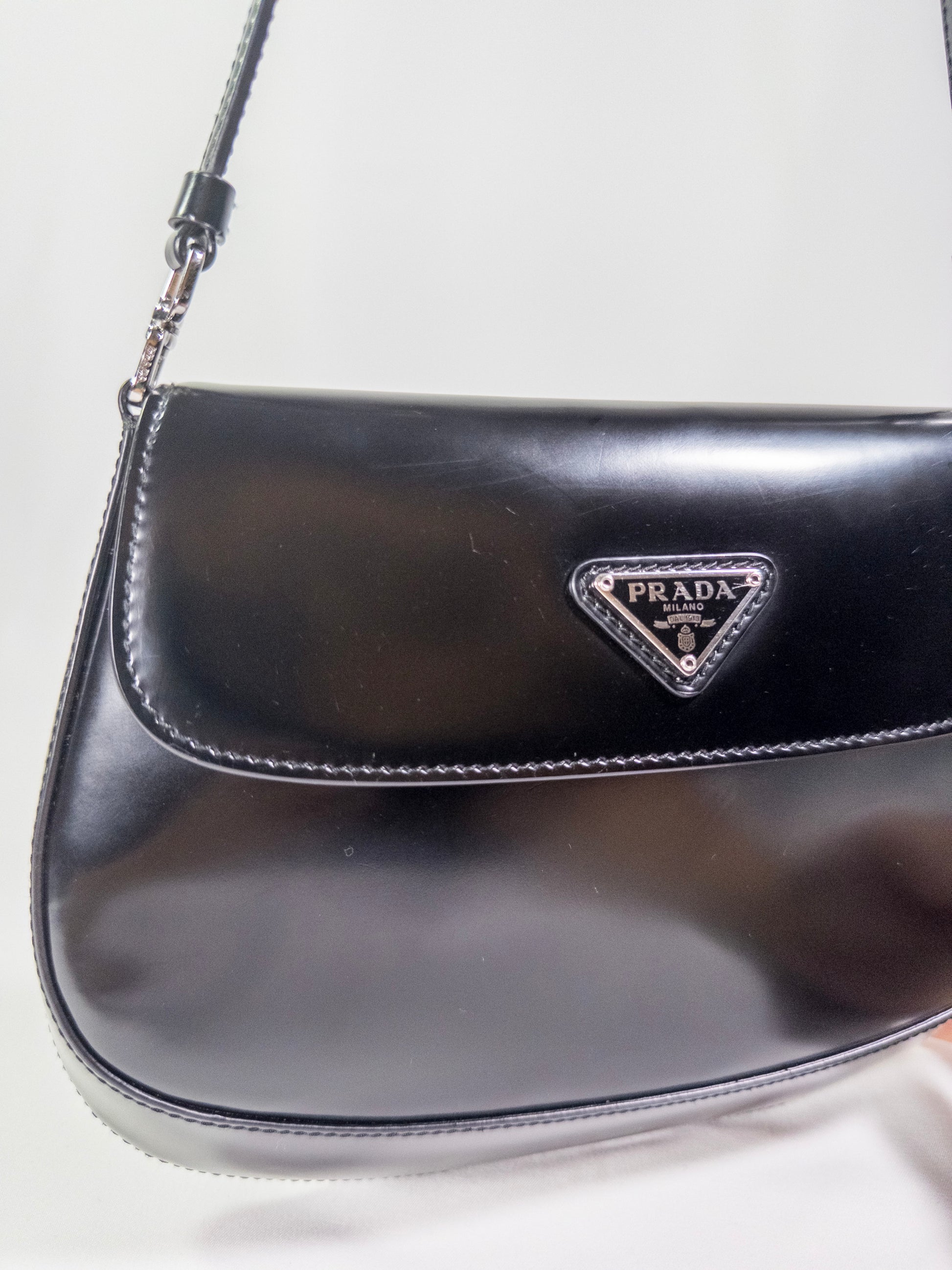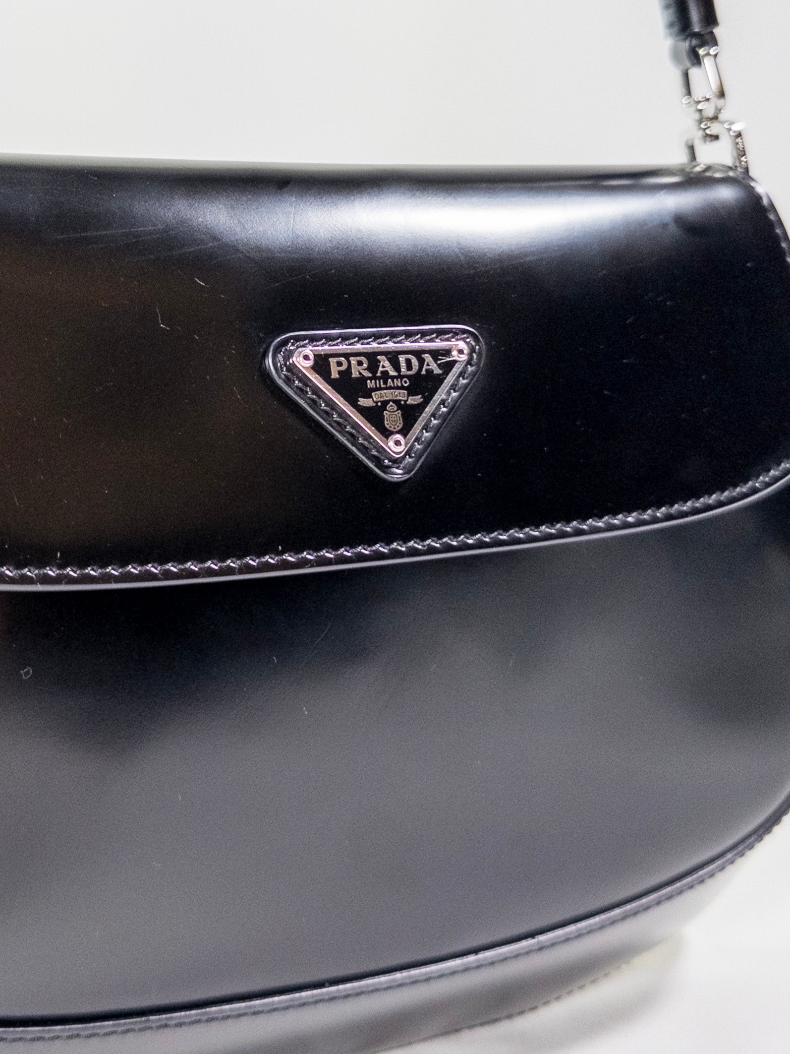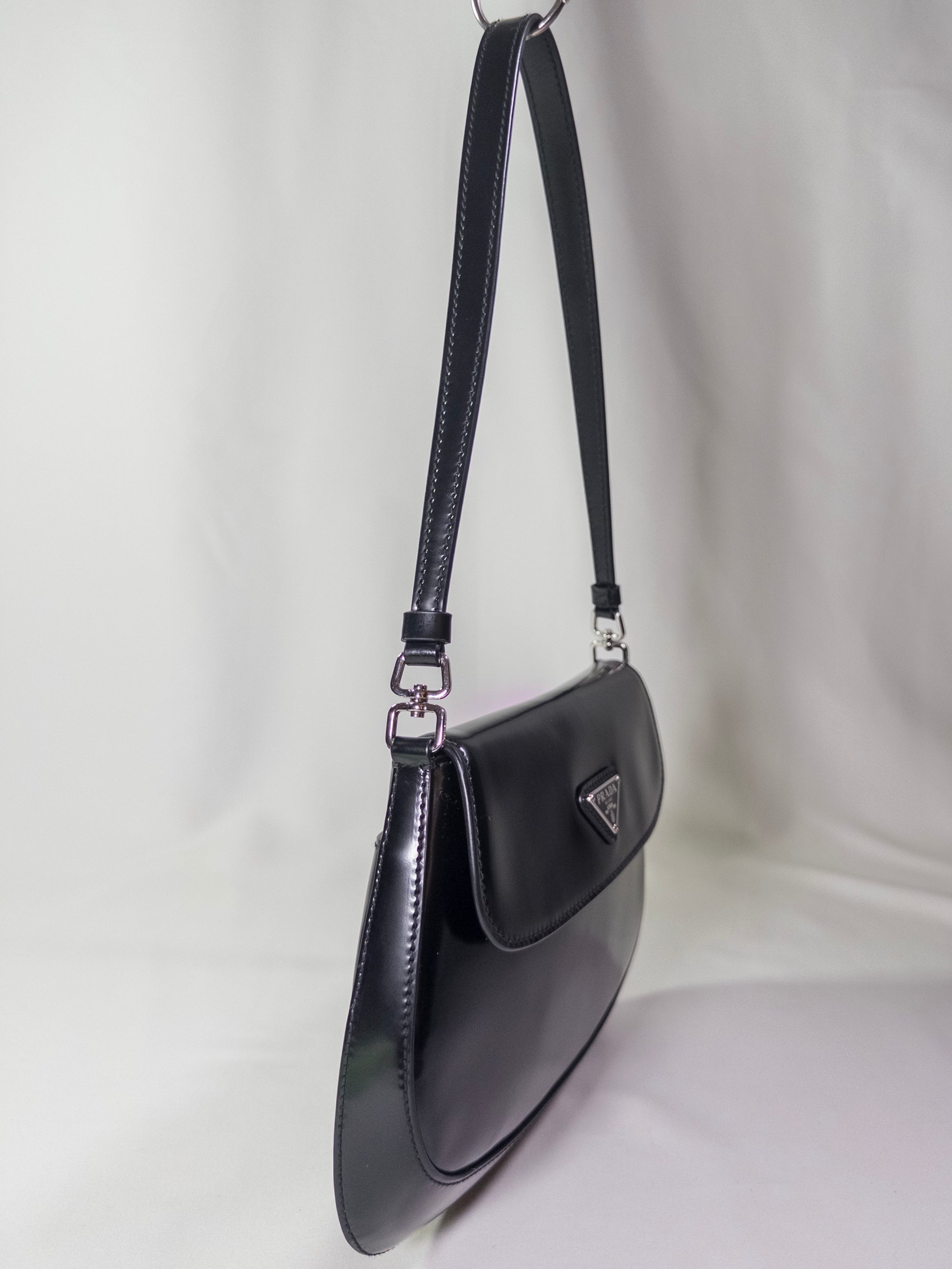 2. Crafted from brushed leather, a contemporary and versatile material synonymous with Prada collections, she opens up endless possibilities for mixing and matching with your outfits. And let's not forget the enamel triangle logo, which adds that unmistakable Prada touch to her silhouette.