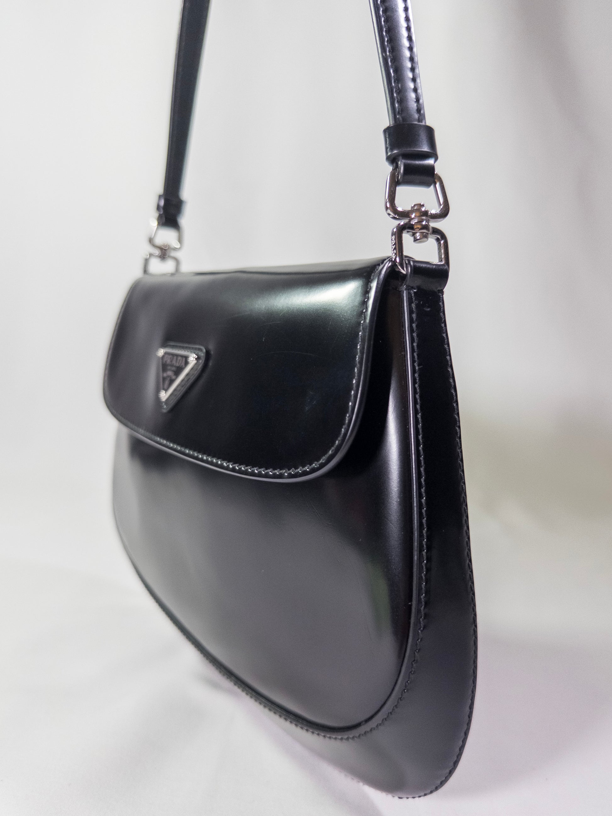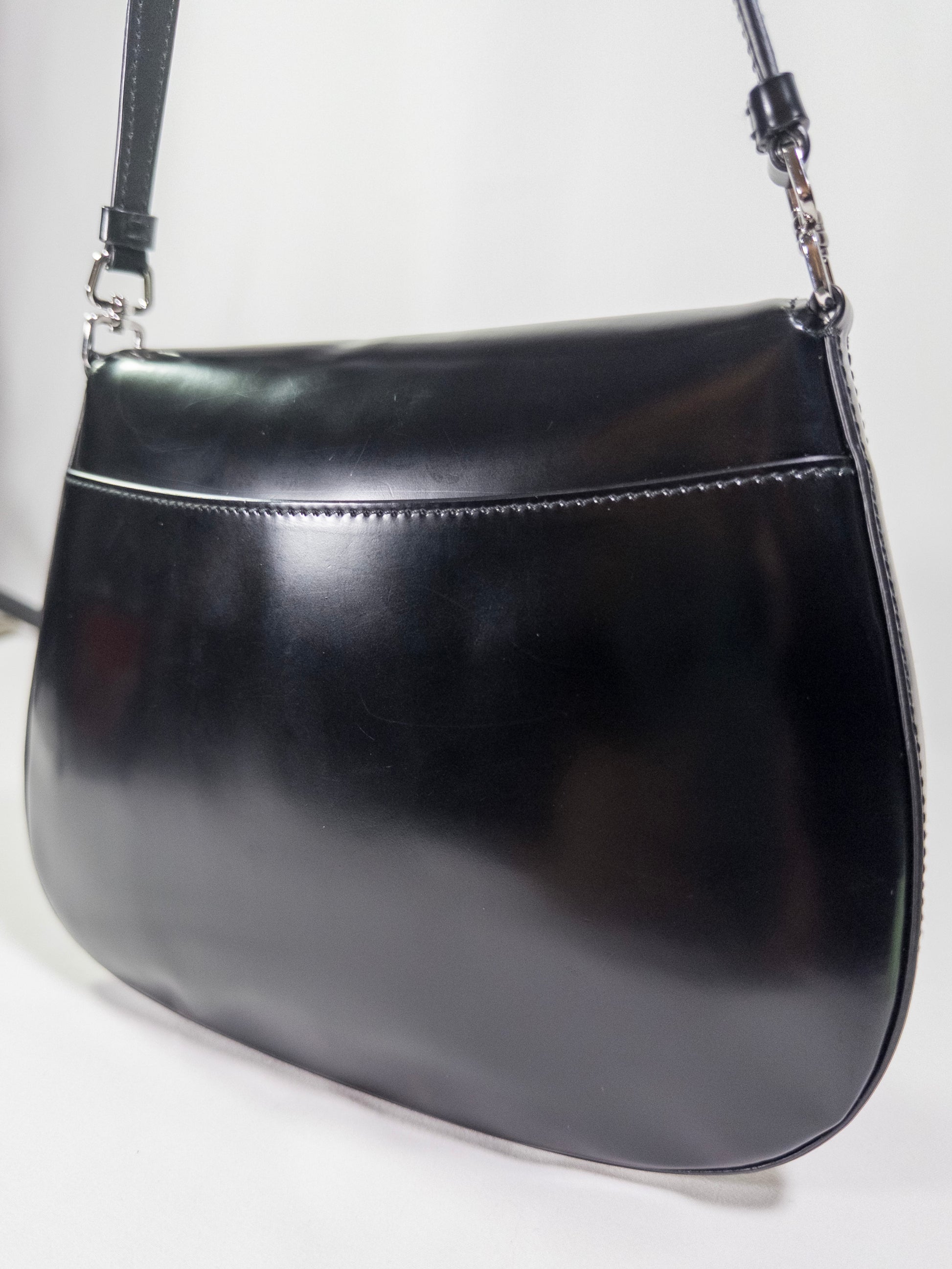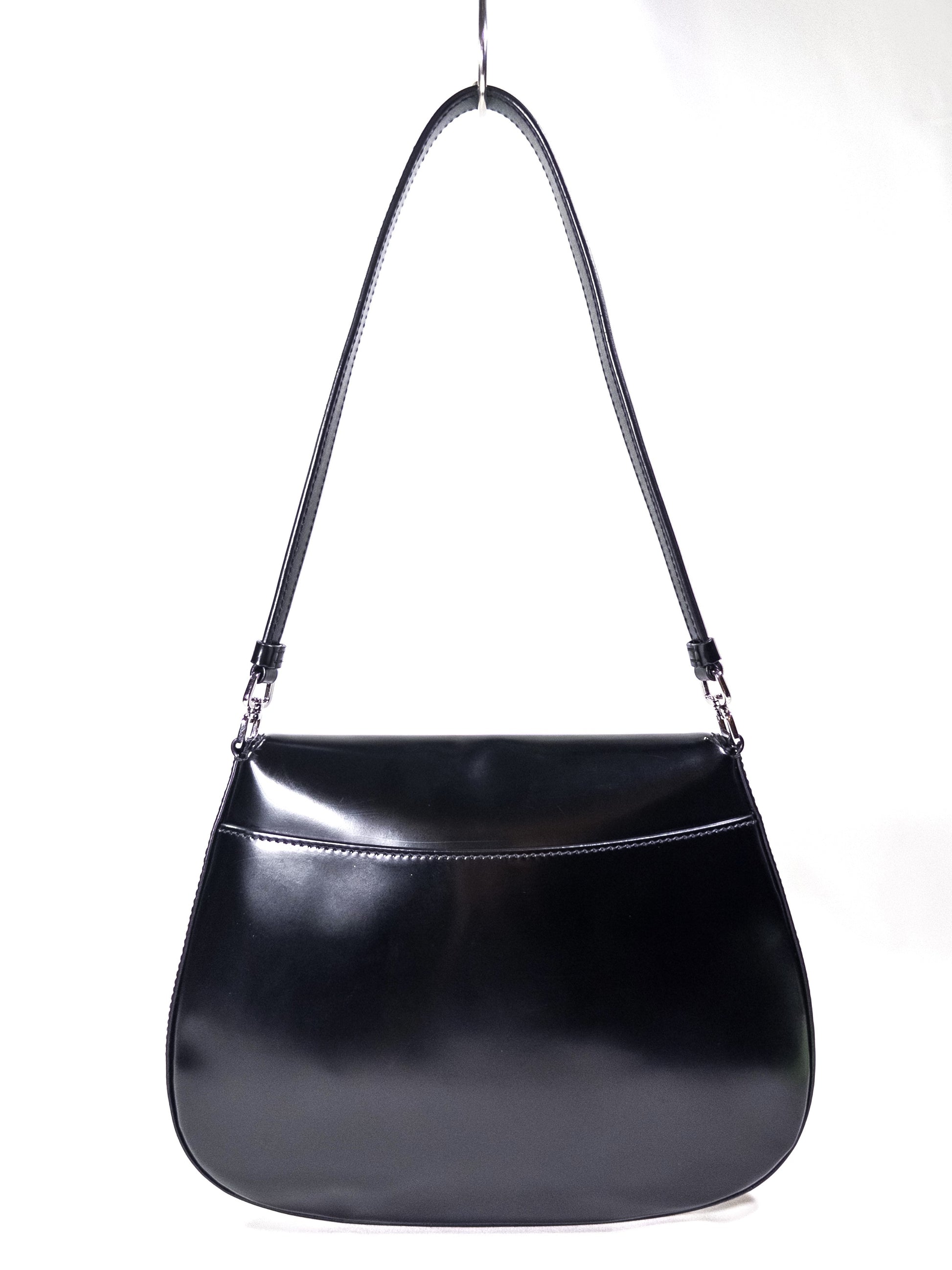 2. Crafted from brushed leather, a contemporary and versatile material synonymous with Prada collections, she opens up endless possibilities for mixing and matching with your outfits. And let's not forget the enamel triangle logo, which adds that unmistakable Prada touch to her silhouette.
