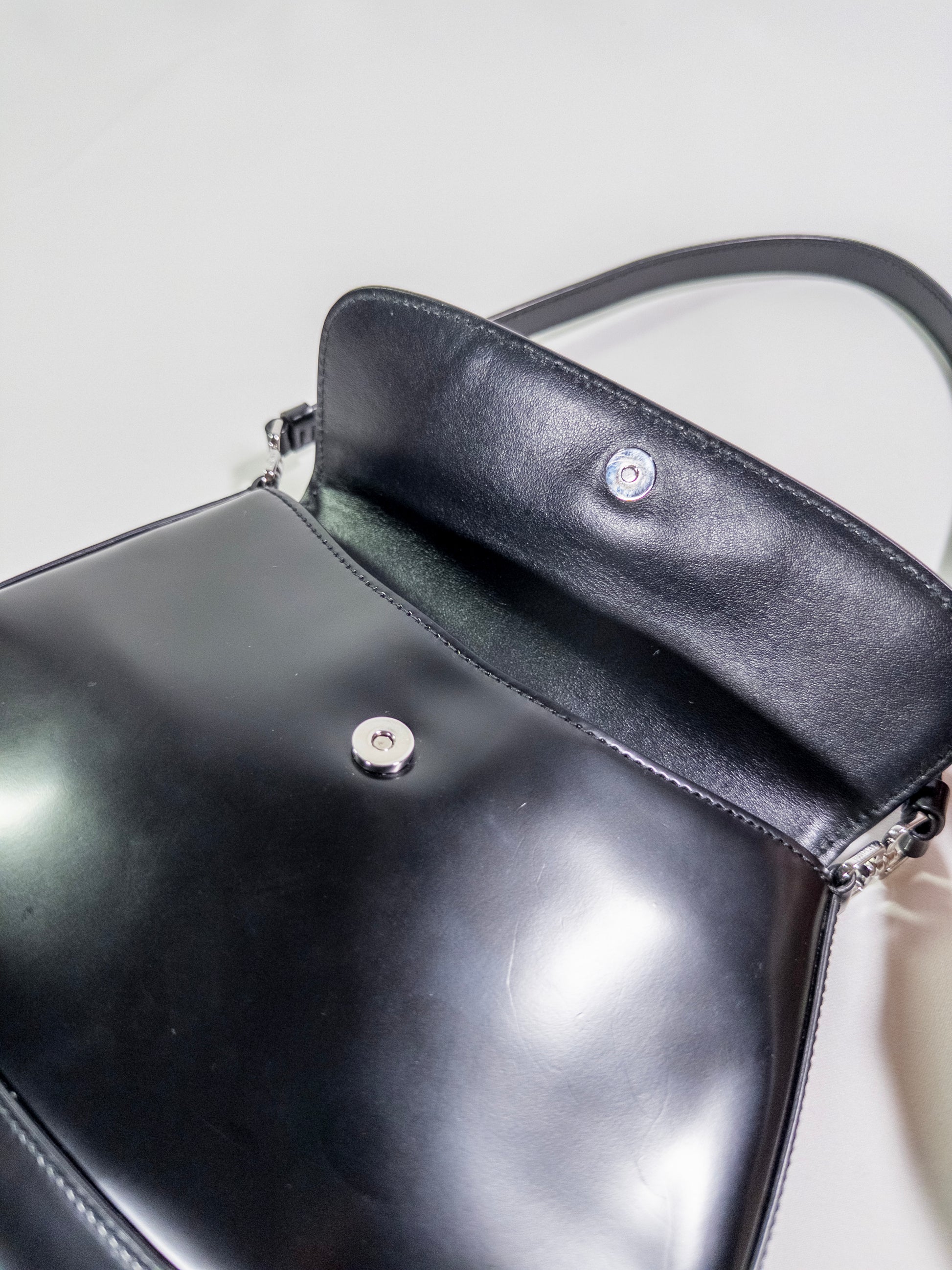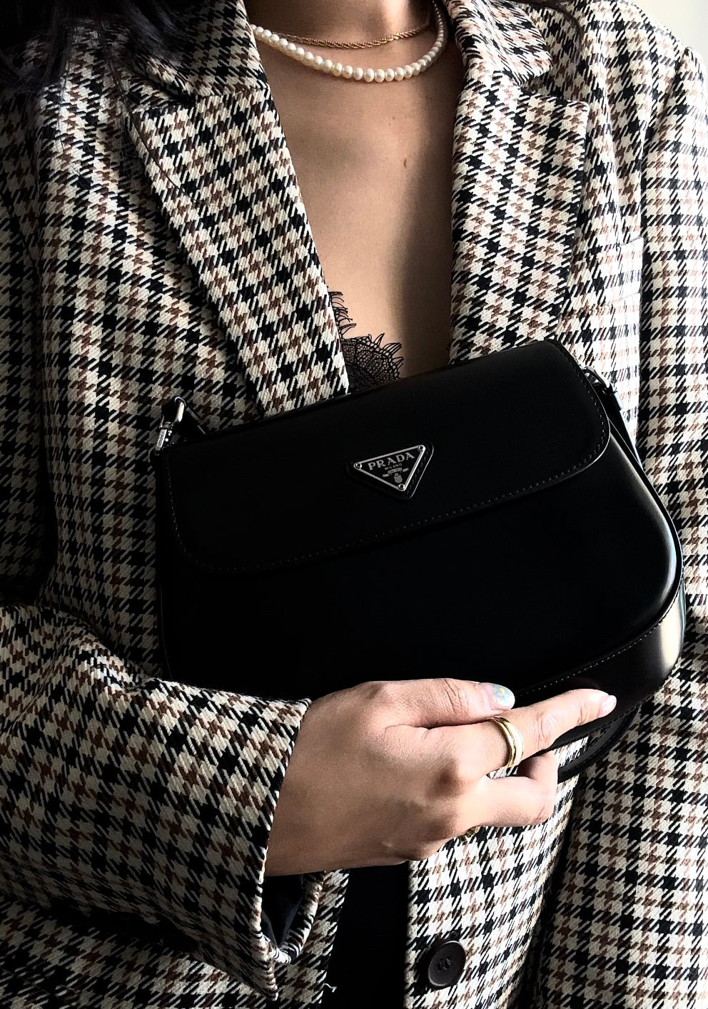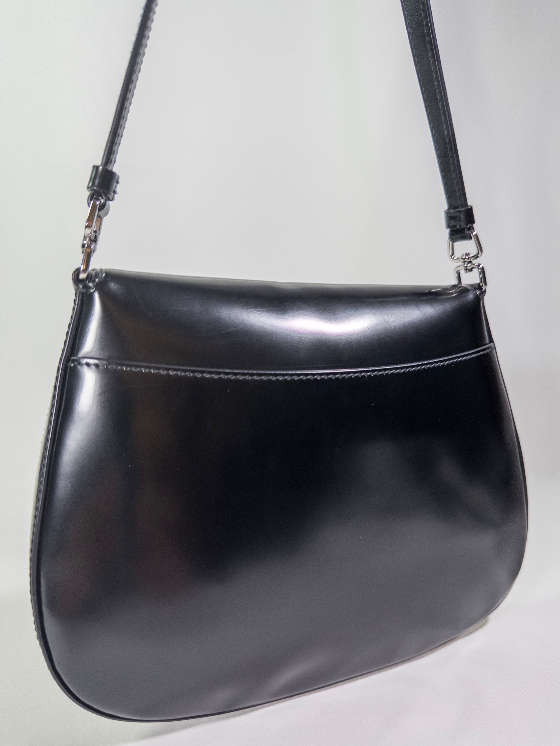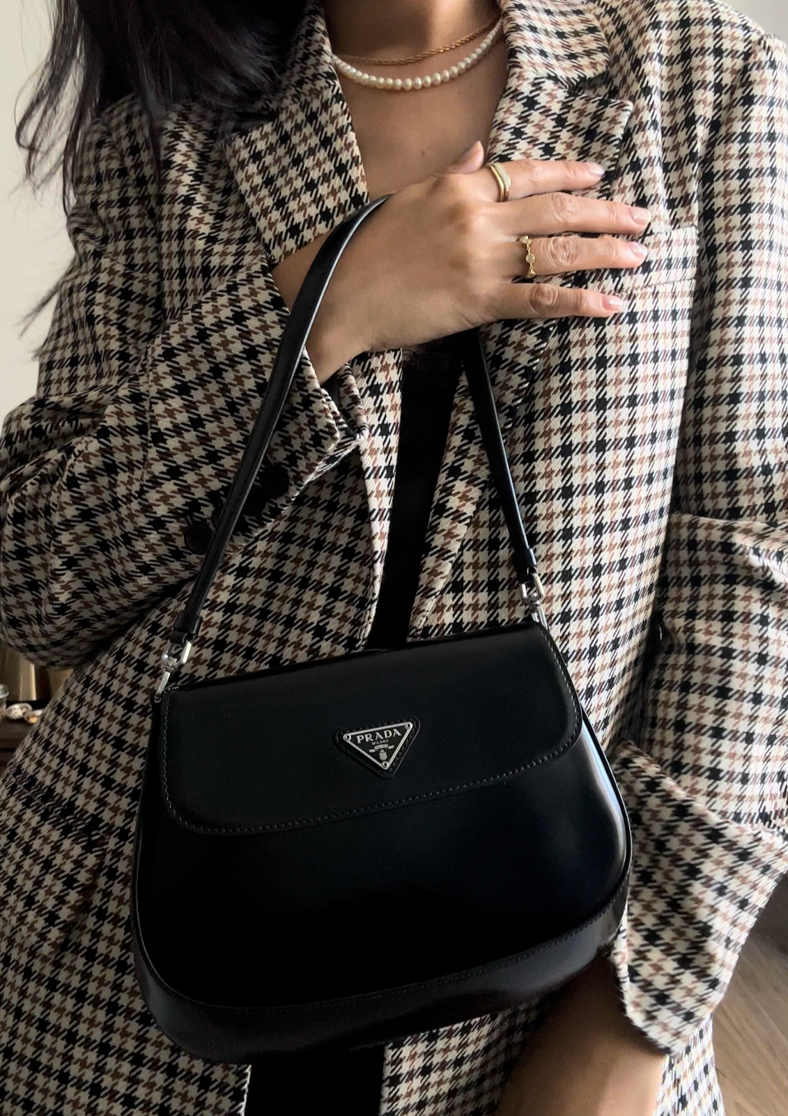 2. Crafted from brushed leather, a contemporary and versatile material synonymous with Prada collections, she opens up endless possibilities for mixing and matching with your outfits. And let's not forget the enamel triangle logo, which adds that unmistakable Prada touch to her silhouette.