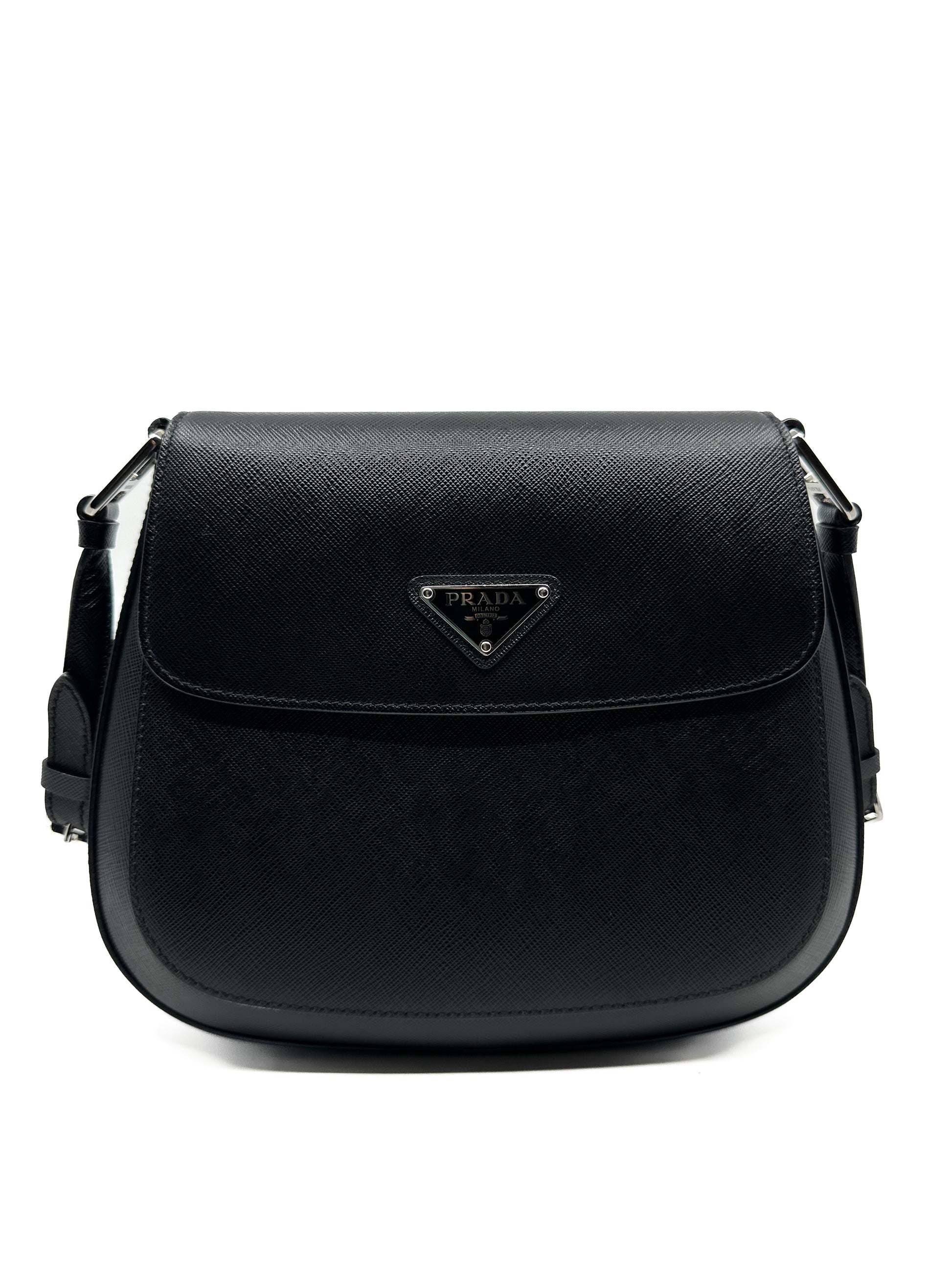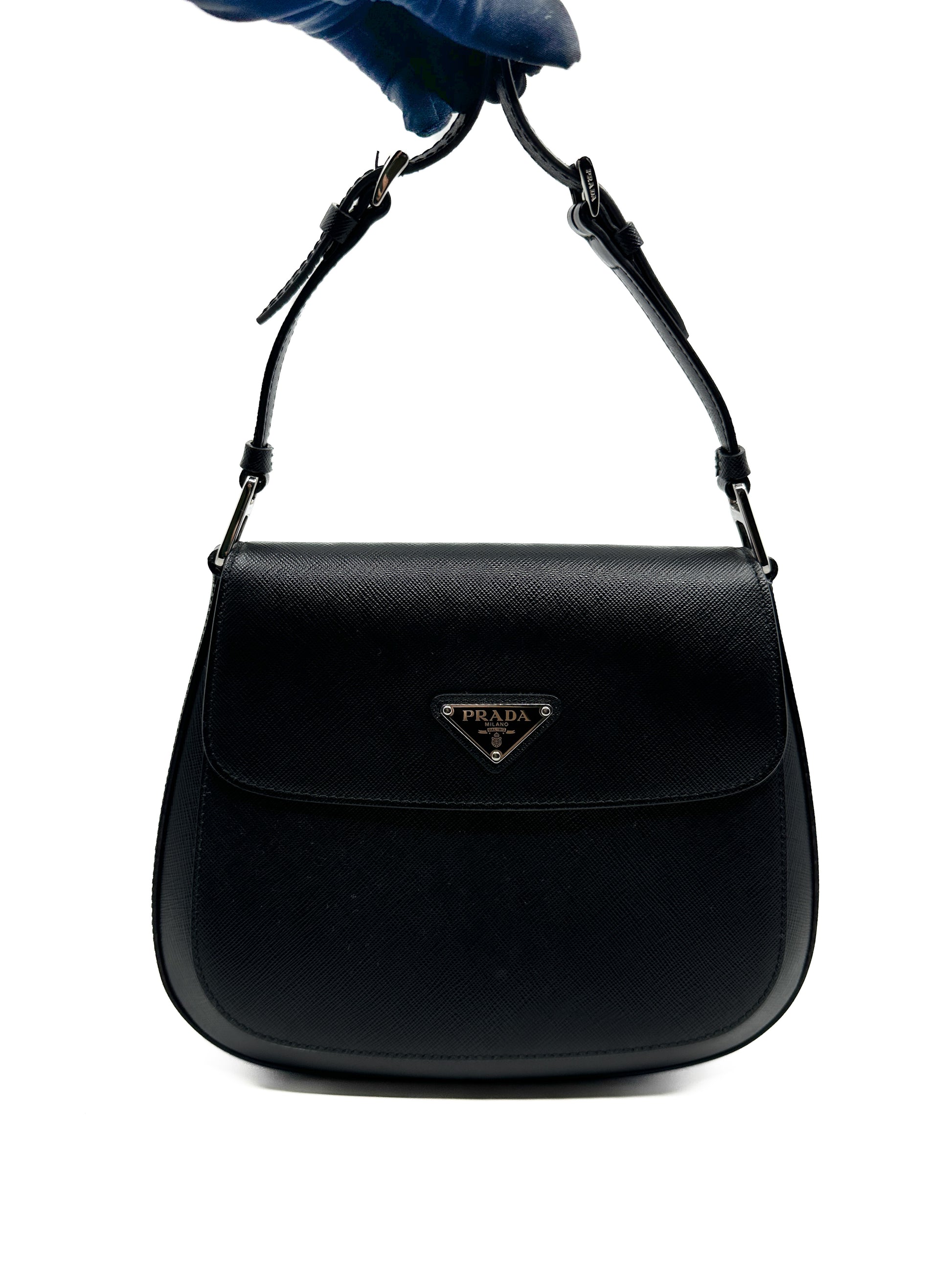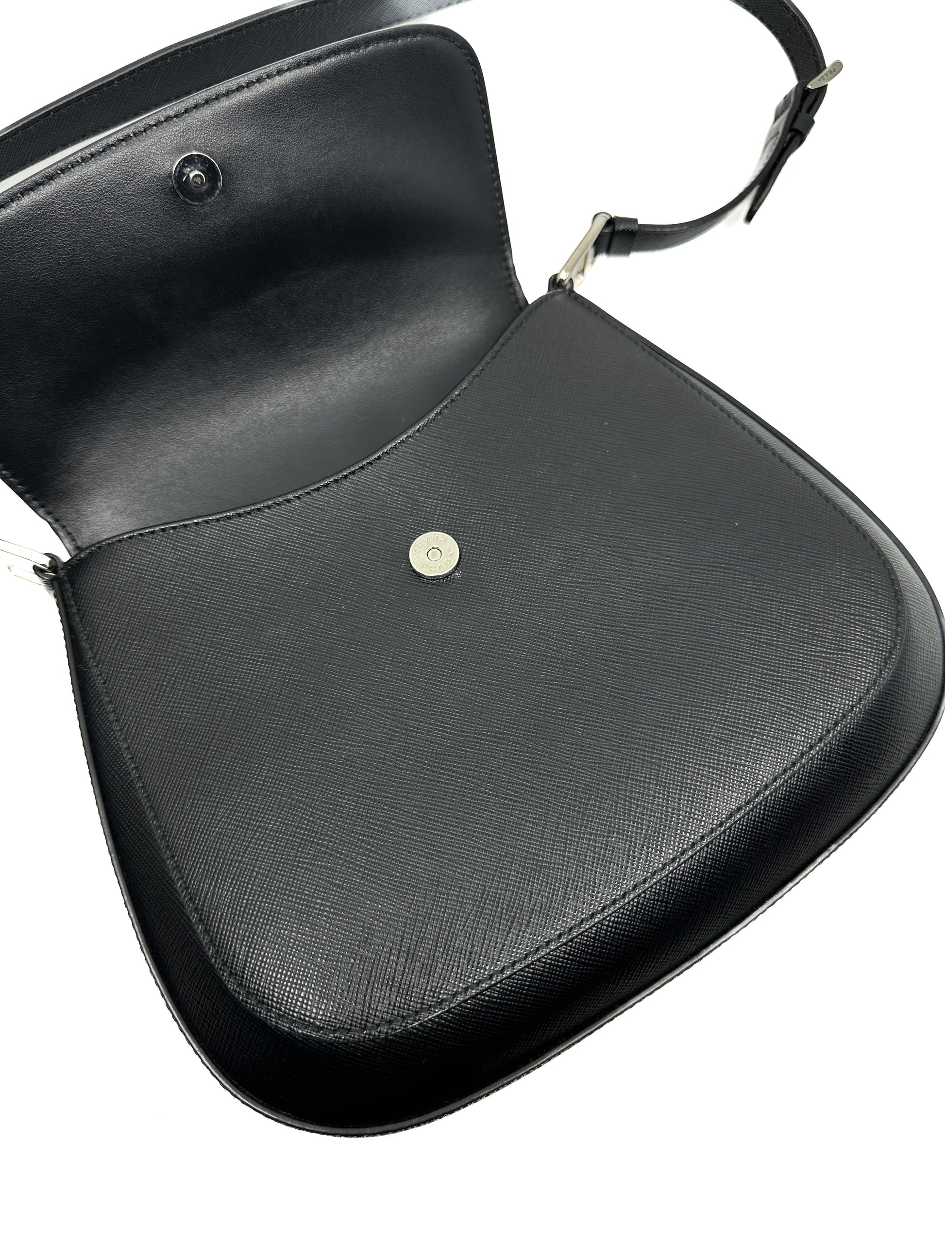 The bag is crafted from the brand's signature Saffiano leather, known for its crosshatch texture and exceptional durability. This luxurious material not only provides a sophisticated look but also offers resistance to scratches and stains, ensuring the bag maintains its pristine appearance over time. The sleek silhouette of the Cleo Flap is accentuated by clean lines and a minimalist aesthetic, making it a versatile accessory that can effortlessly transition from day to night.
