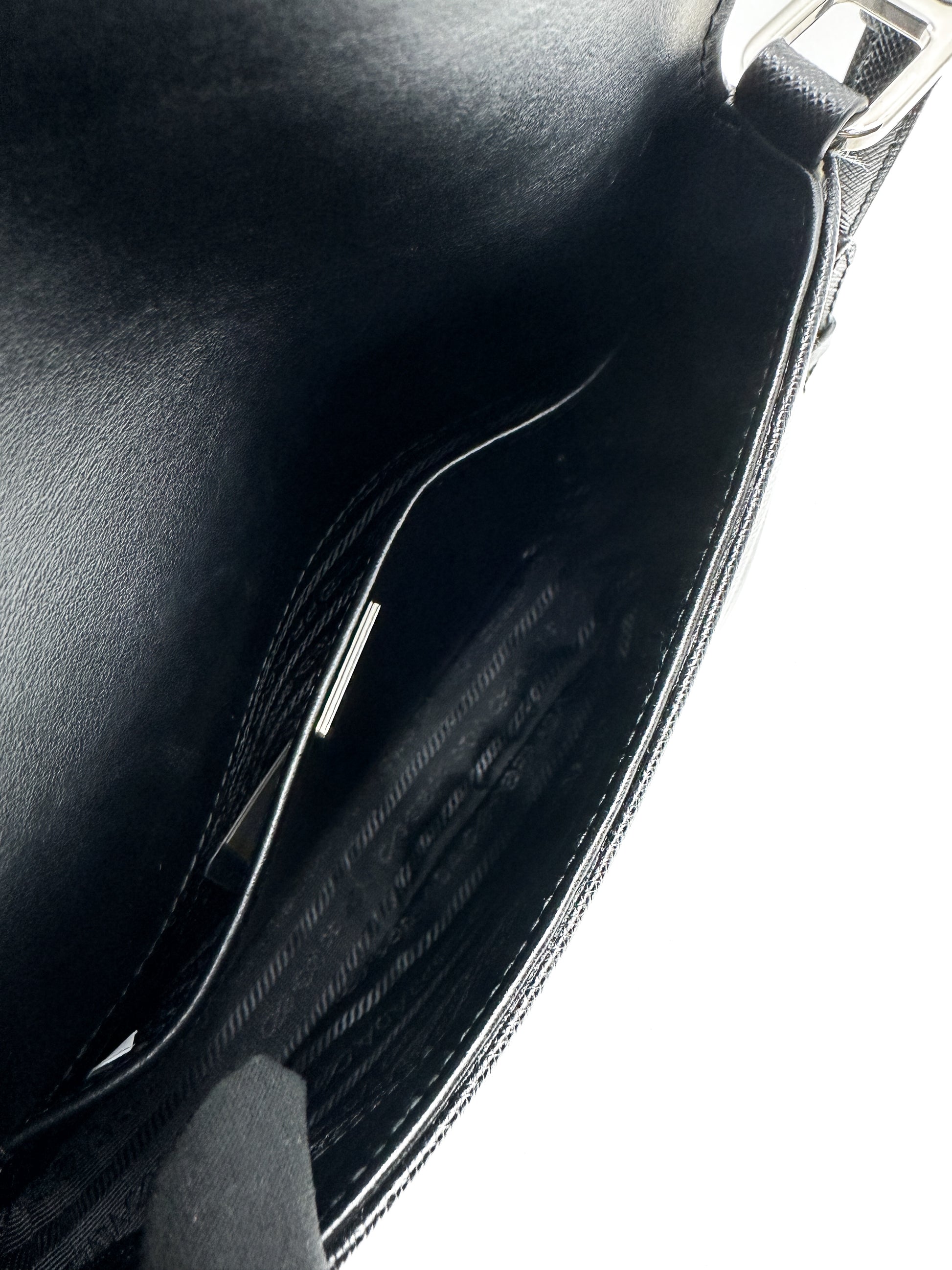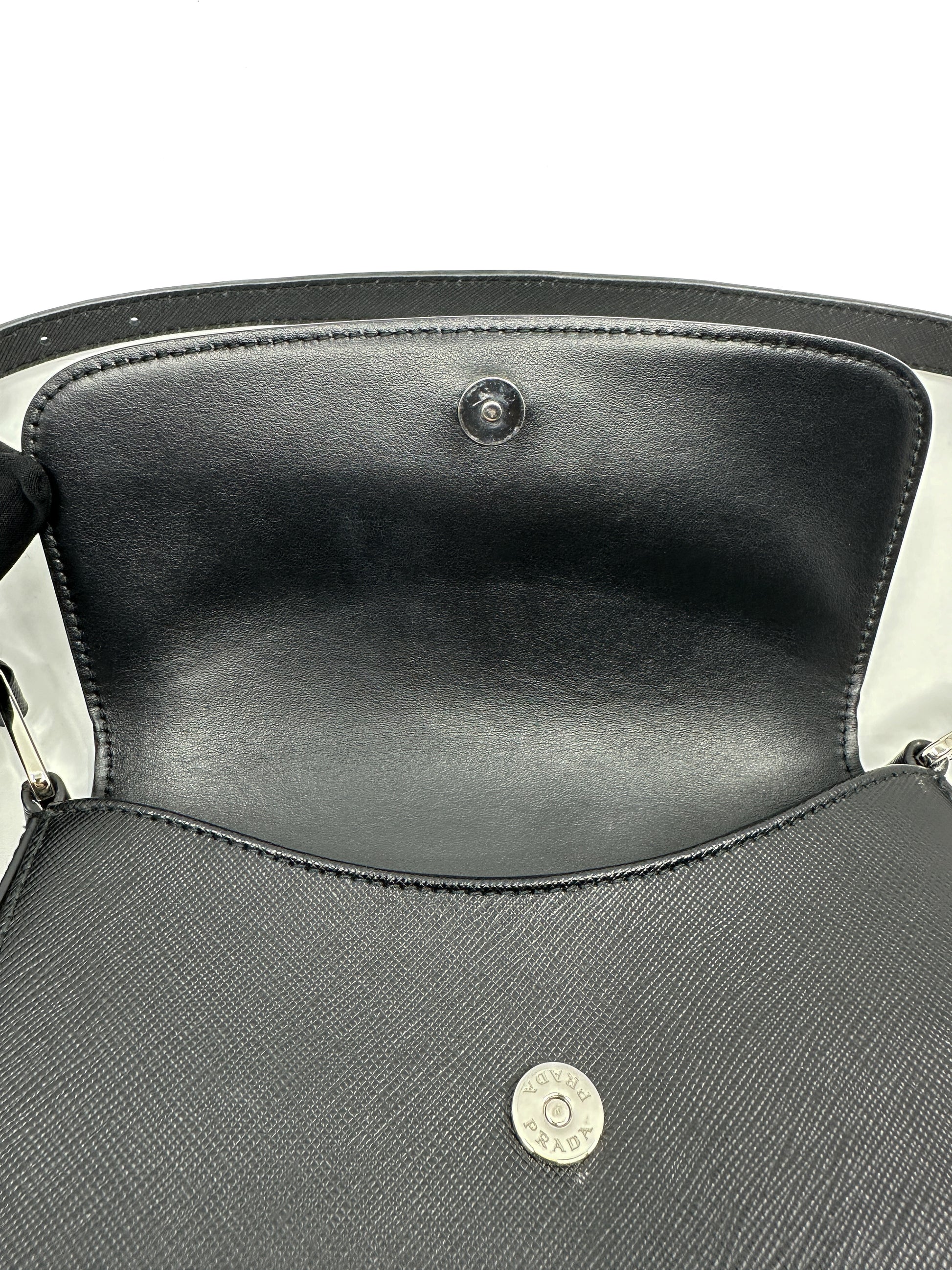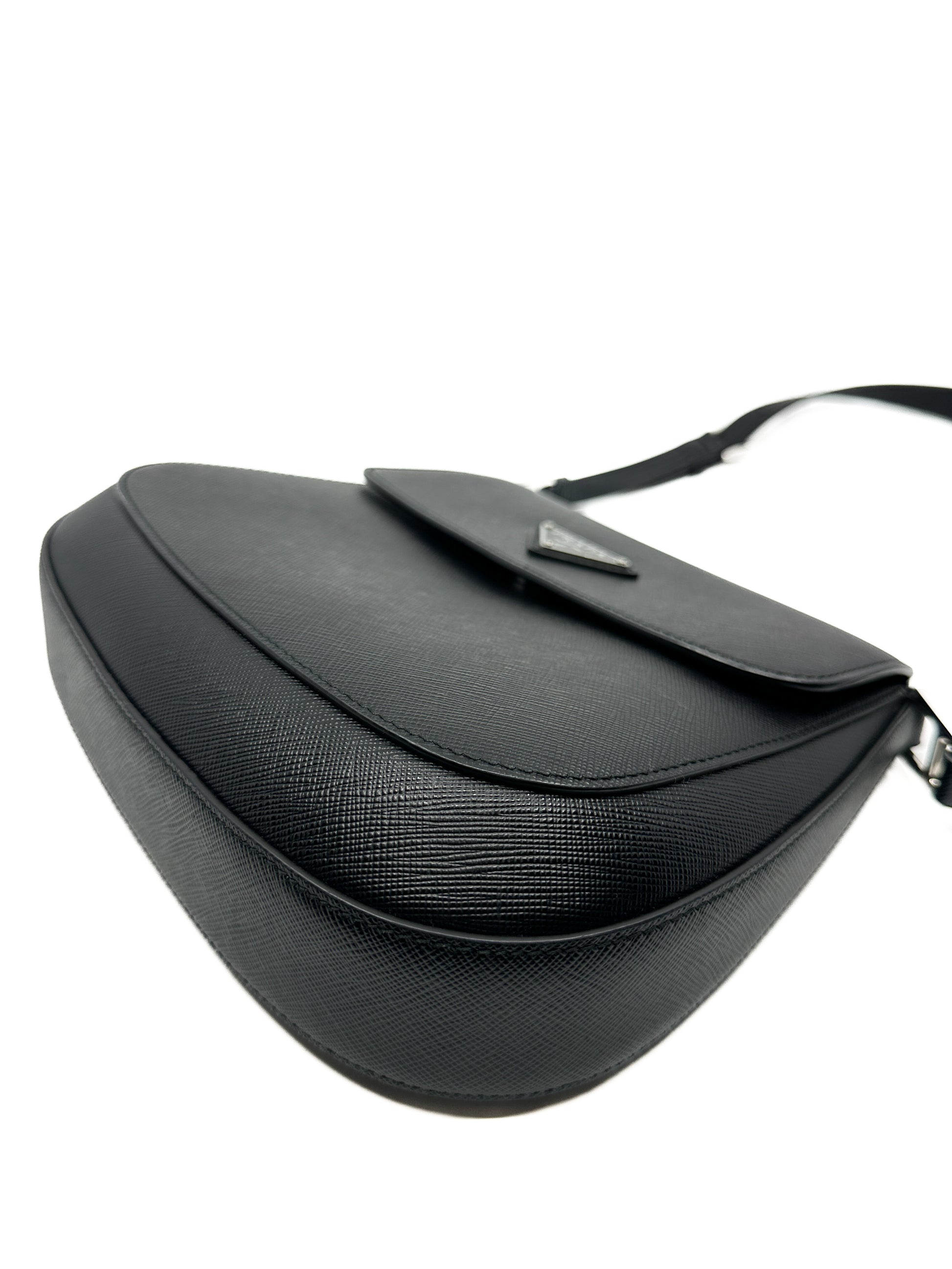The bag is crafted from the brand's signature Saffiano leather, known for its crosshatch texture and exceptional durability. This luxurious material not only provides a sophisticated look but also offers resistance to scratches and stains, ensuring the bag maintains its pristine appearance over time. The sleek silhouette of the Cleo Flap is accentuated by clean lines and a minimalist aesthetic, making it a versatile accessory that can effortlessly transition from day to night.
