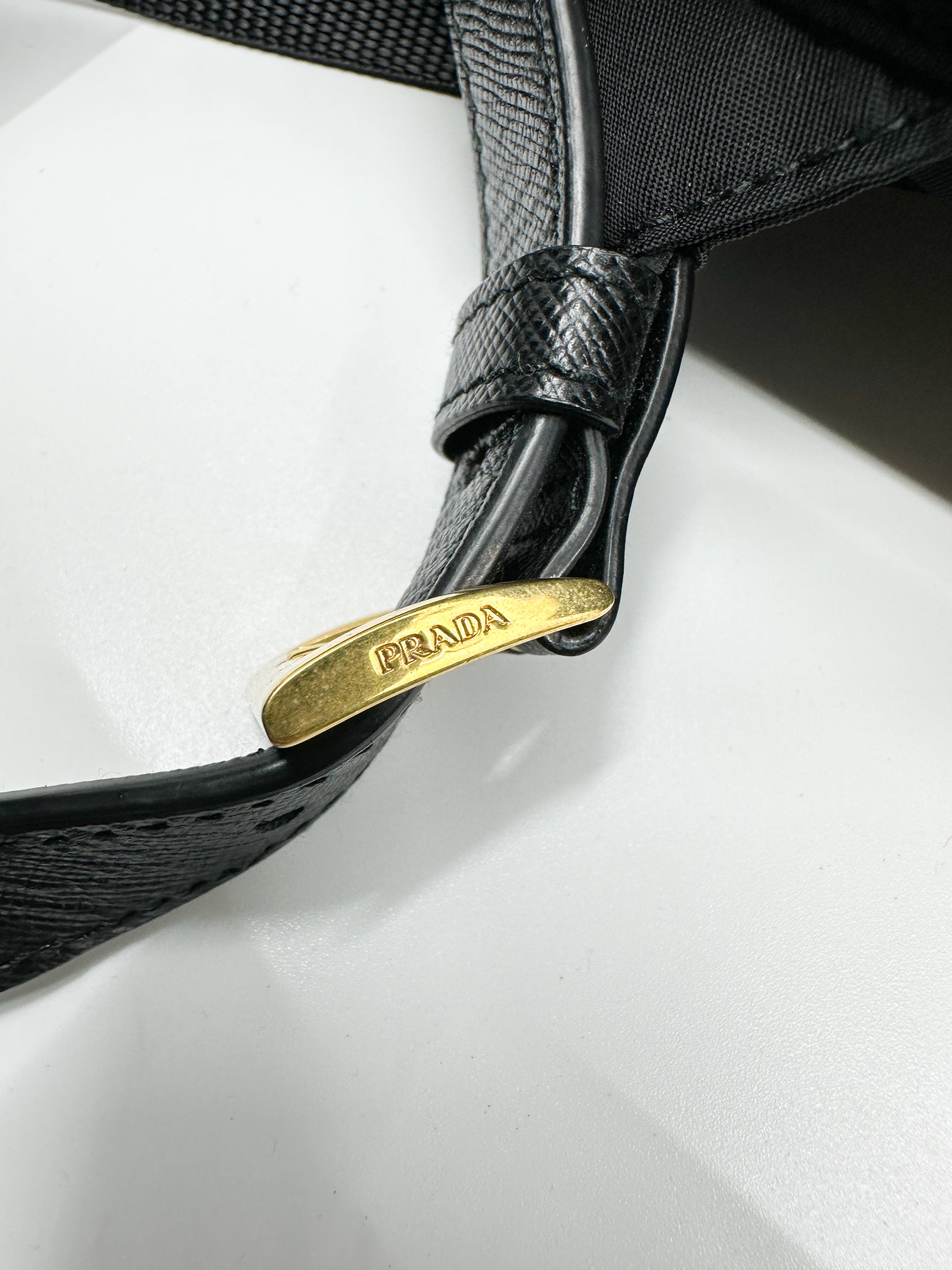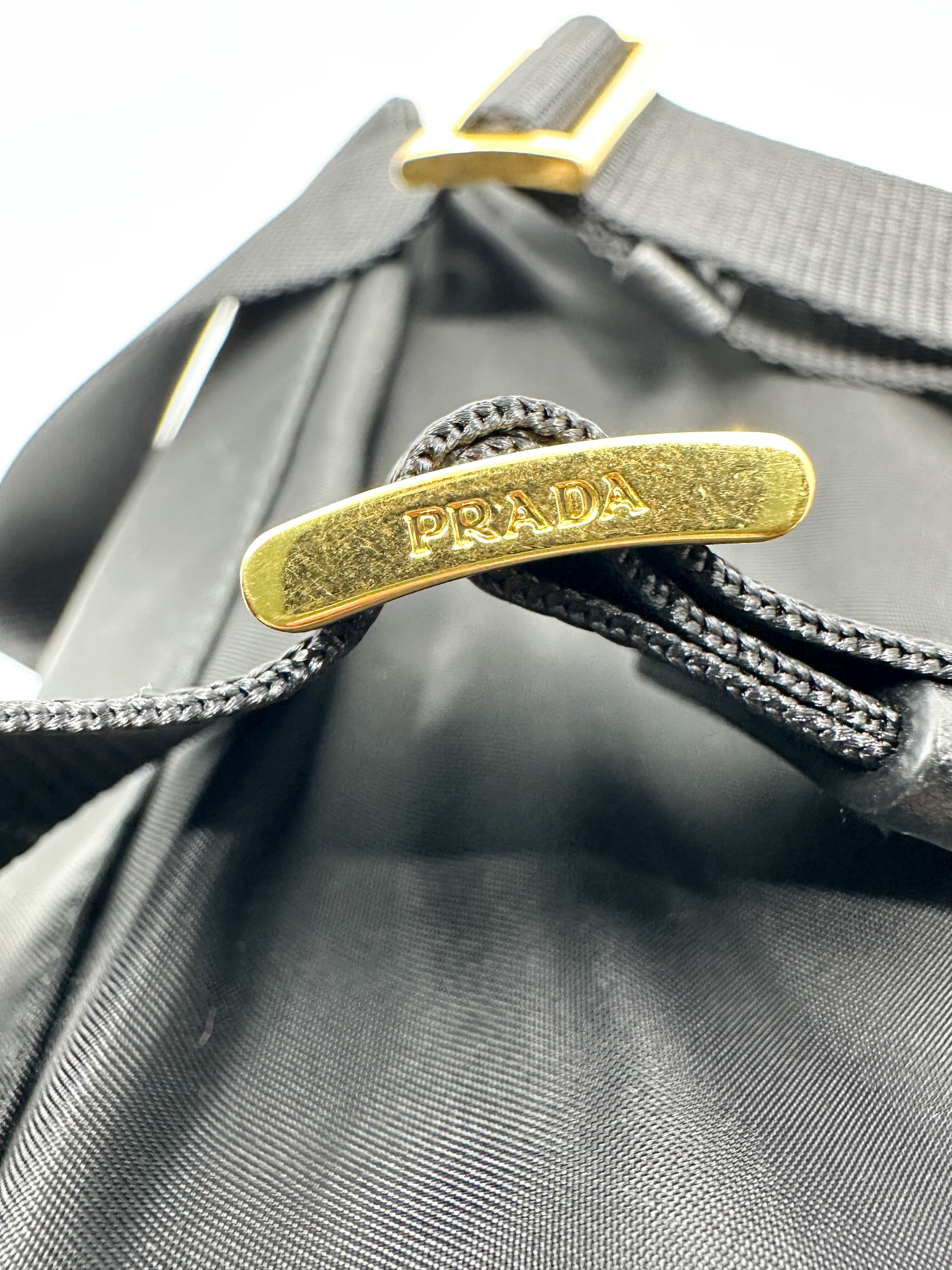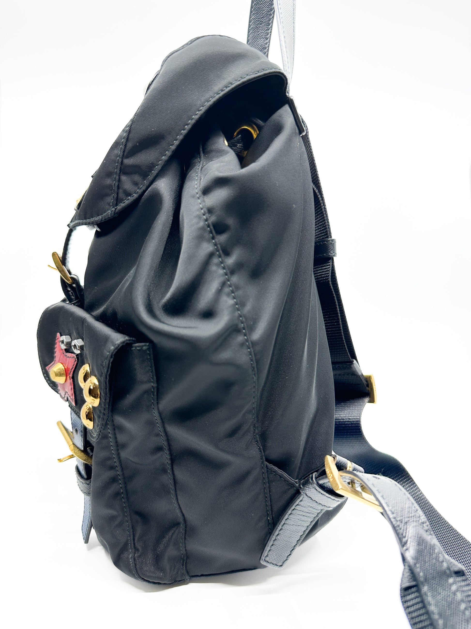 Crafted from premium materials, the backpack showcases Prada’s commitment to quality and craftsmanship. The combination of durable nylon, leather accents, and metal embellishments ensures longevity and a luxurious feel.