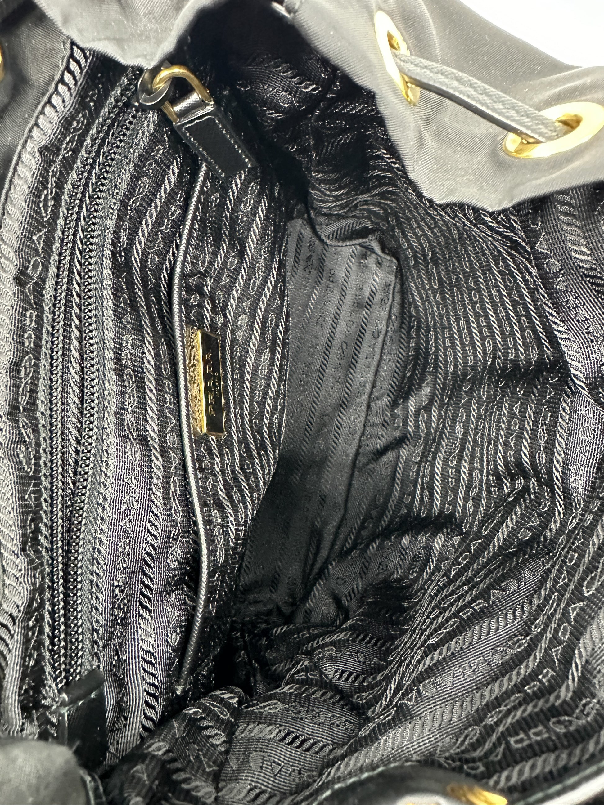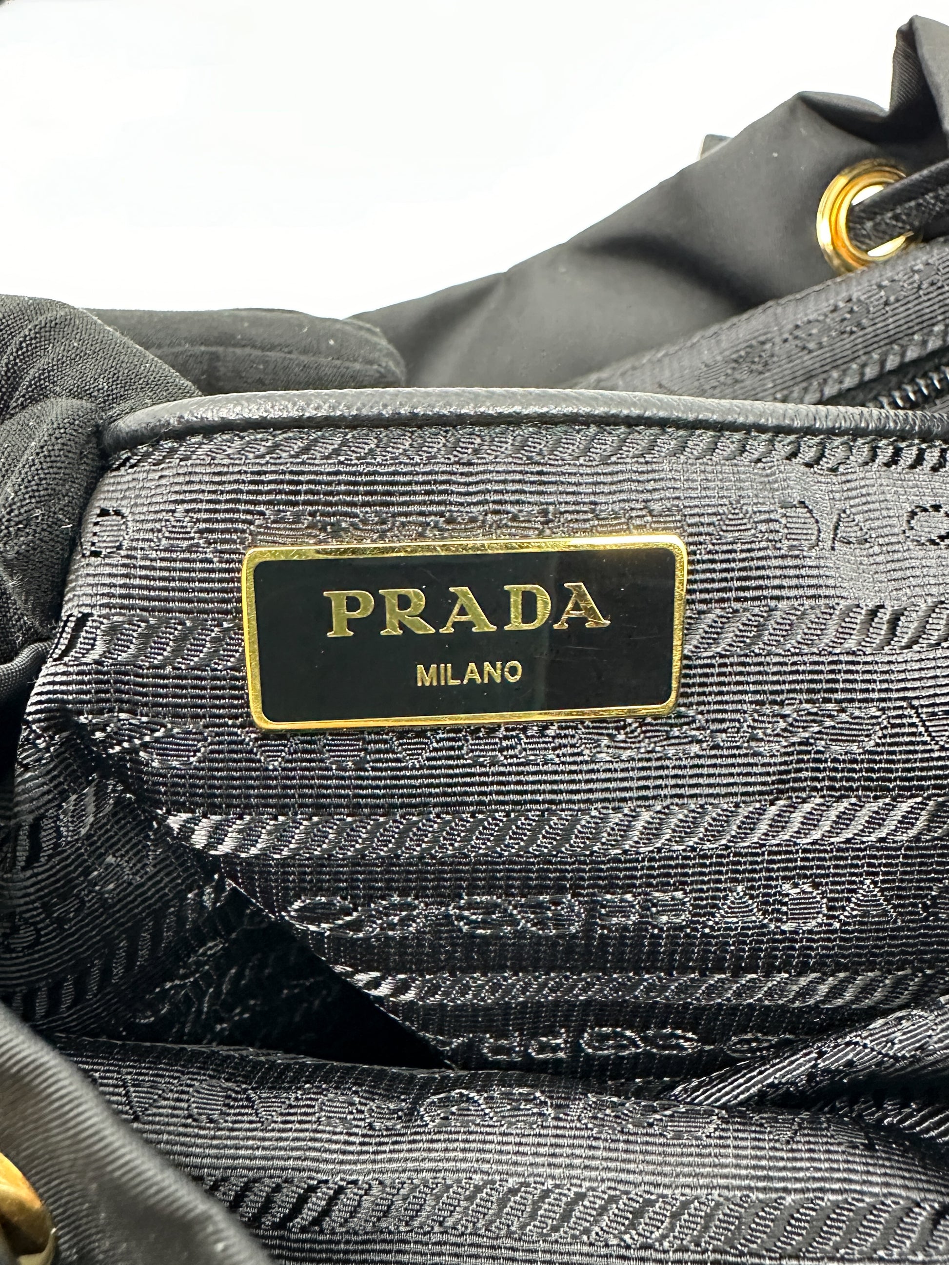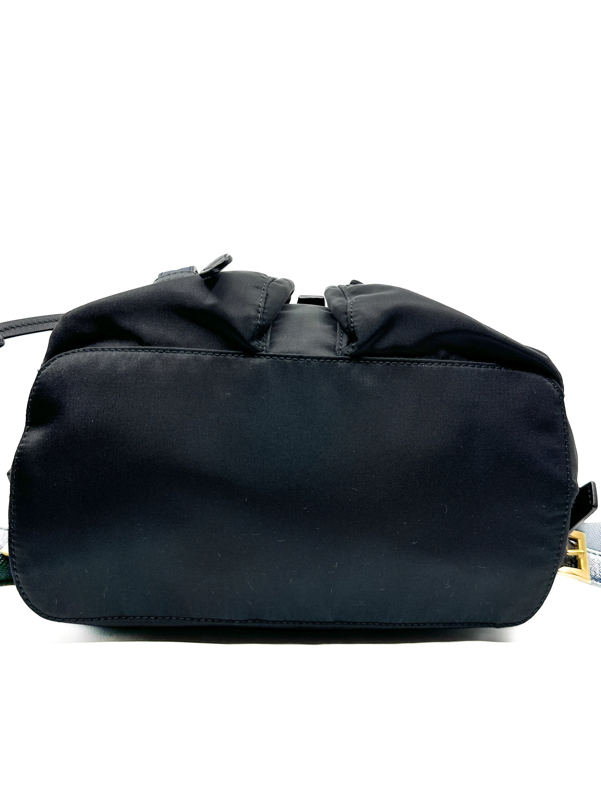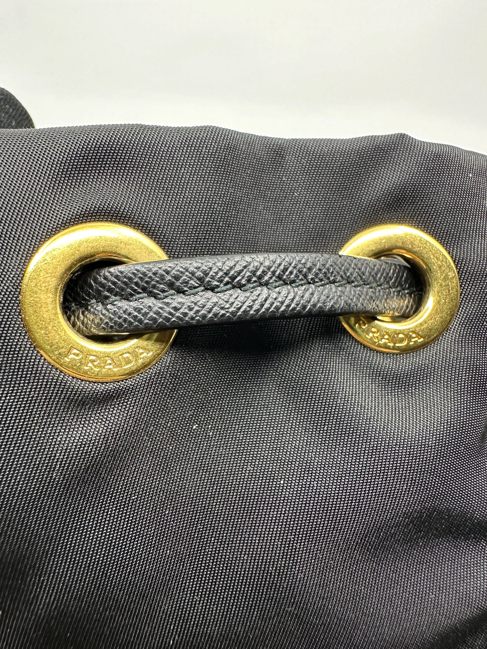 Crafted from premium materials, the backpack showcases Prada’s commitment to quality and craftsmanship. The combination of durable nylon, leather accents, and metal embellishments ensures longevity and a luxurious feel.
