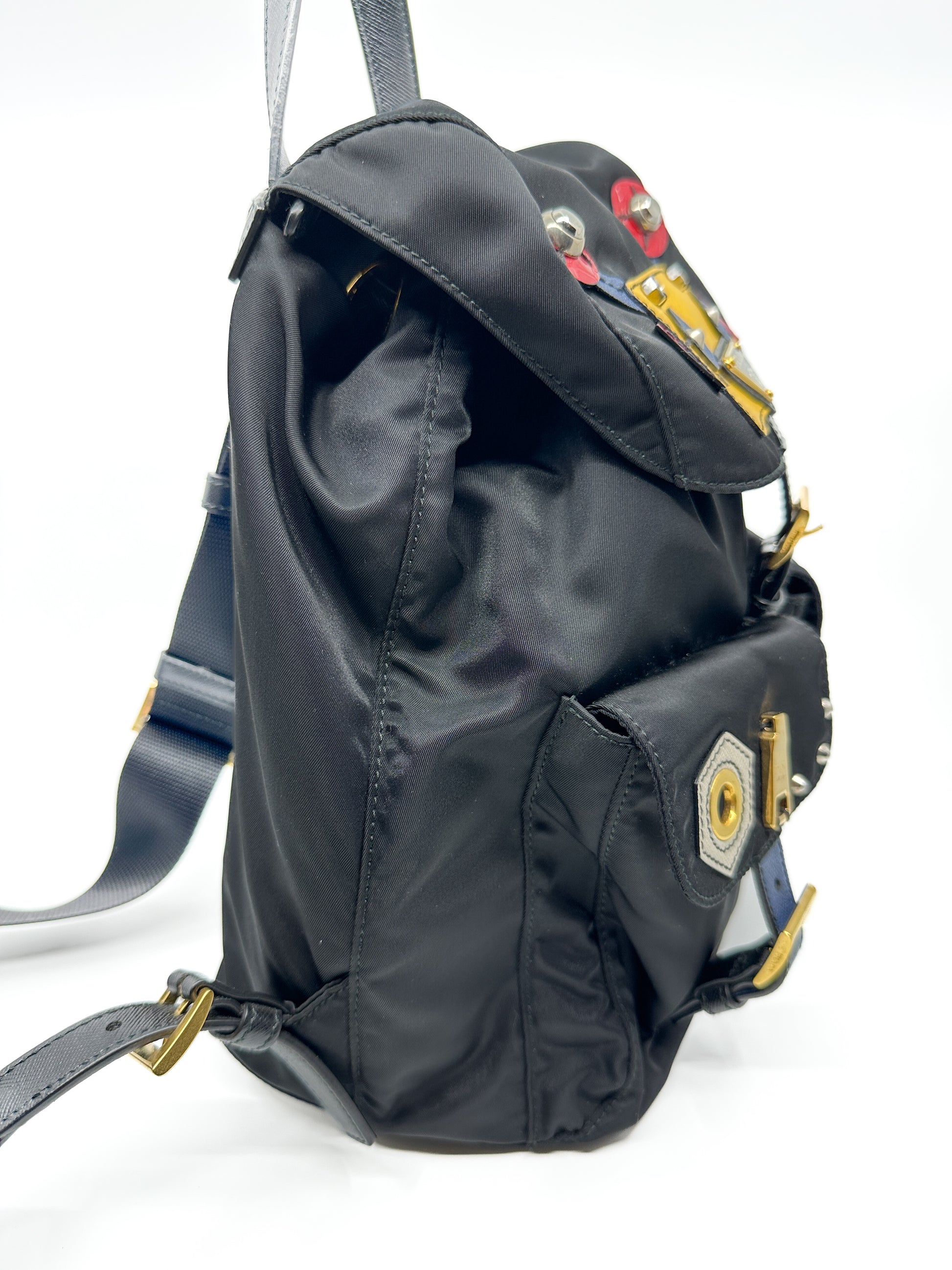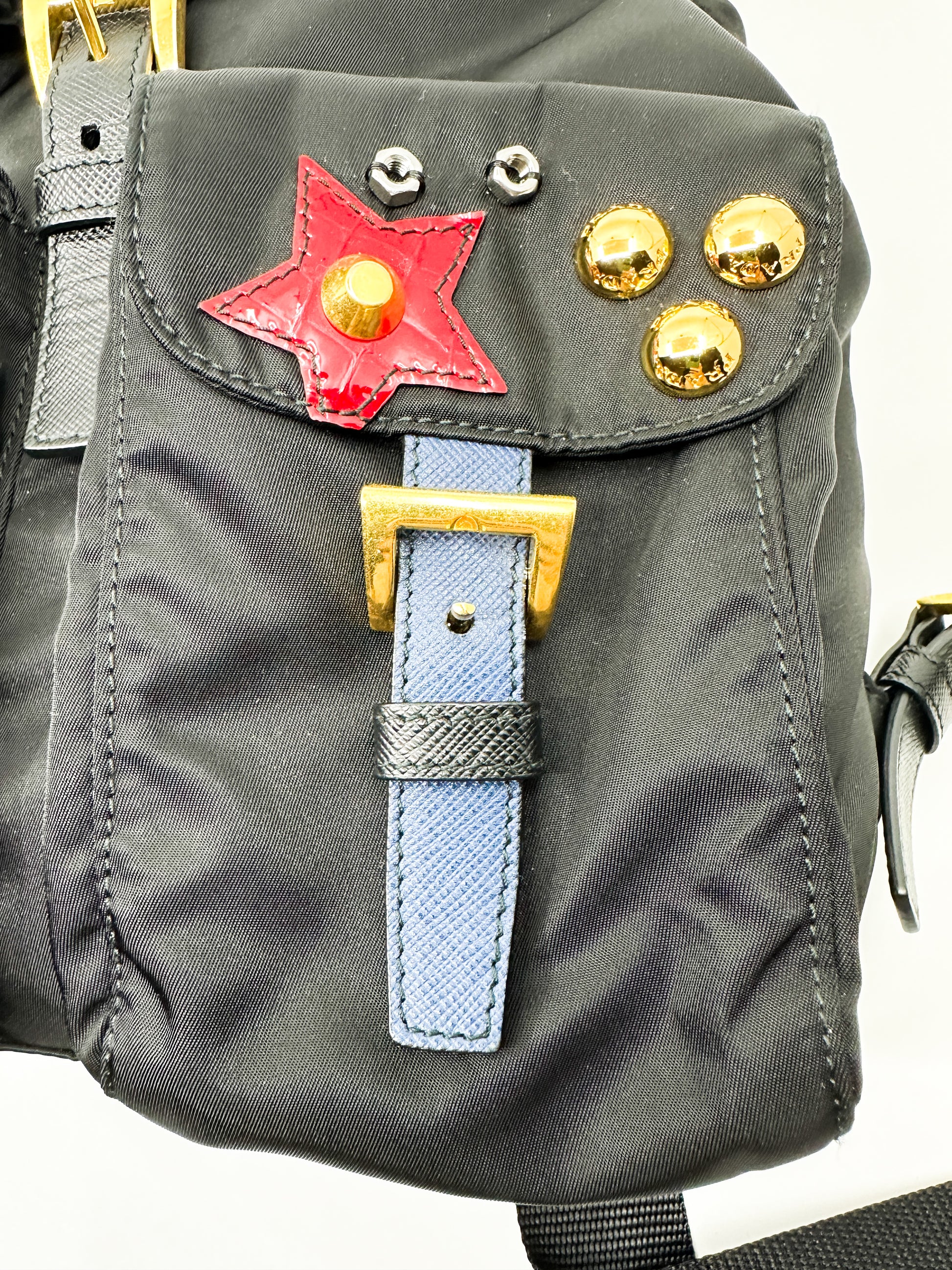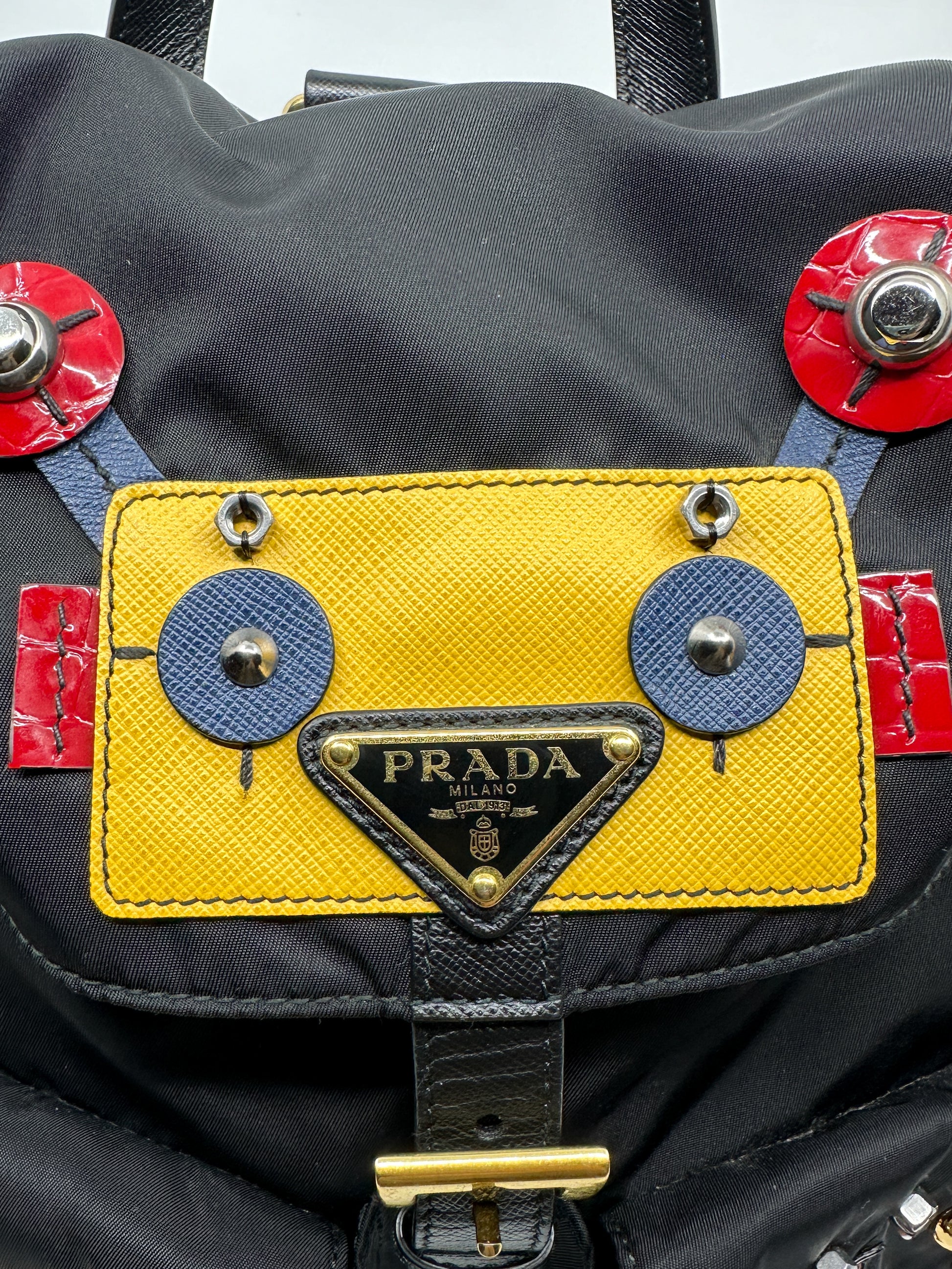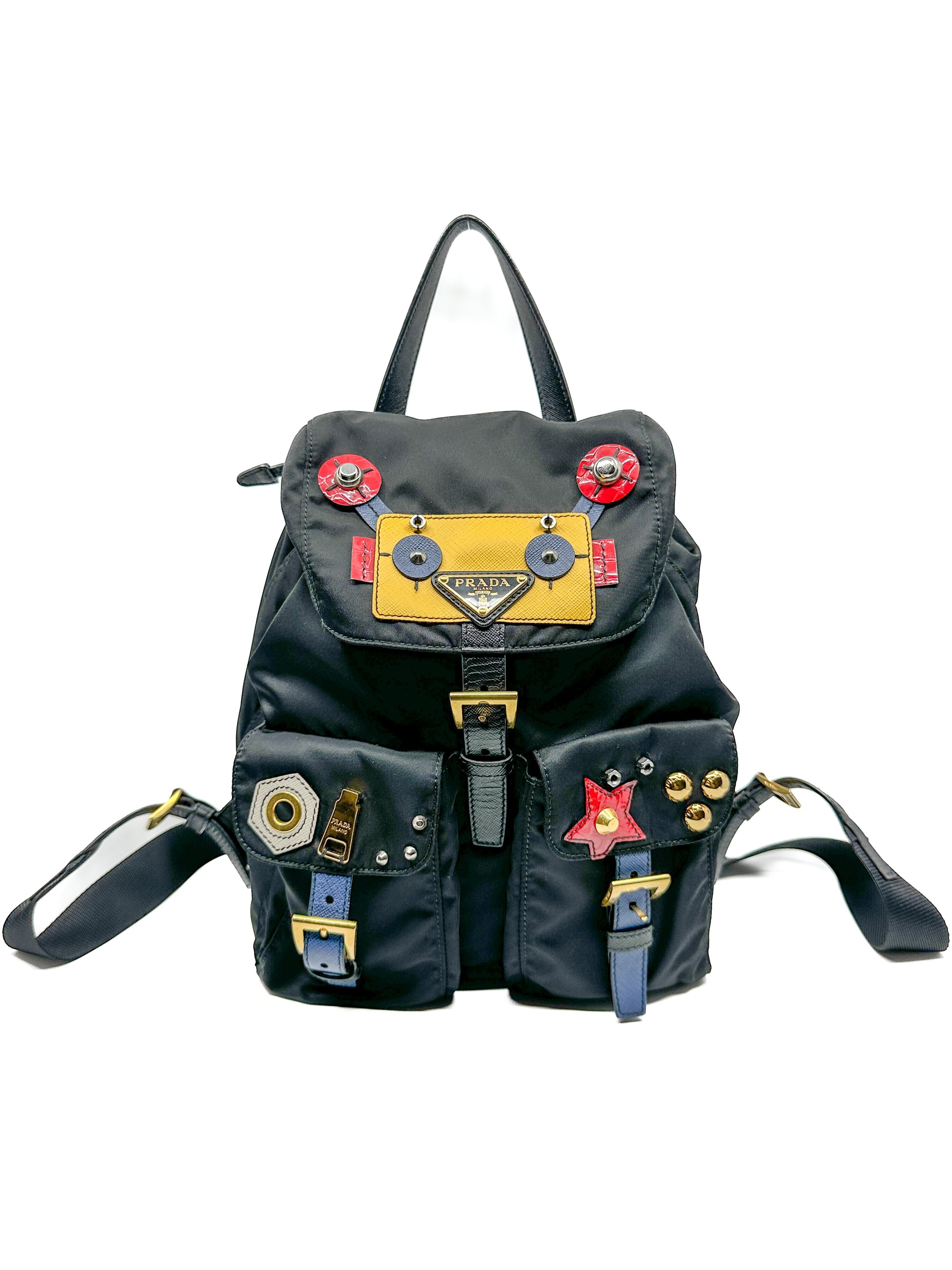 The Prada Robot Backpack is part of a limited edition collection that features quirky and futuristic robot motifs. This playful design is both distinctive and memorable, making it a perfect statement piece for fashion-forward individuals.