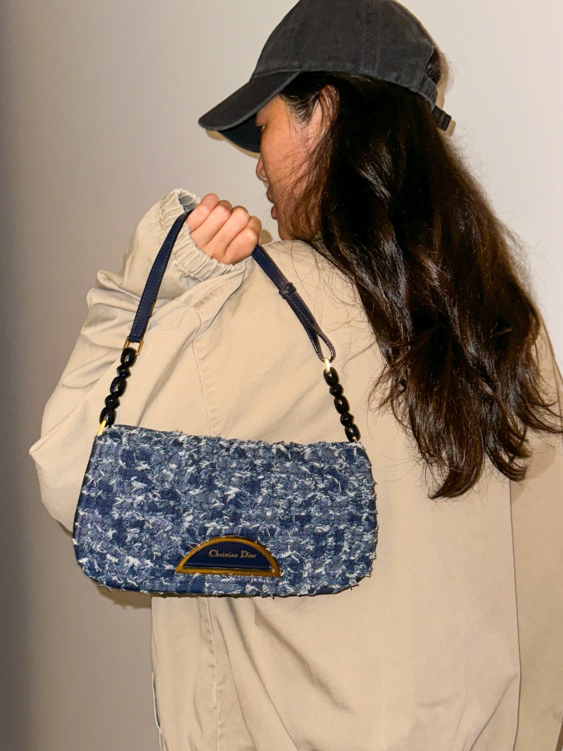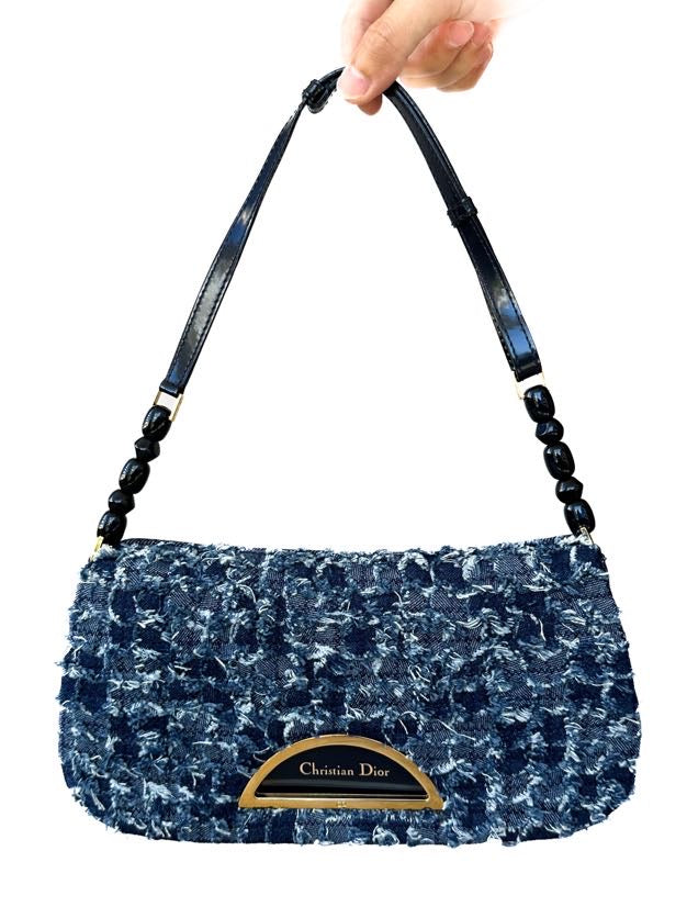 Introducing the Rare Vintage Dior Malice Bag in Denim, a breathtaking expression of John Galliano's innovative design ethos and Dior's unmatched craftsmanship. This exclusive piece captures the essence of Dior's luxury and Galliano's flair for blending historical influences with avant-garde design. The Malice Bag, with its distinctive denim fabric, is a rare find that offers a unique take on luxury fashion, embodying the adventurous spirit of Galliano's tenure at Dior.