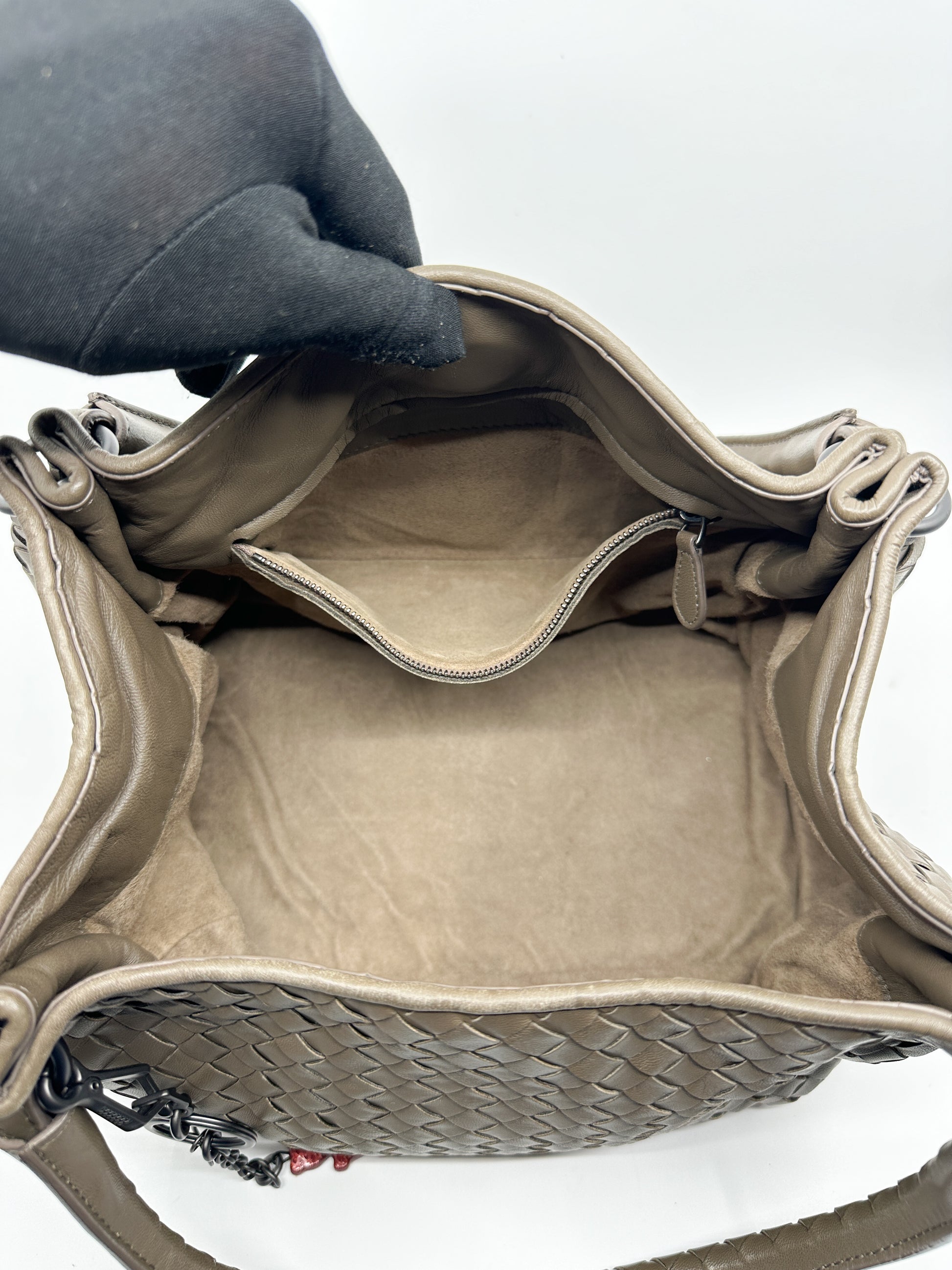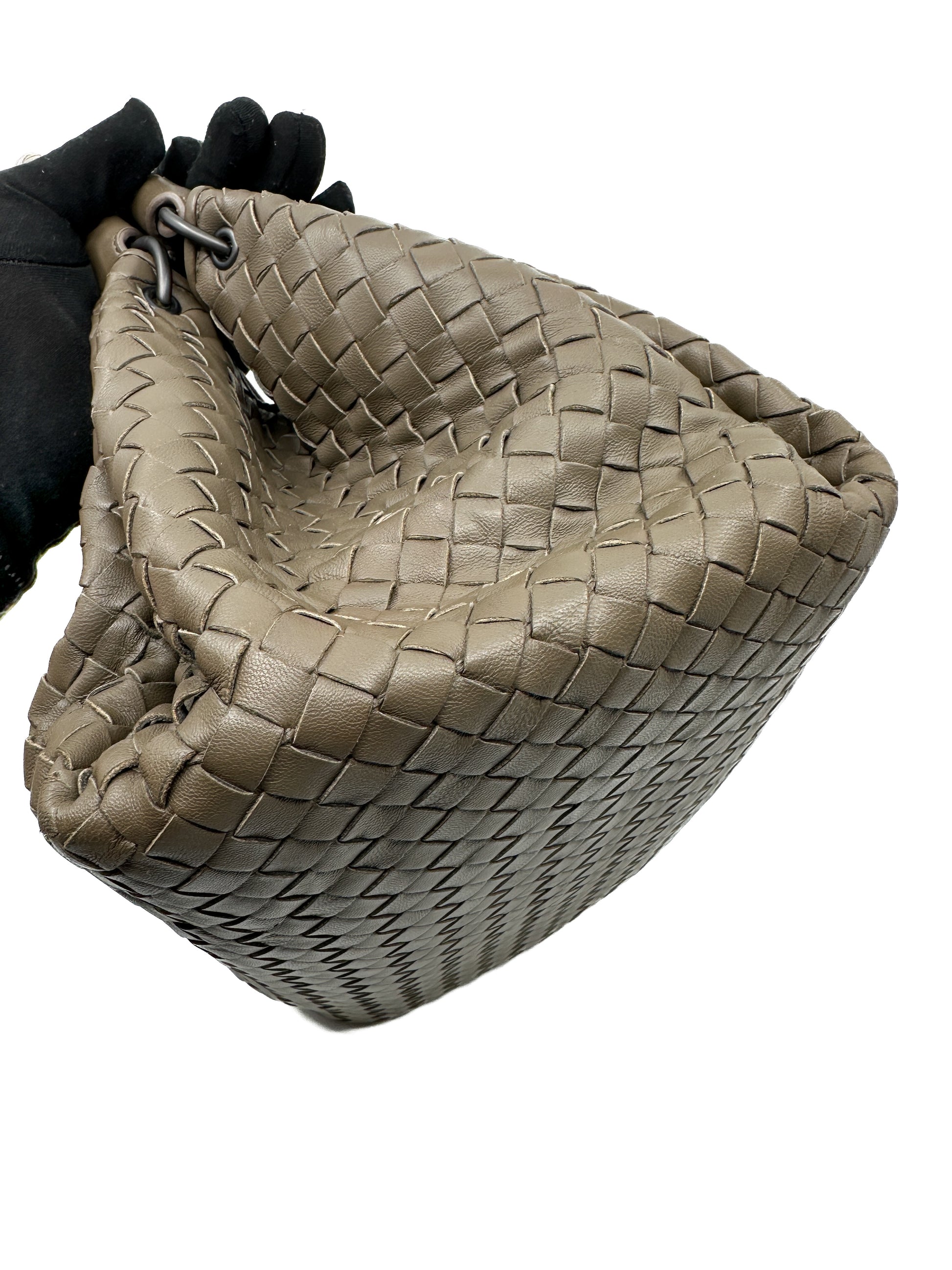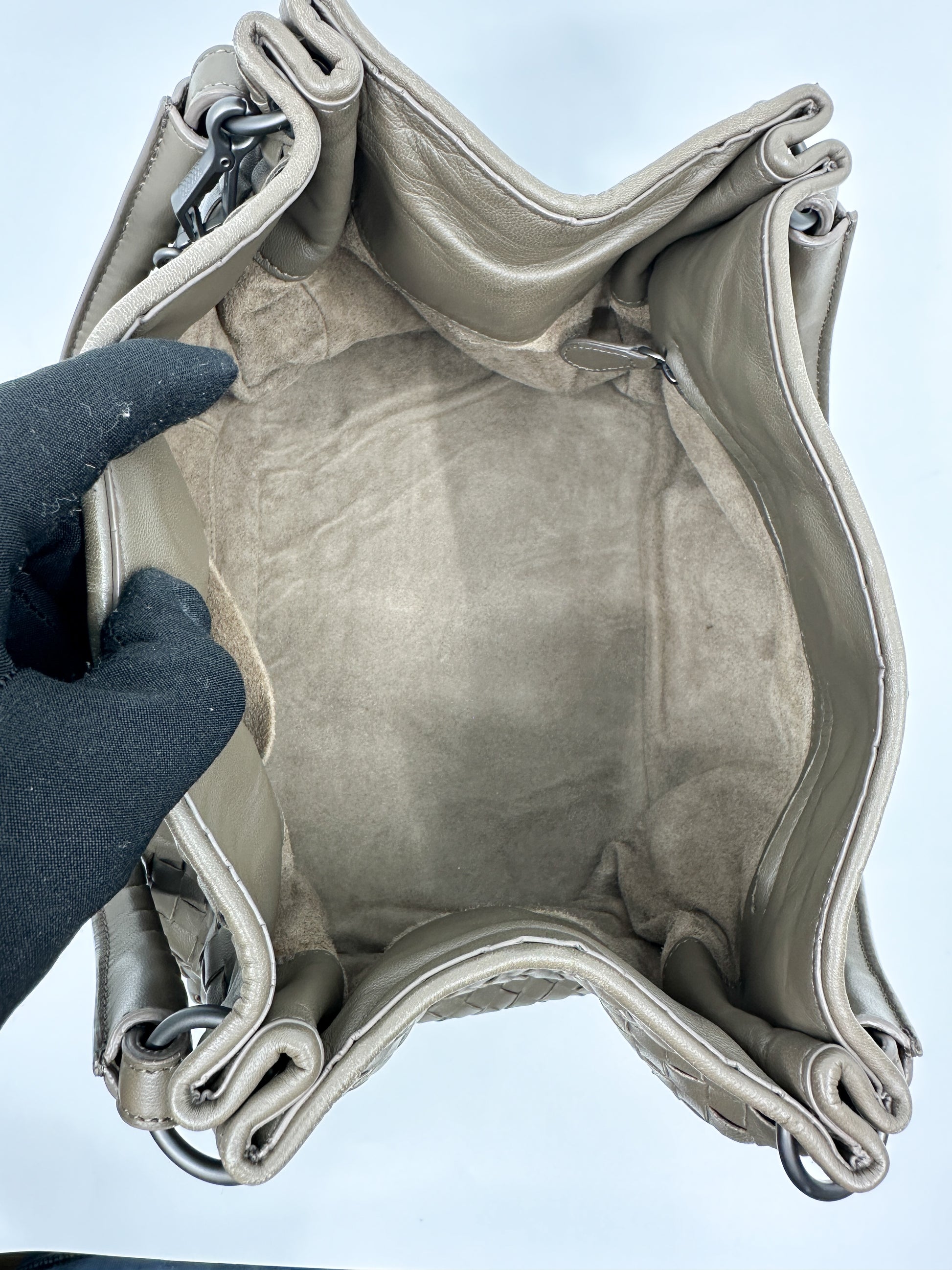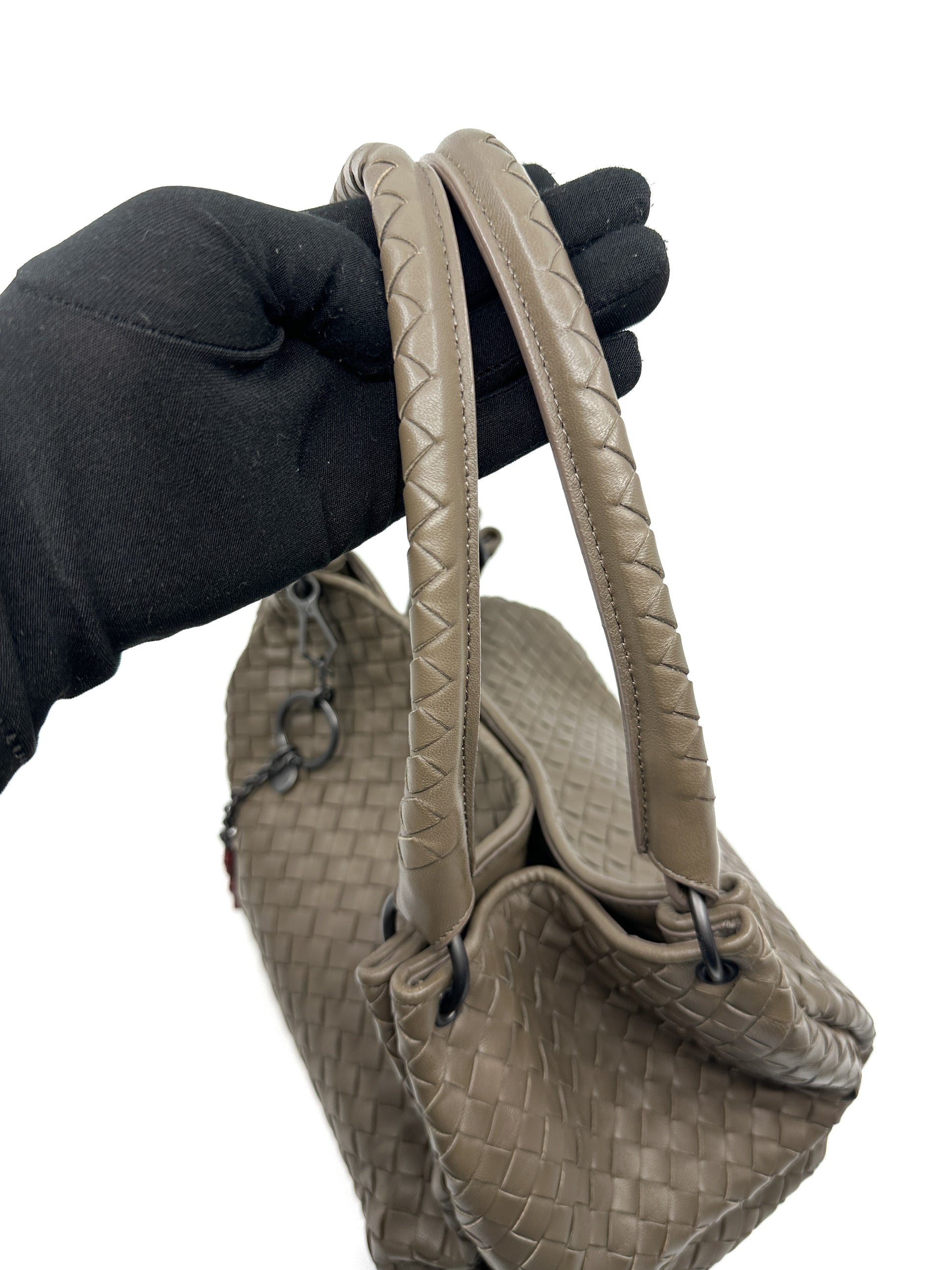 The Parachute Tote features Bottega Veneta’s iconic intrecciato weaving technique. This intricate handwoven pattern not only enhances the bag's durability but also adds a touch of understated elegance and sophistication.