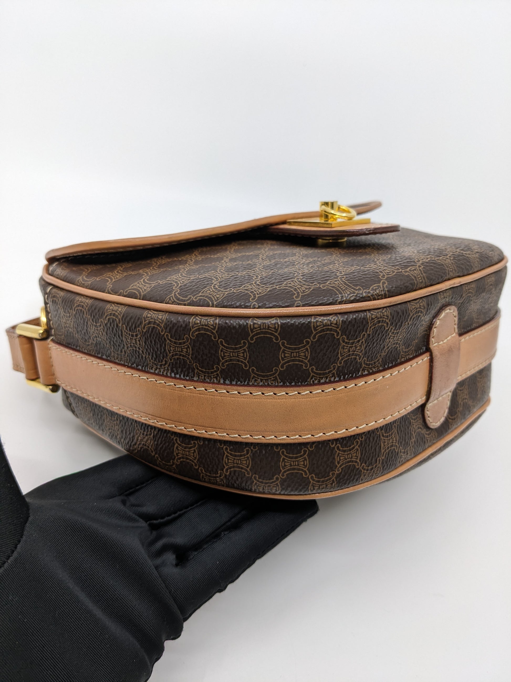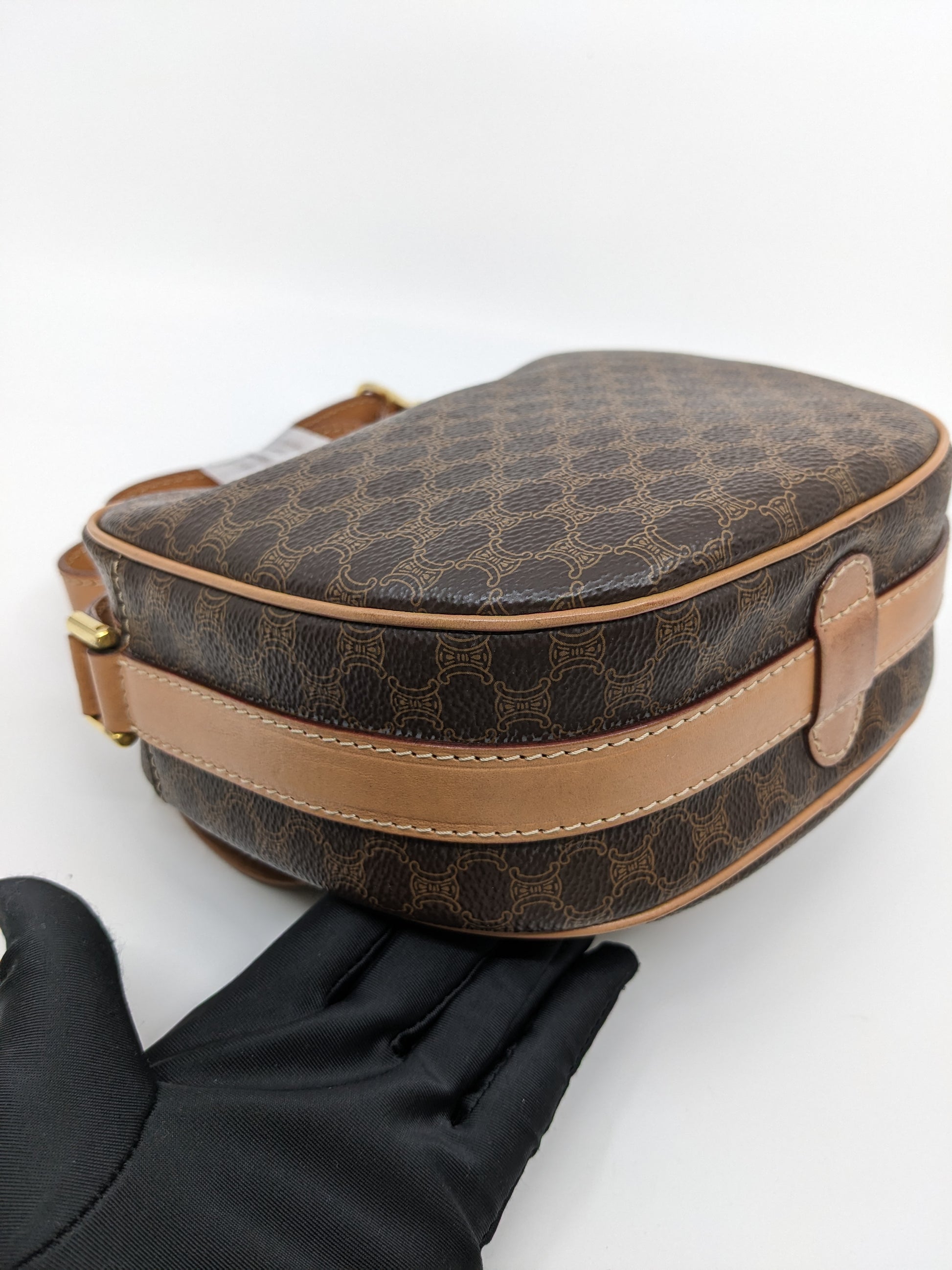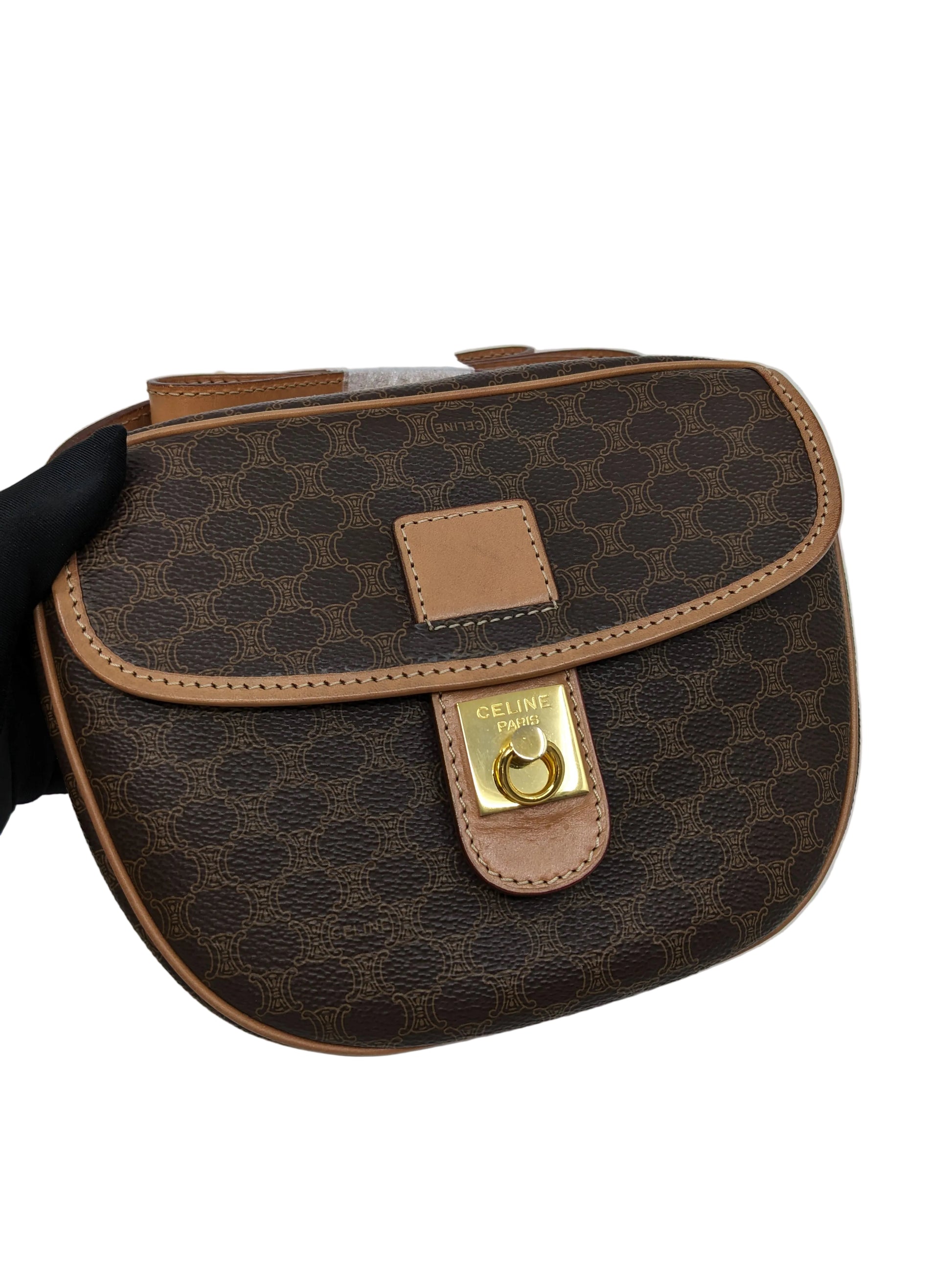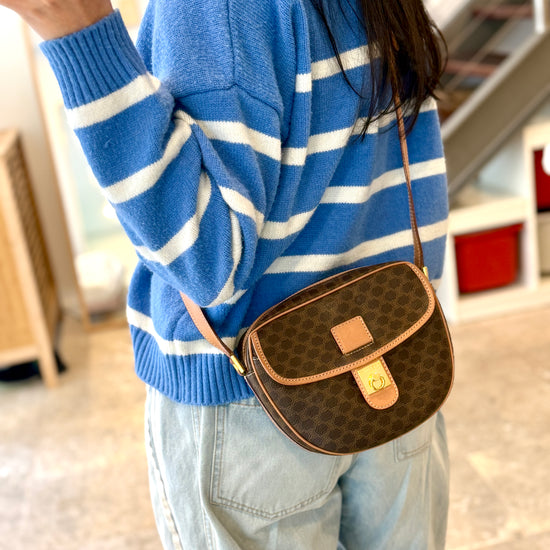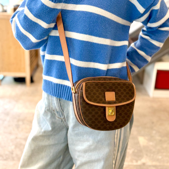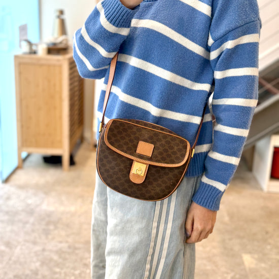 Vintage Celine Macadam Round Canvas Crossbody Bag