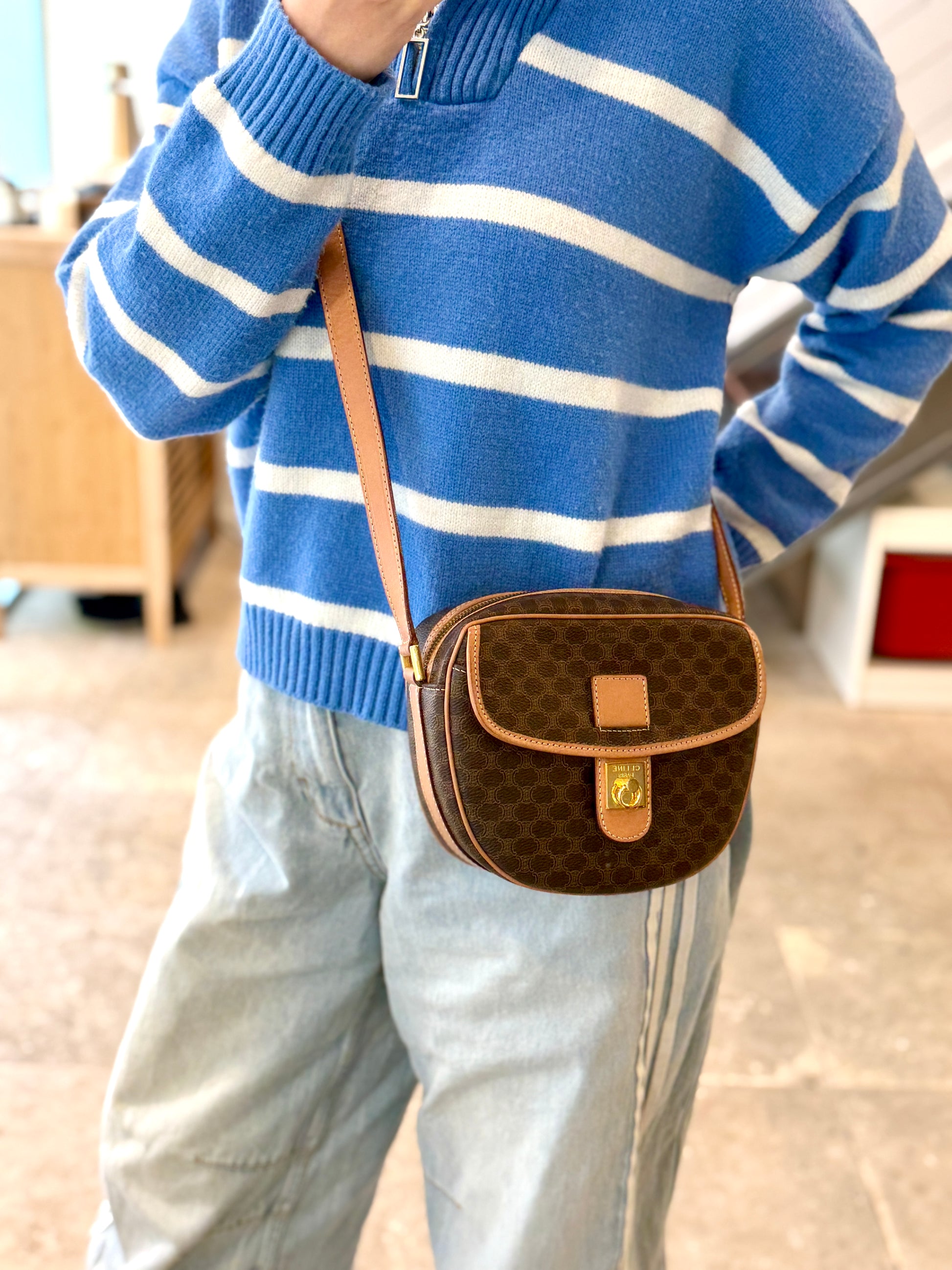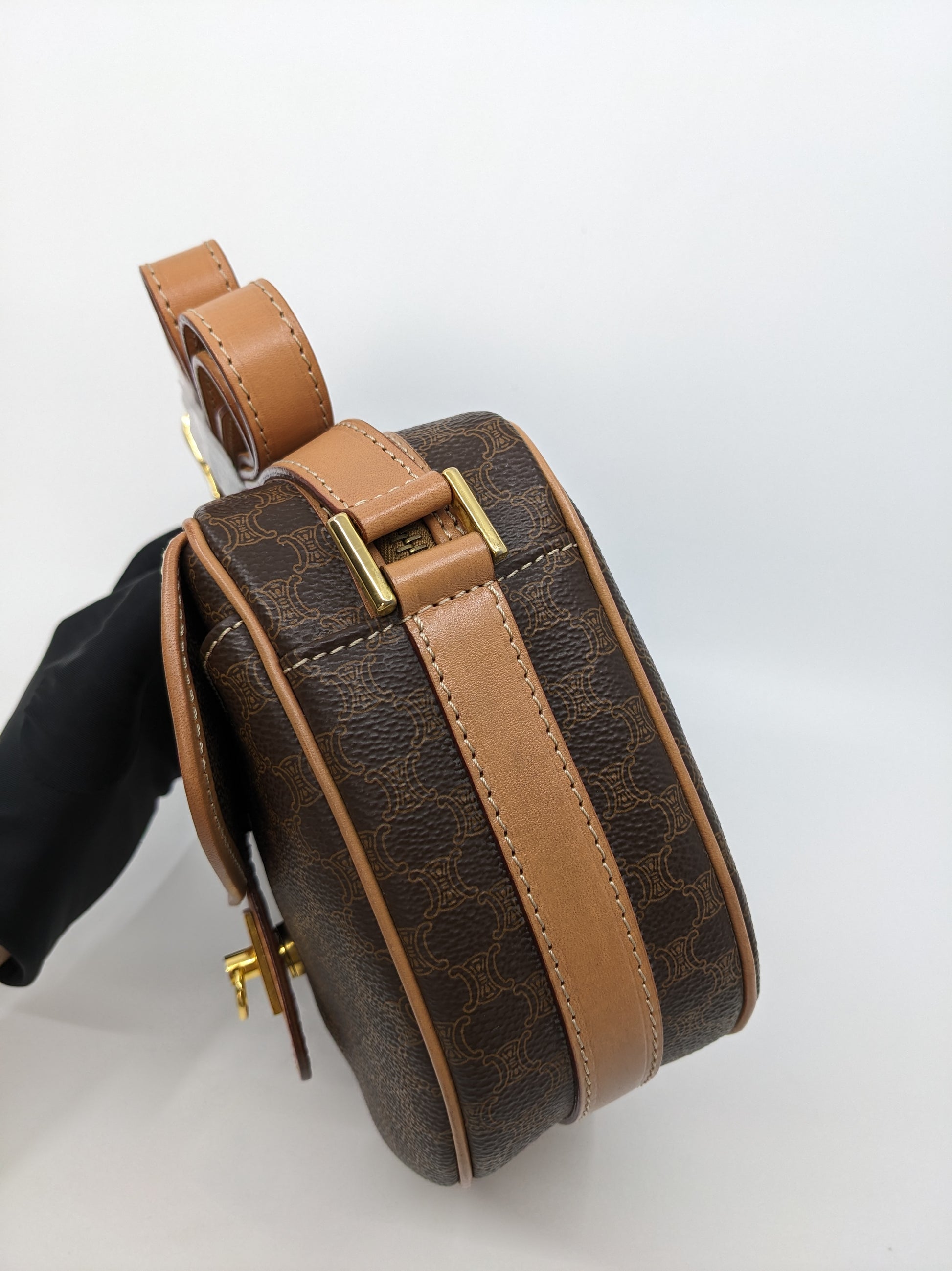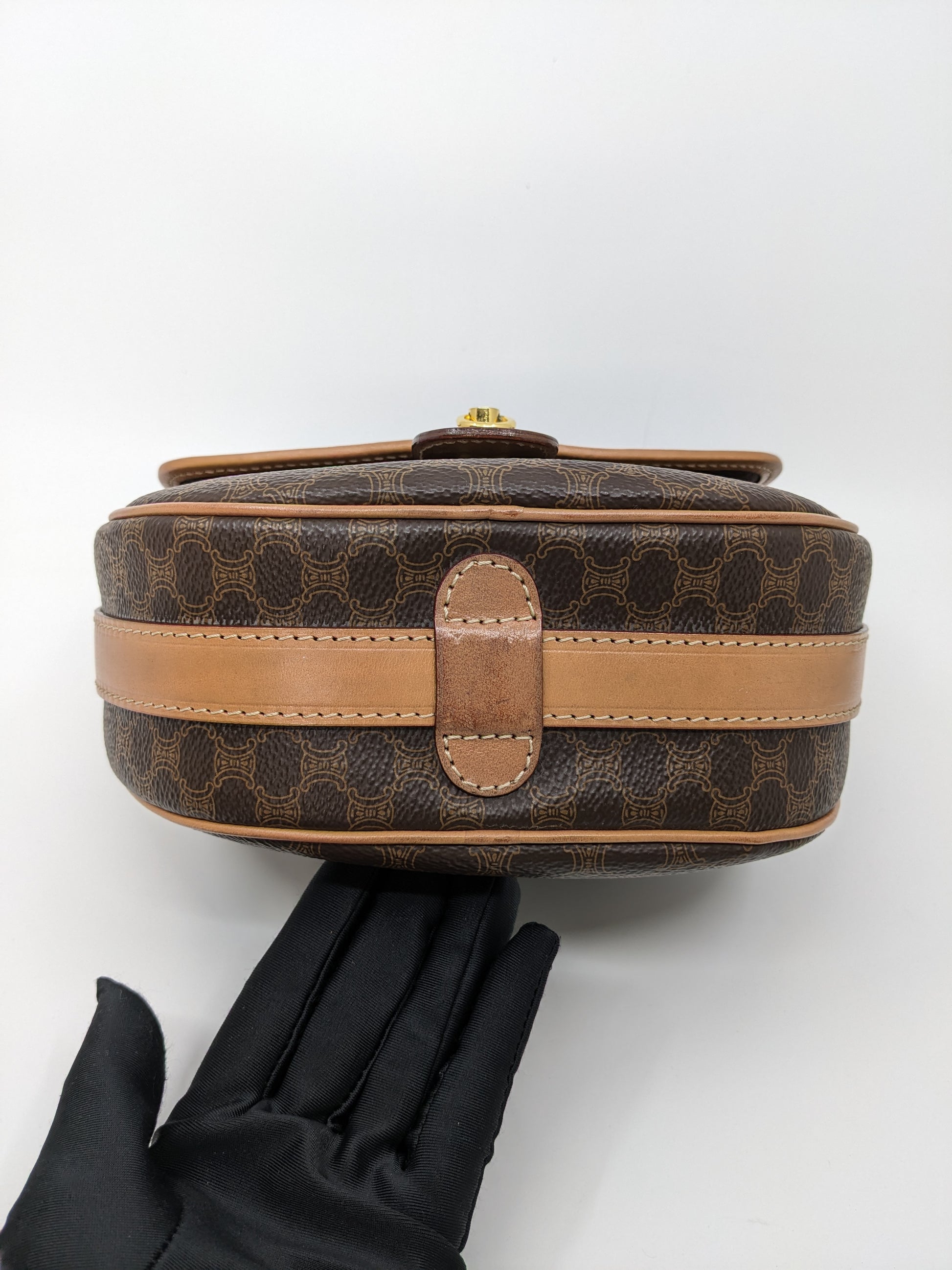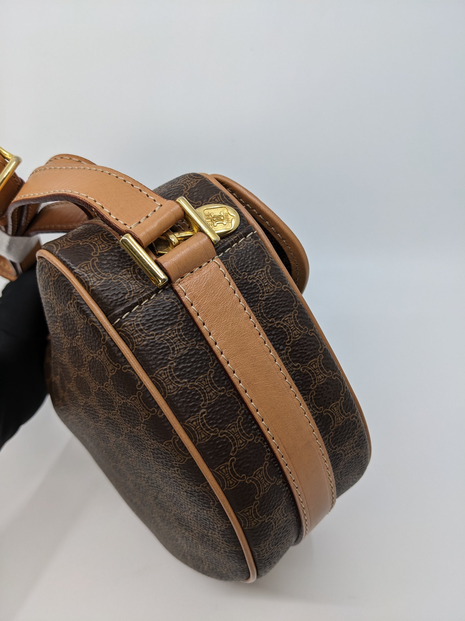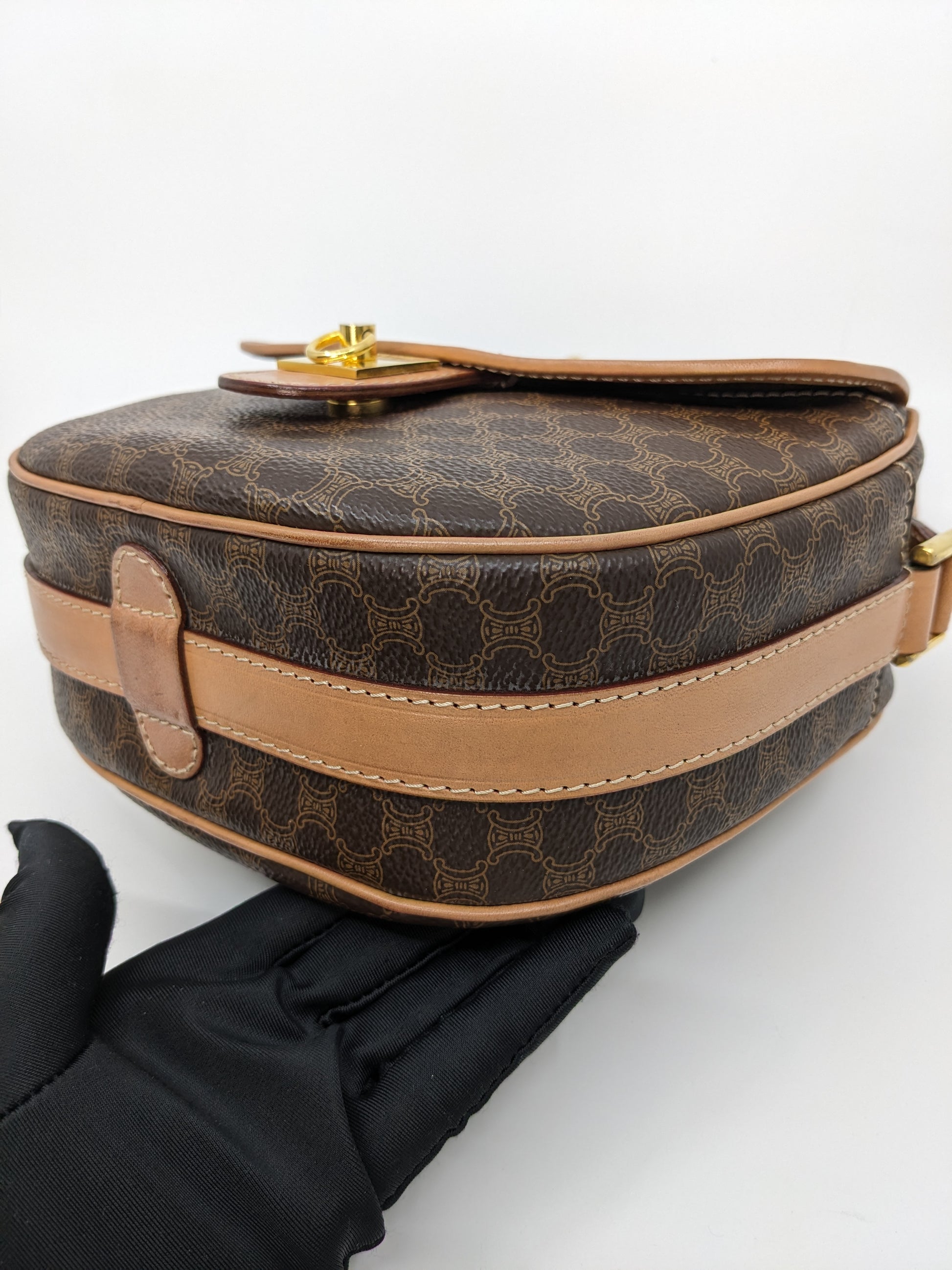 Vintage Celine Macadam Round Canvas Crossbody Bag