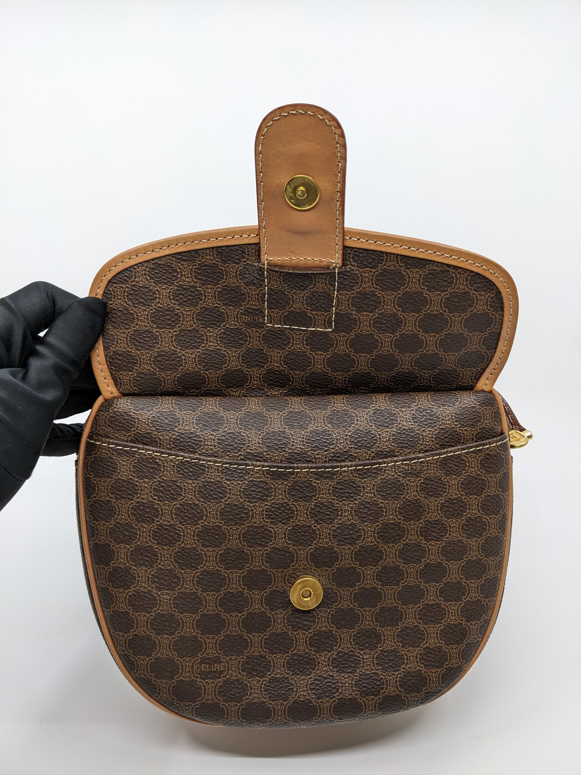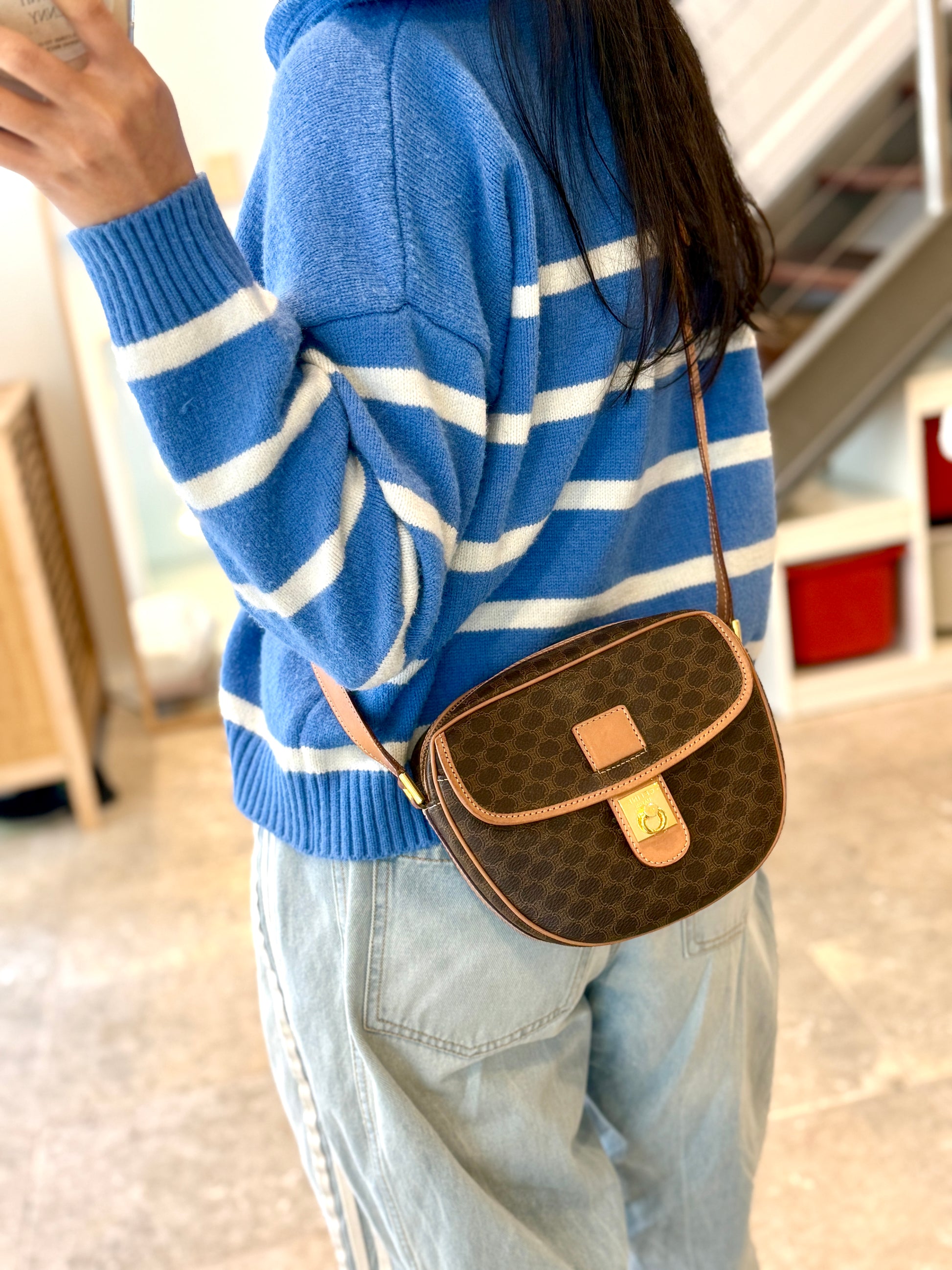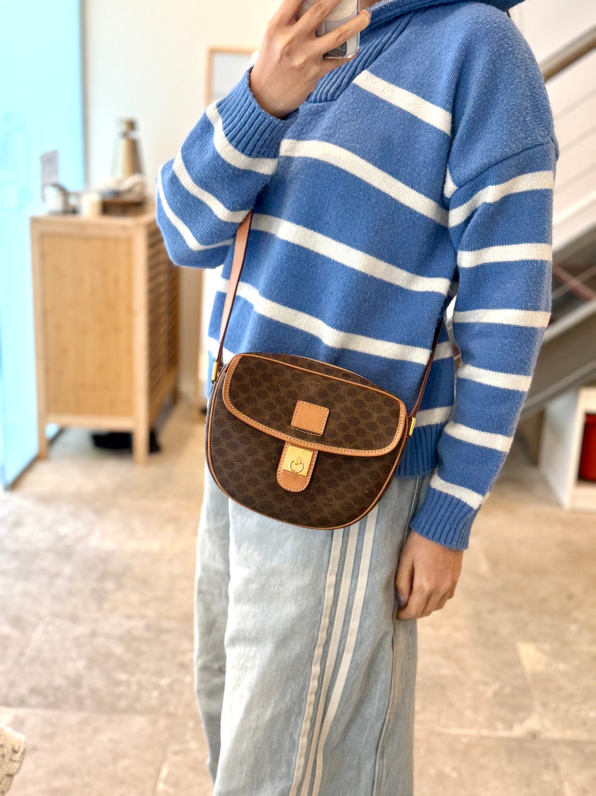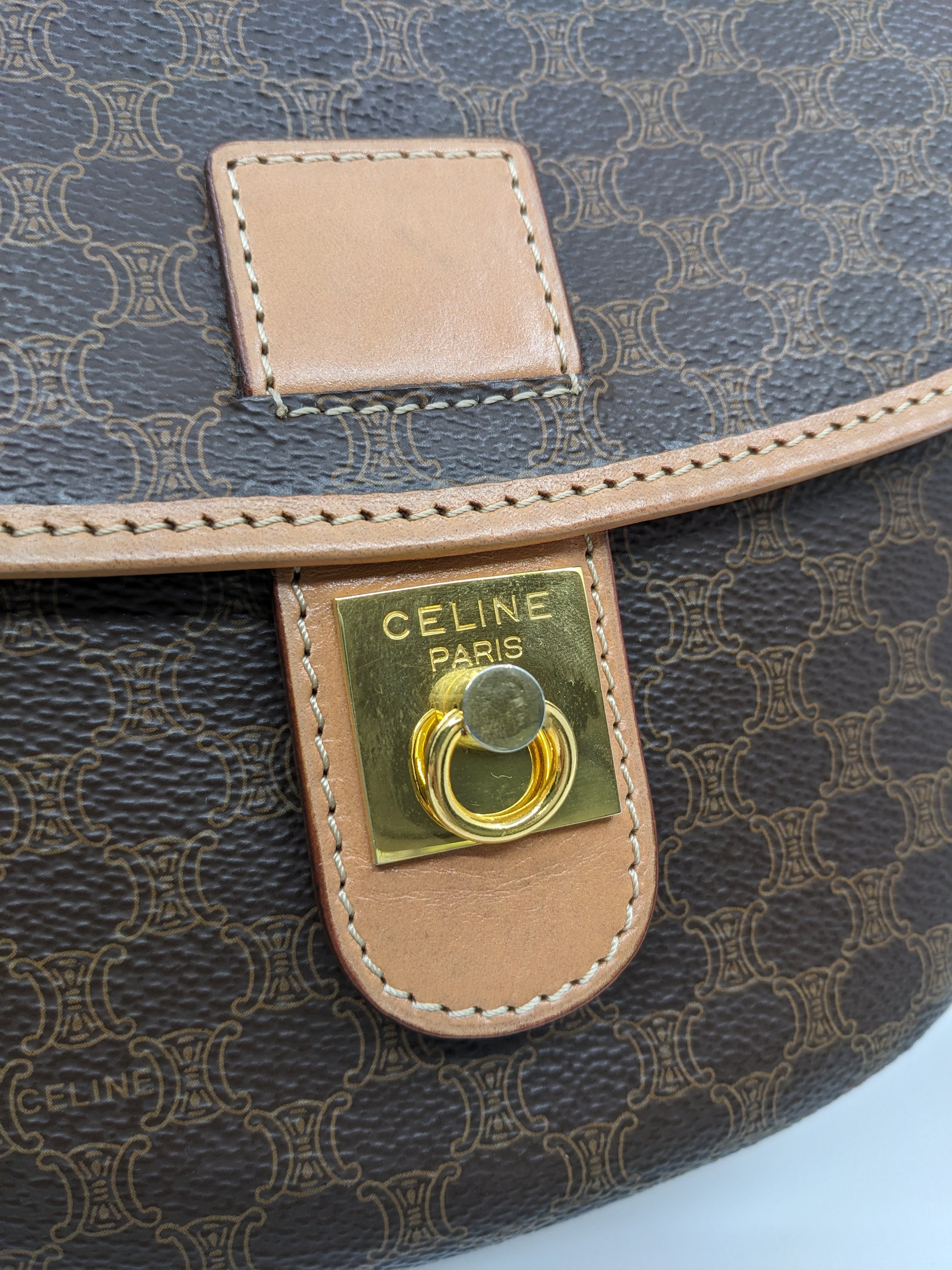 Vintage Celine Macadam Round Canvas Crossbody Bag