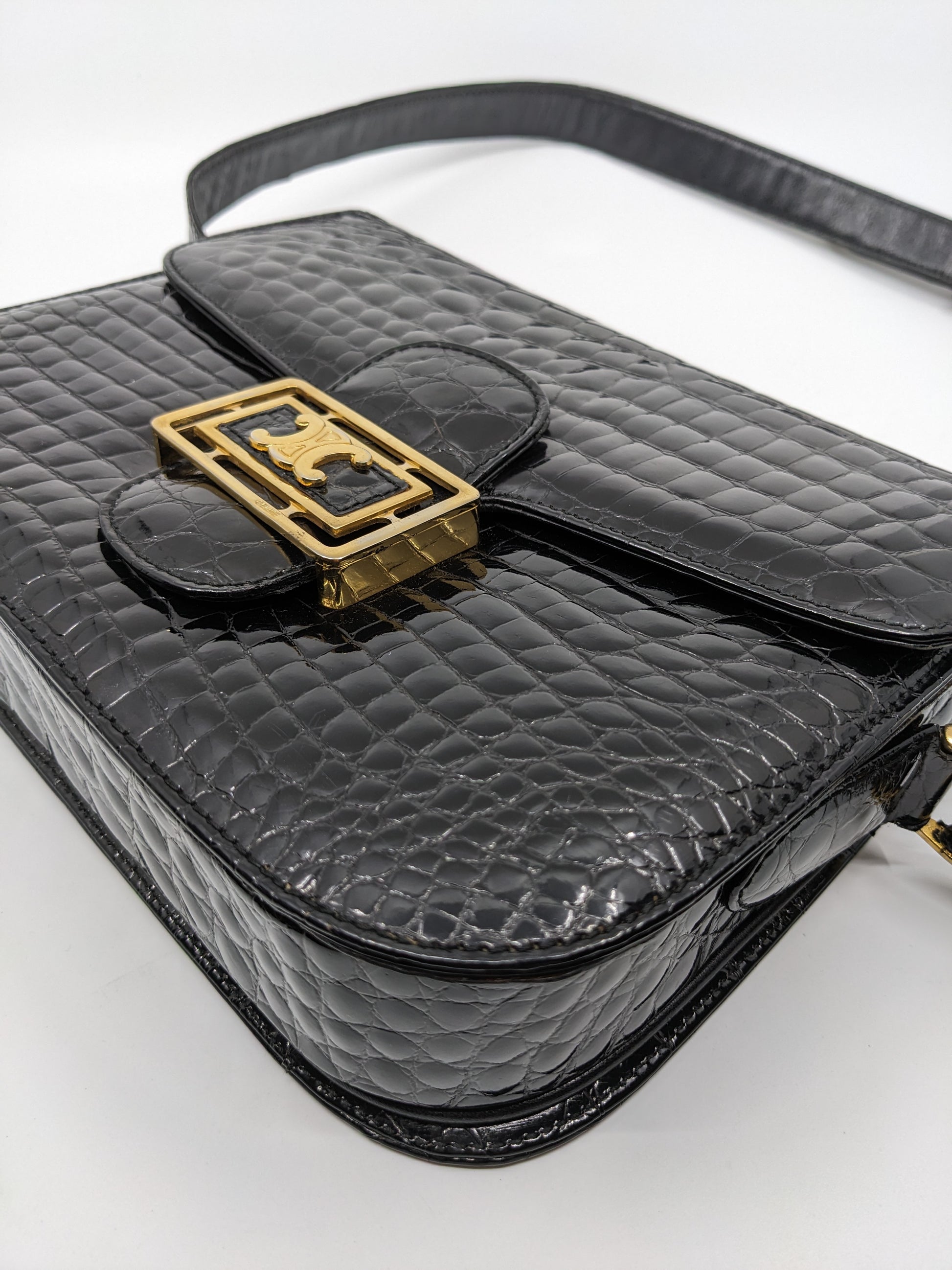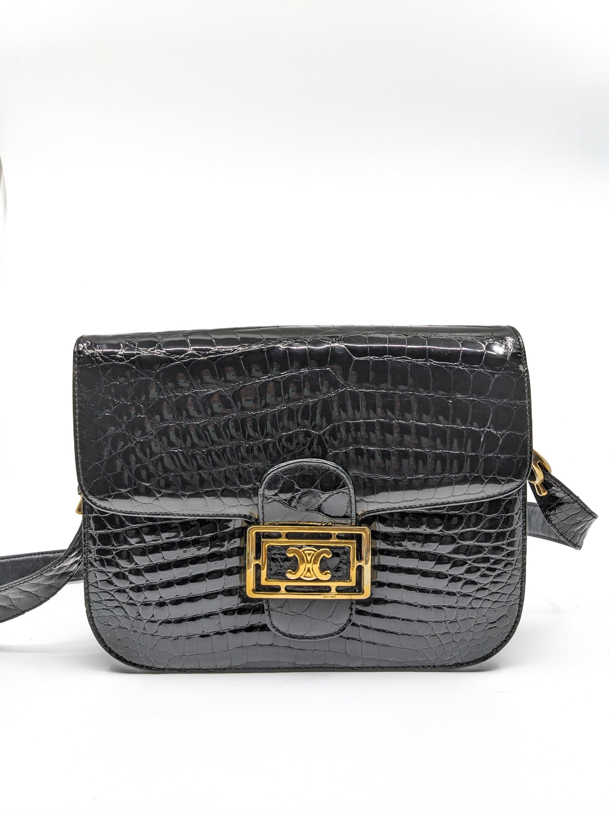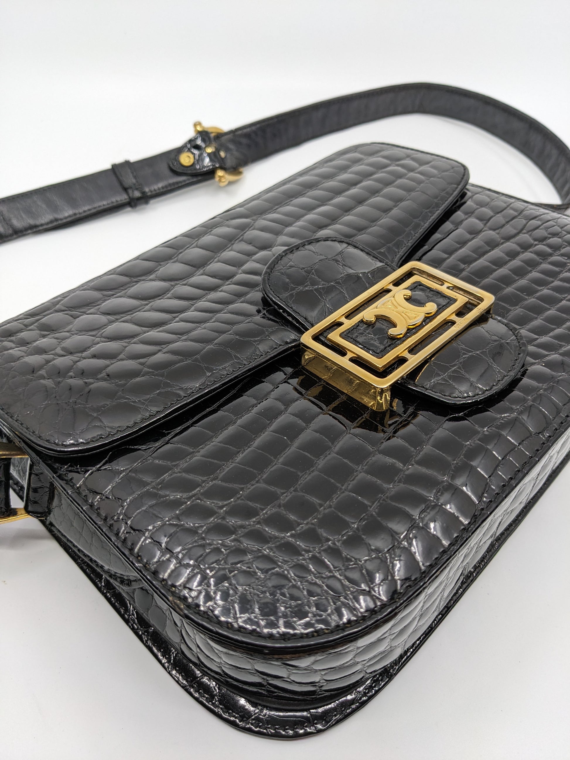 Vintage Celine Triomphe Bag in Crocodile Leather