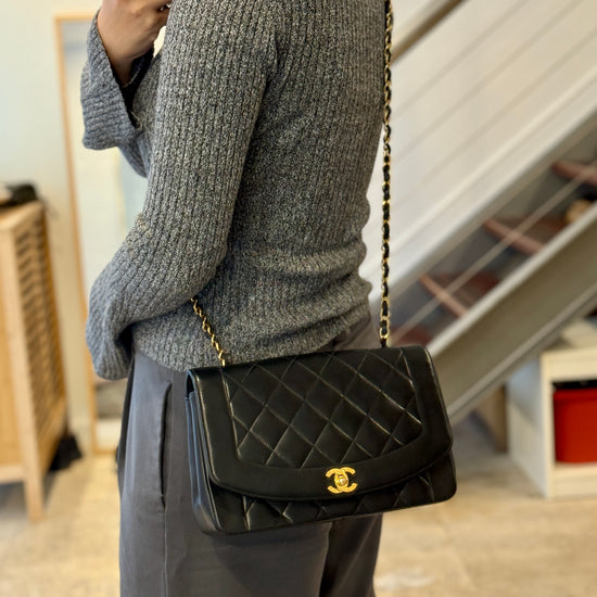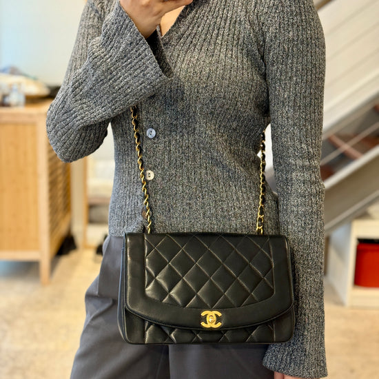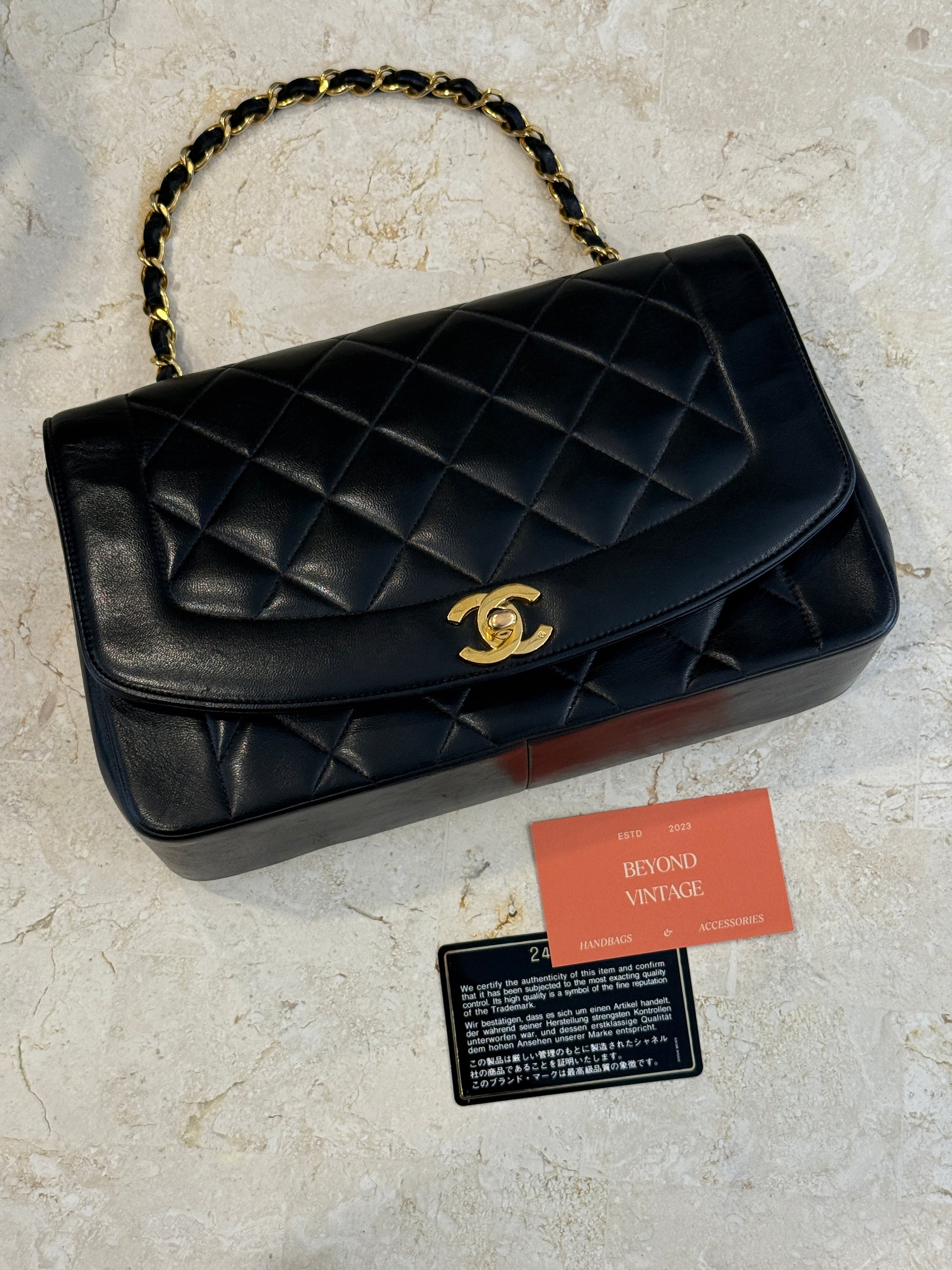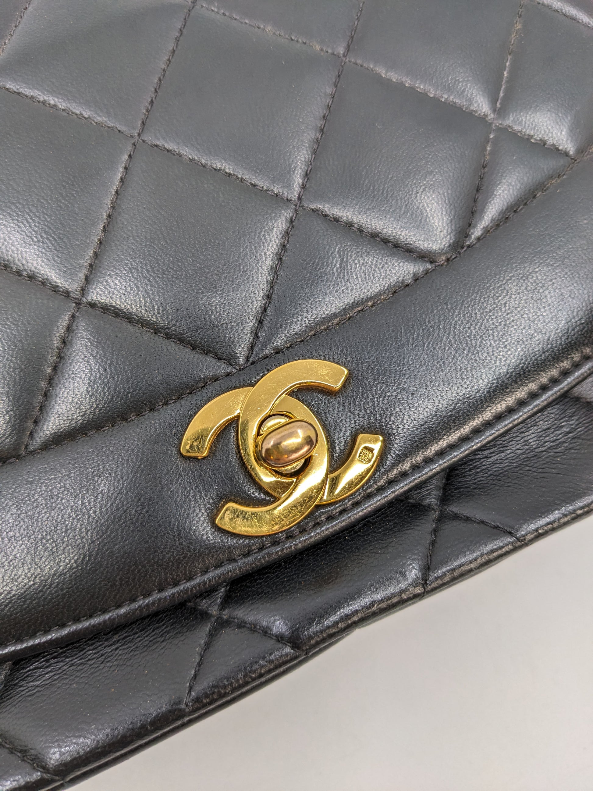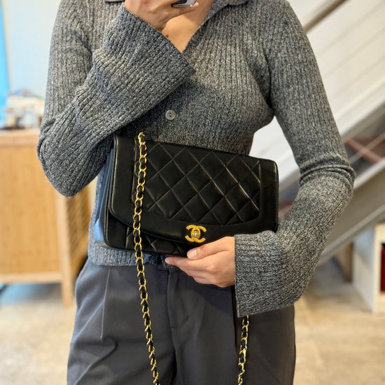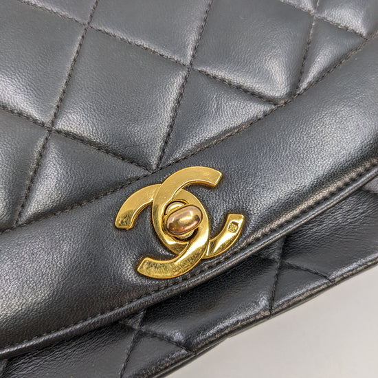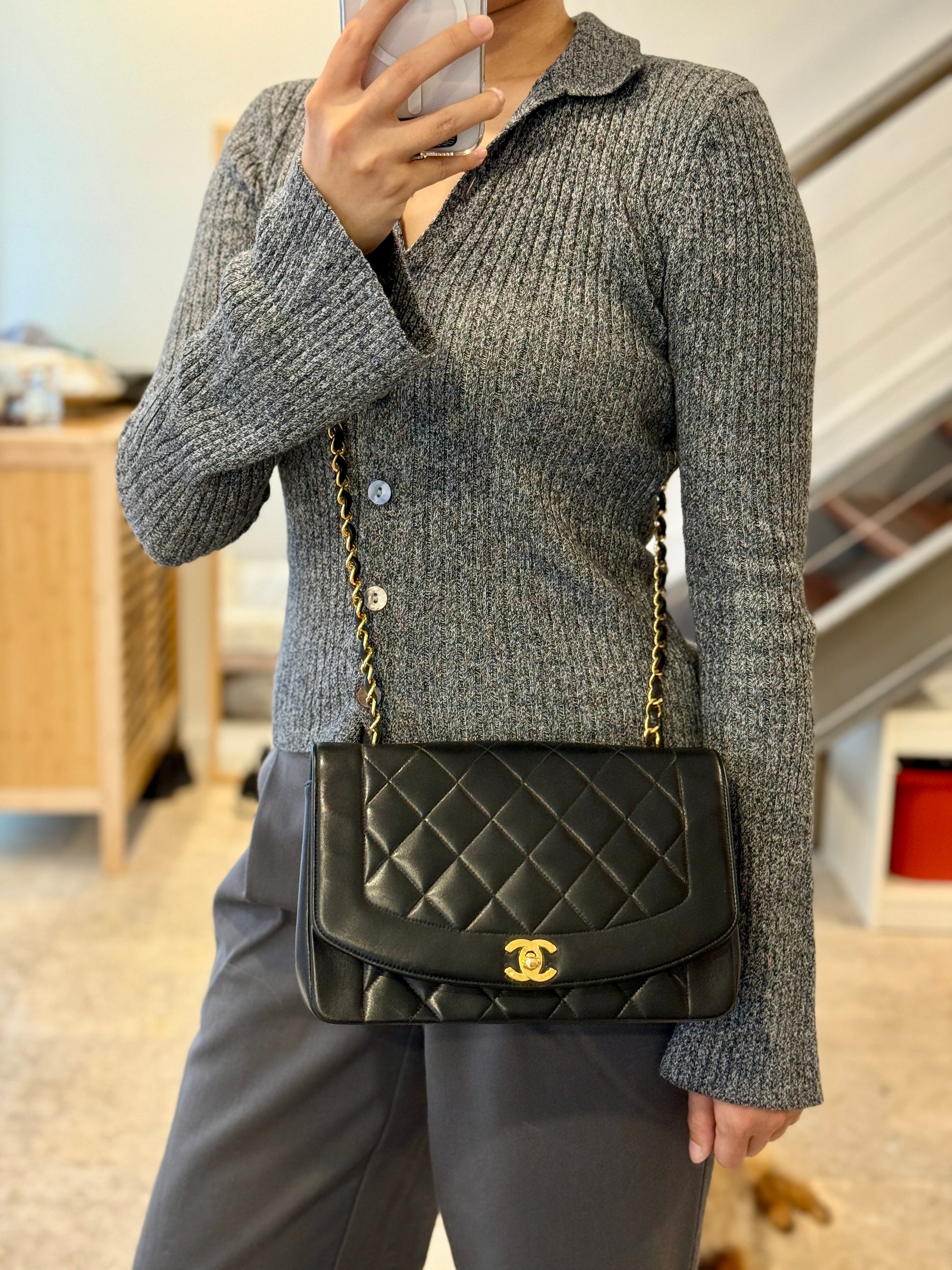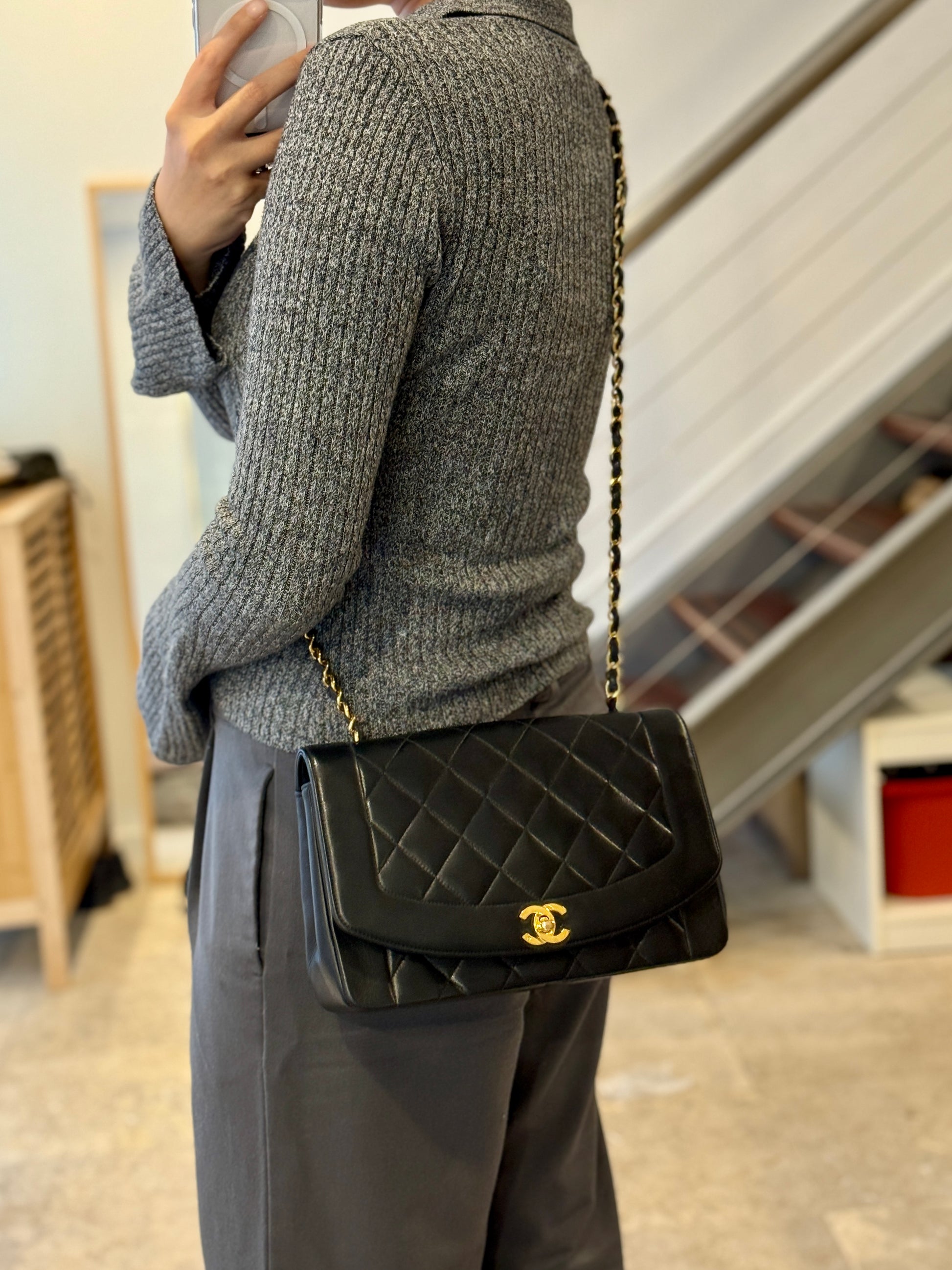 Vintage Chanel Black Small Diana 24K Gold Hardware