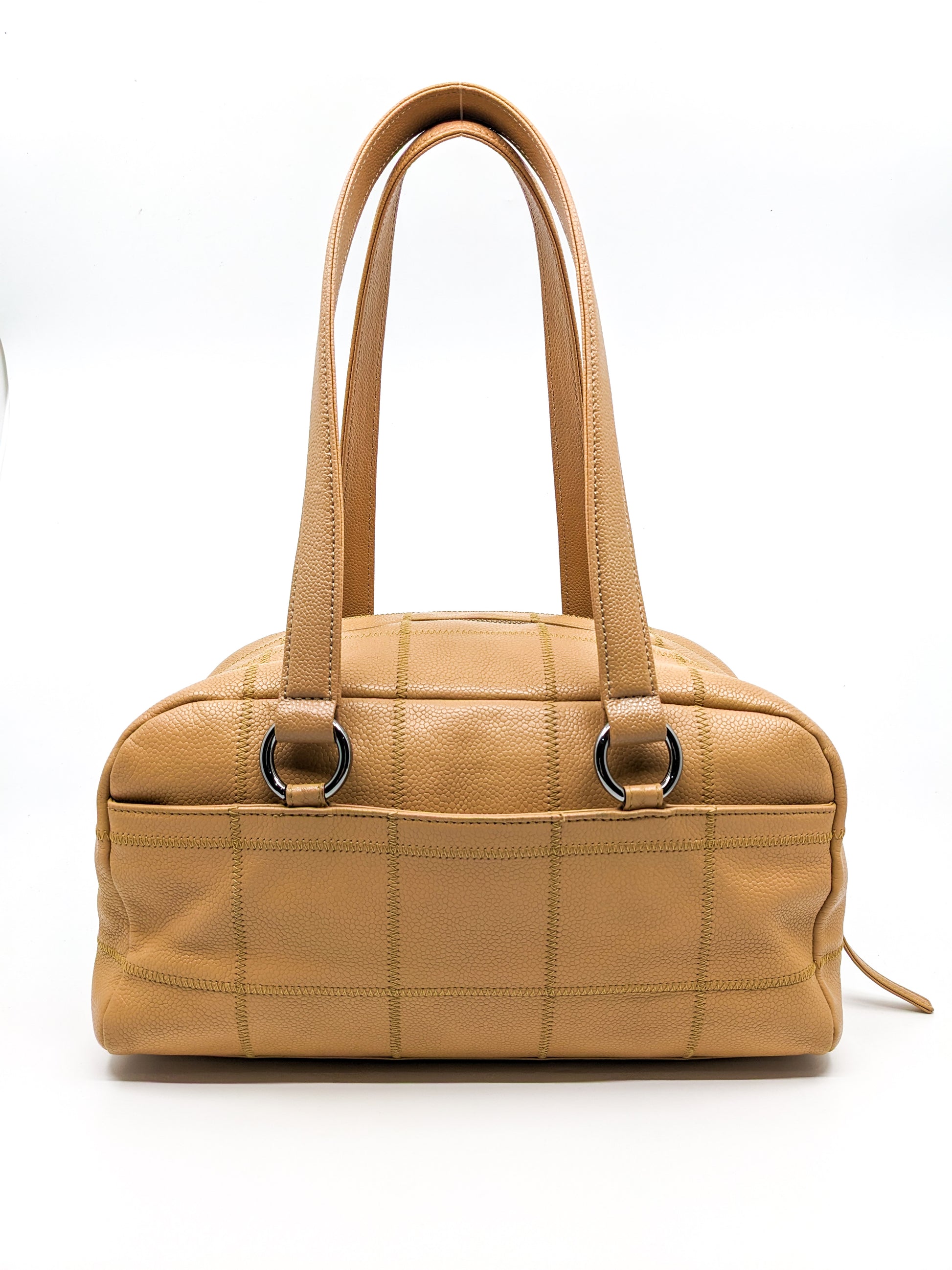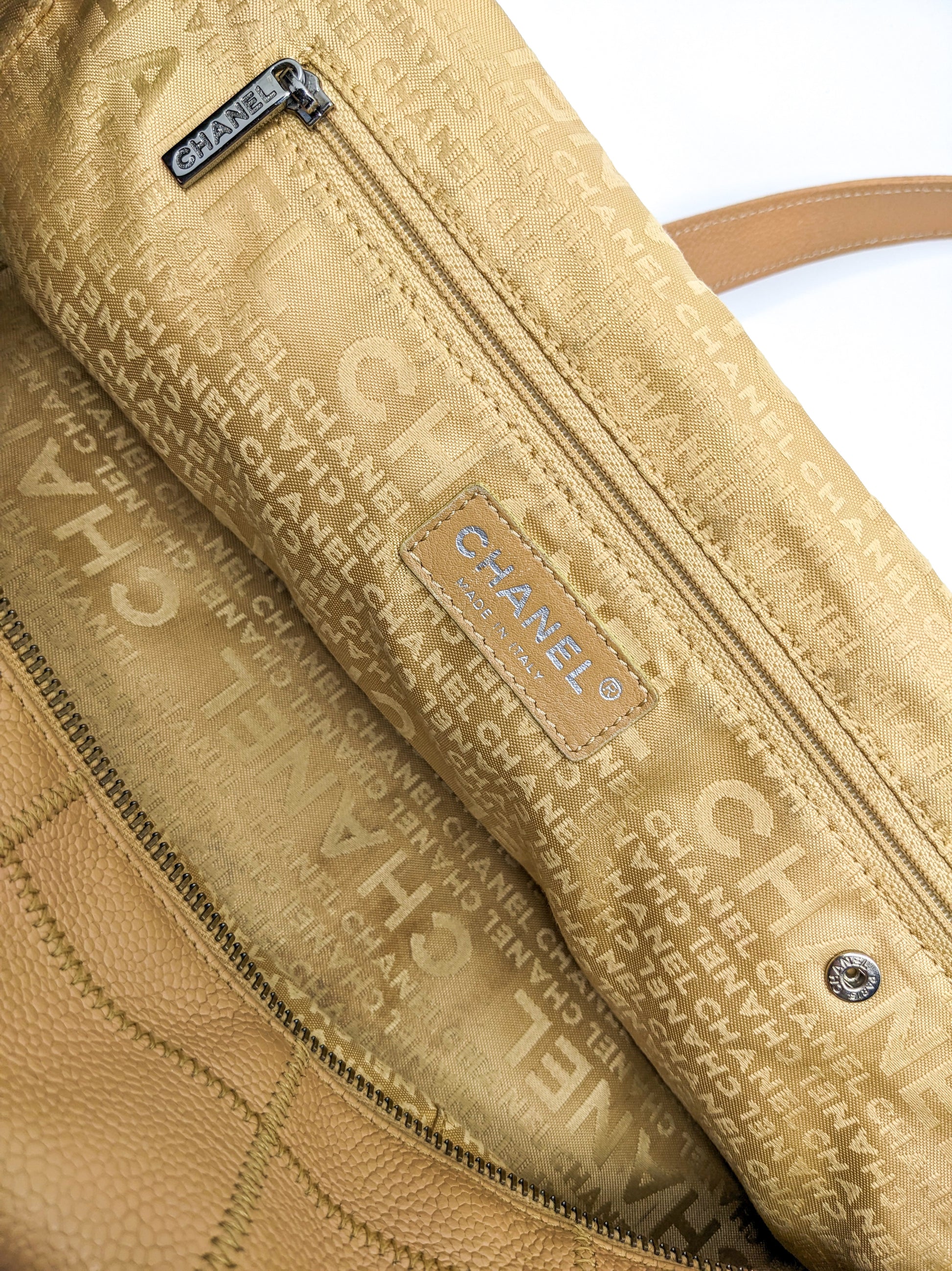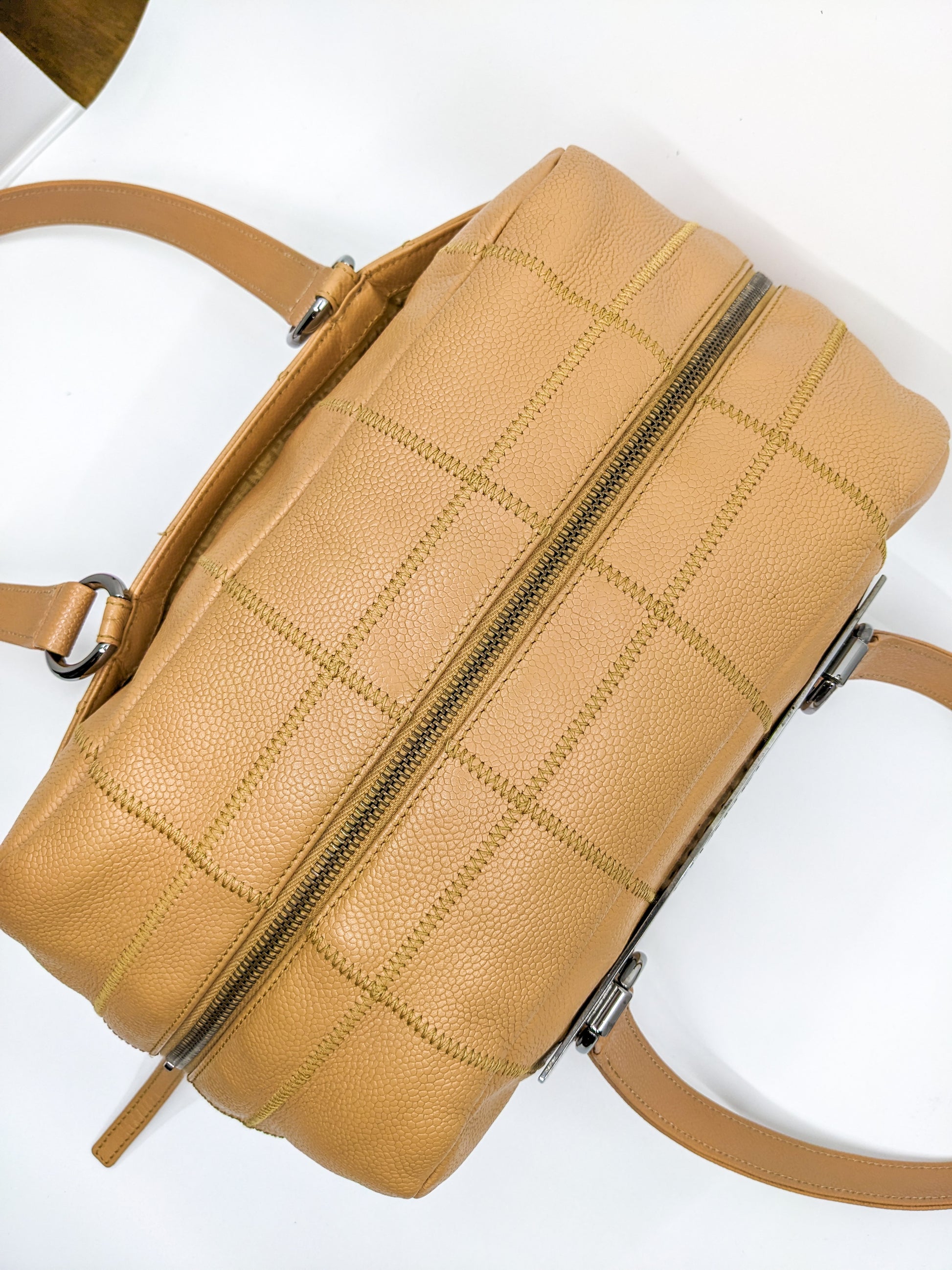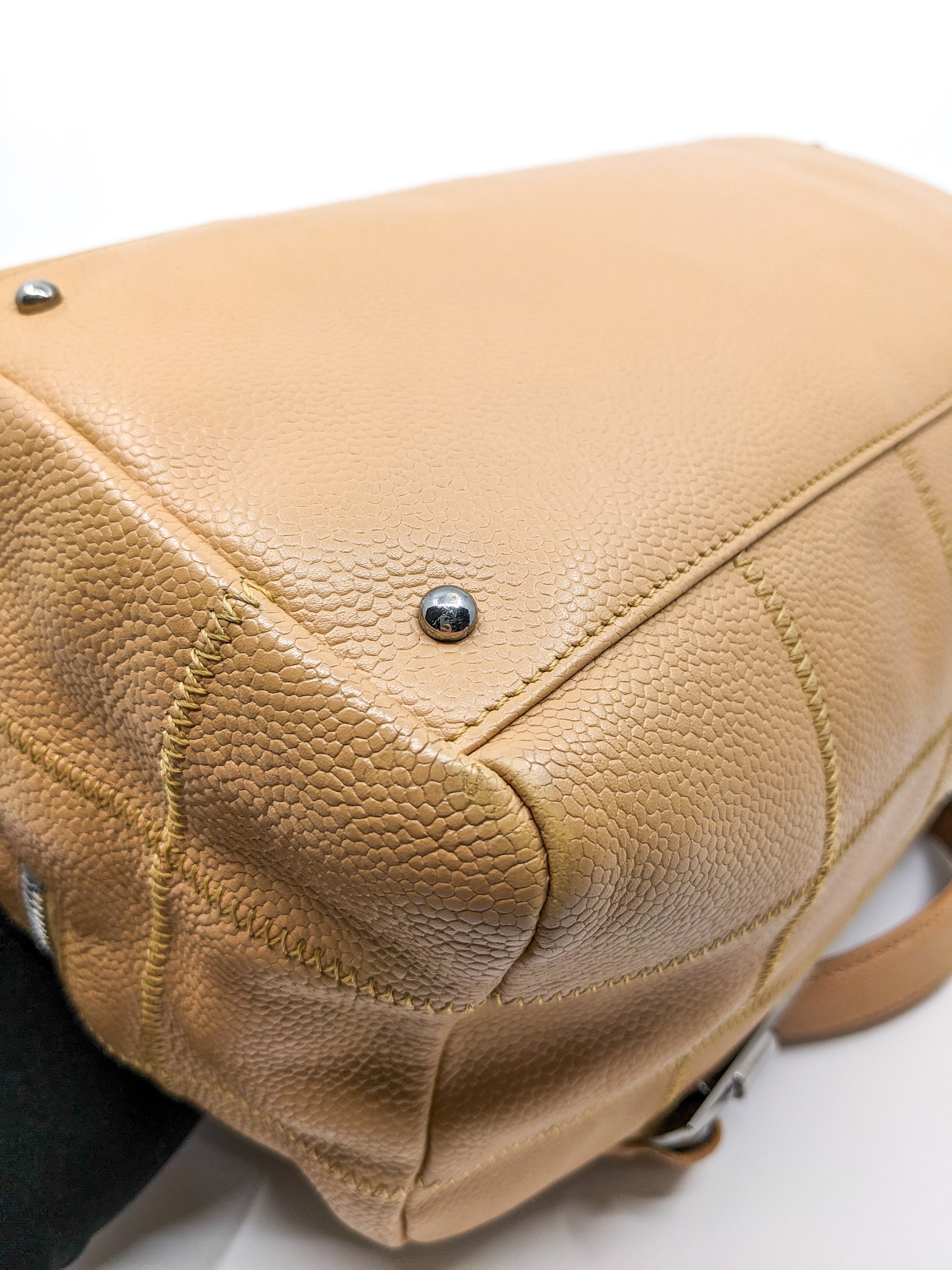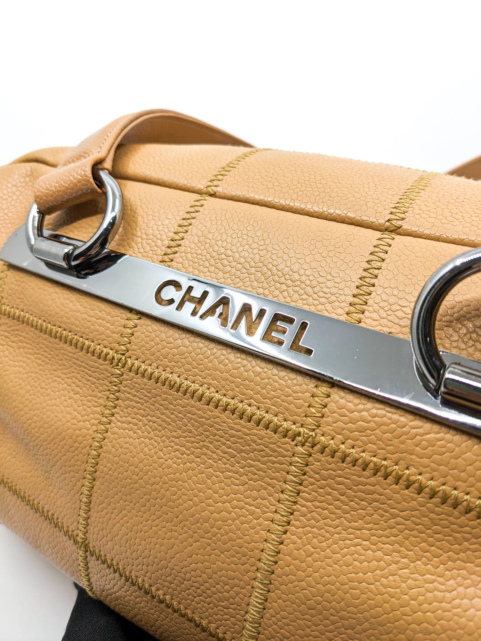 This vintage Chanel Bowling Bag in Beige Caviar exudes timeless elegance with its signature quilted design and sculptural silhouette. Crafted from luxurious beige caviar leather, it offers a perfect blend of classic Chanel style and modern versatility, making it a coveted accessory for discerning collectors and fashion enthusiasts alike.