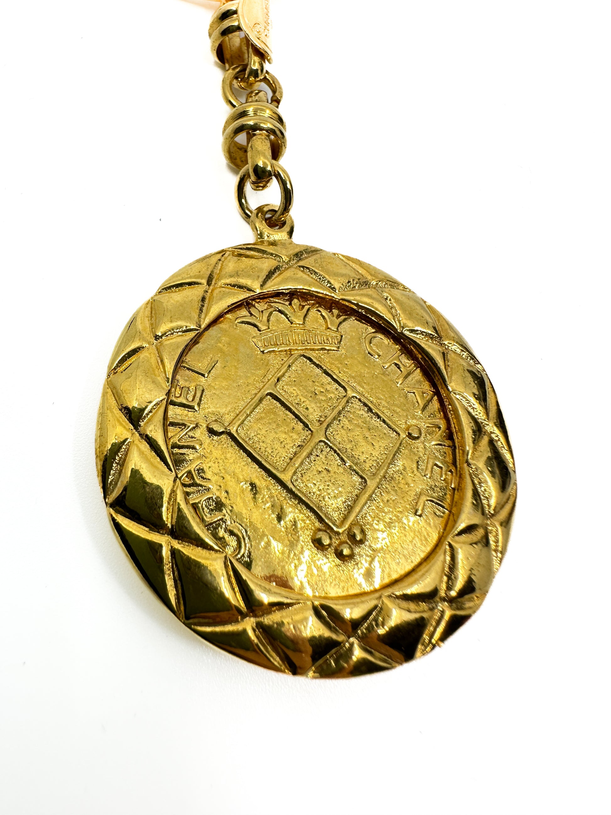 This Vintage Chanel Matelassé Key Chain/Bag Charm is not only functional but also a statement piece that enhances the aesthetic appeal of any item it adorns. Whether used as a keychain or a bag charm, it adds a touch of classic Chanel elegance and sophistication to your ensemble. Ideal for Chanel enthusiasts and collectors, this charming accessory is a timeless piece that celebrates the enduring allure of the Chanel brand.