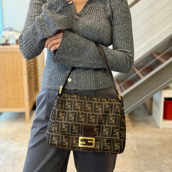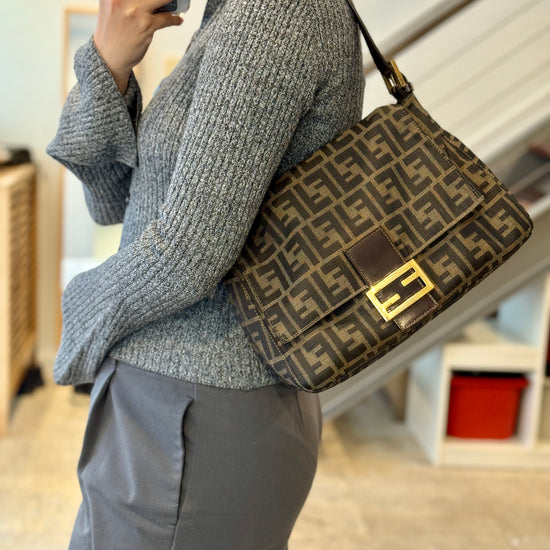 Elevate your style with the vintage Fendi Mama bag, featuring exquisite gold hardware. This iconic piece combines luxury and functionality, showcasing Fendi's signature craftsmanship. Perfect for any occasion, it offers ample space while adding a touch of sophistication to your ensemble. A must-have for fashion enthusiasts and collectors alike.